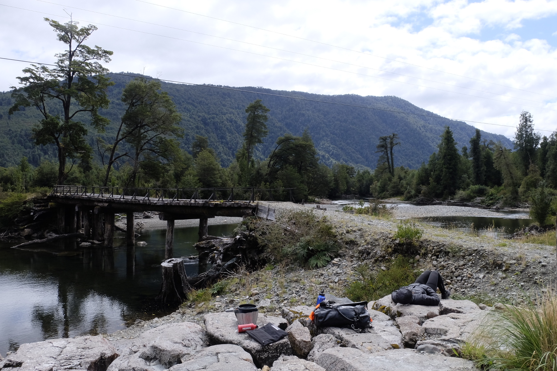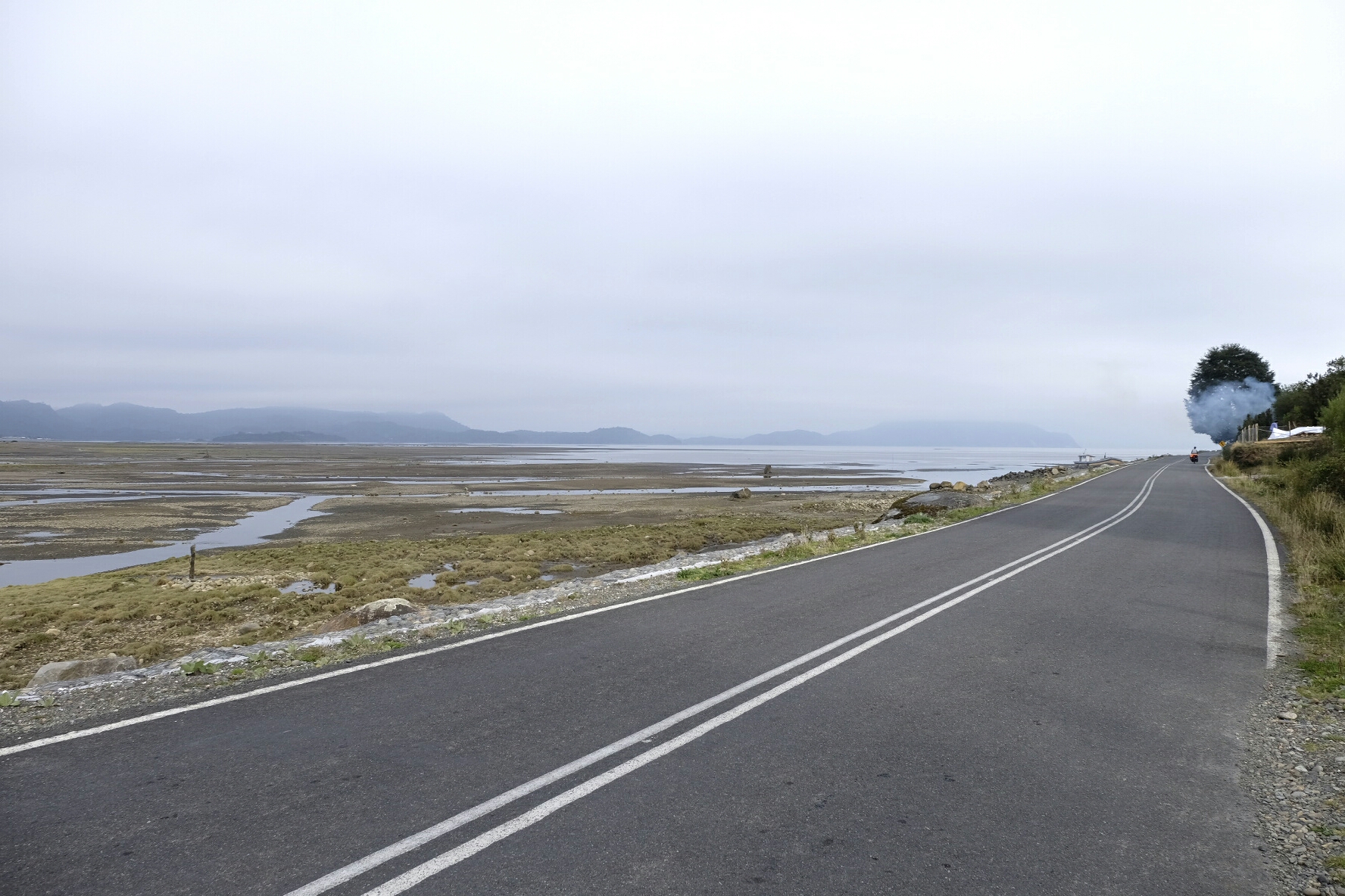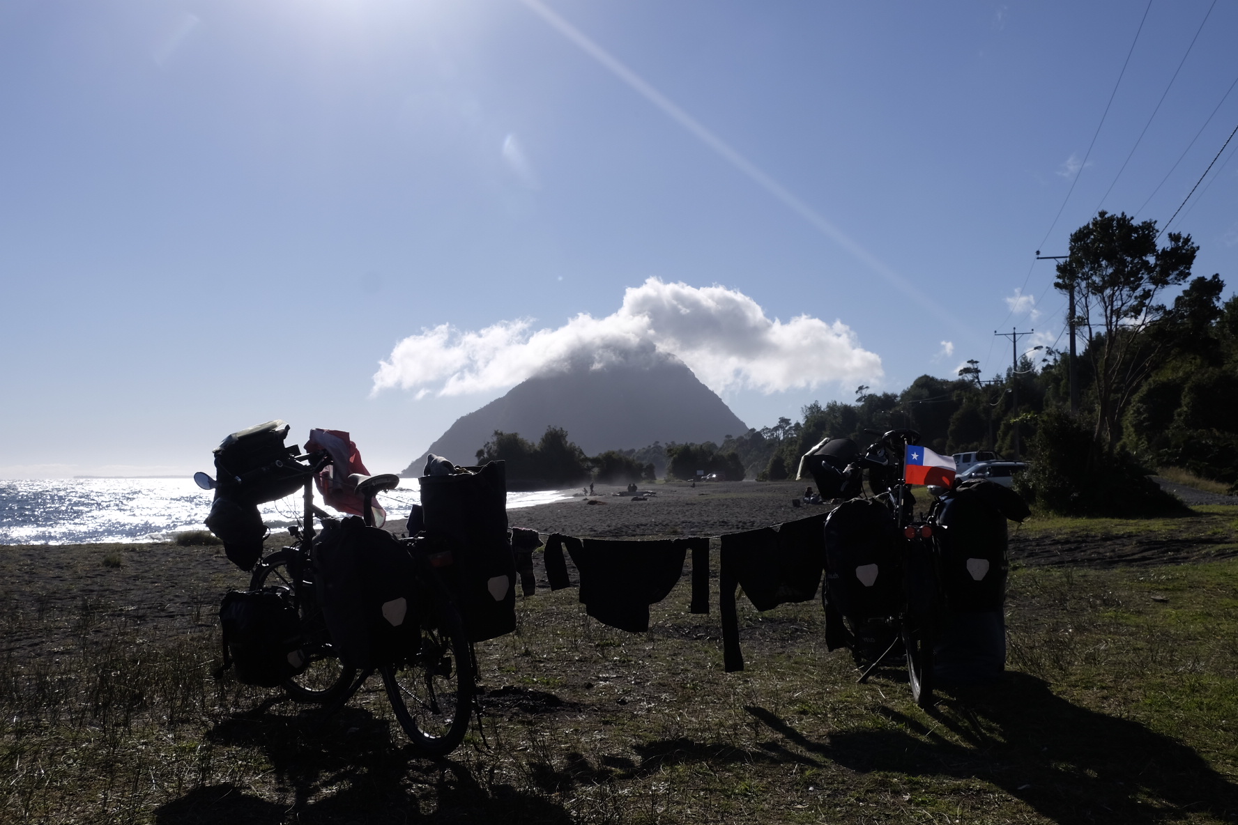 El Asfalto: Eben, hart und unstaubig. Ab jetzt werden wir es rollen lassen. Wie von alleine wirds gehen. Mehr Zeit für Erholen, Campen und Erfahren. So haben wir uns dies vorgestellt. Nun ja, ein Kilometer bleibt ein Kilometer. Ein Berg bleibt ein Berg. Regen bleibt Regen und Gegenwind bleibt Gegenwind. Ganz so einfach gehts halt doch nicht. Bei dem launischen Wetter (mal heiss, mal kalt, öfters Regen und Wind) macht es jedoch den kleinen Unterschied. Wir rollen also etwas gemütlicher bergauf, bergab (mit ein paar Ripio-Unterbrüchen). Wie zuvor durch meist einsame, jetzt aber fast ausschliesslich waldige, bergige Landschaften. Campen im Irgendwo, am Meer mit Seehunden und Delfinen (absolut unverständlich für Sam, dass sich beide nicht durch Plantschen anlocken lassen), auf schönen Land- oder überfüllten, lauten Stadtcampings. Mal wird uns die Kunst der Gaucho-Mate-Zubereitung (es gibt mehr Regeln als im ZGB), mal die Geschichte dieser abgelegenen Region, mal kurz der Holzschiffbau erklärt.