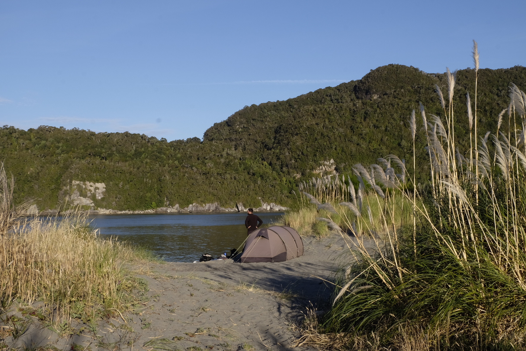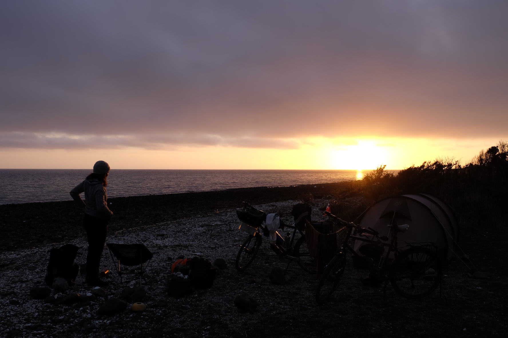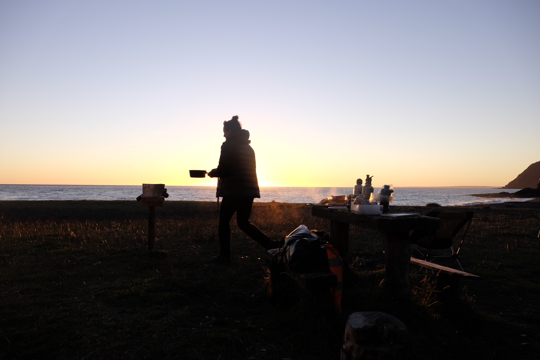El Asfalto: Eben, hart und unstaubig. Ab jetzt werden wir es rollen lassen. Wie von alleine wirds gehen. Mehr Zeit für Erholen, Campen und Erfahren. So haben wir uns dies vorgestellt. Nun ja, ein Kilometer bleibt ein Kilometer. Ein Berg bleibt ein Berg. Regen bleibt Regen und Gegenwind bleibt Gegenwind. Ganz so einfach gehts halt doch nicht. Bei dem launischen Wetter (mal heiss, mal kalt, öfters Regen und Wind) macht es jedoch den kleinen Unterschied. Wir rollen also etwas gemütlicher bergauf, bergab (mit ein paar Ripio-Unterbrüchen). Wie zuvor durch meist einsame, jetzt aber fast ausschliesslich waldige, bergige Landschaften. Campen im Irgendwo, am Meer mit Seehunden und Delfinen (absolut unverständlich für Sam, dass sich beide nicht durch Plantschen anlocken lassen), auf schönen Land- oder überfüllten, lauten Stadtcampings. Mal wird uns die Kunst der Gaucho-Mate-Zubereitung (es gibt mehr Regeln als im ZGB), mal die Geschichte dieser abgelegenen Region, mal kurz der Holzschiffbau erklärt.