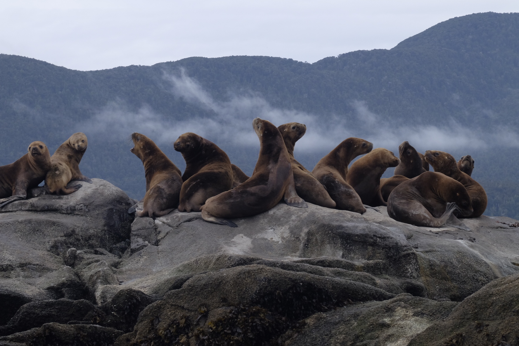Zur sportlichen Abwechslung wandern wir durch dichten Regenwald zum hängenden Gletscher Ventisquero, zum dampfenden Vulkan Chaiten oder zu riesigen Alerces (Bäume, die bis zu 3’000 jährig werden). Zur entspannenden Abwechslung gönnen wir uns ein Bad in heissen Quellen, unternehmen einen Bootsausflug zum Zuhause der Seehunde, Kormorane, Fischotter, Pelikane und Pinguine (Raul Marin Balmaceda), bestaunen die traditionellen Holzhäuser der kleinen Dörfer oder werden in einer Gin-Destilation (Tepaluma), einer edlen Lodge (Patagonian Base Camp) und auf einem Biohof (Mirella und Guillermo) verwöhnt (allen den grössten Dank für die Einladung!).