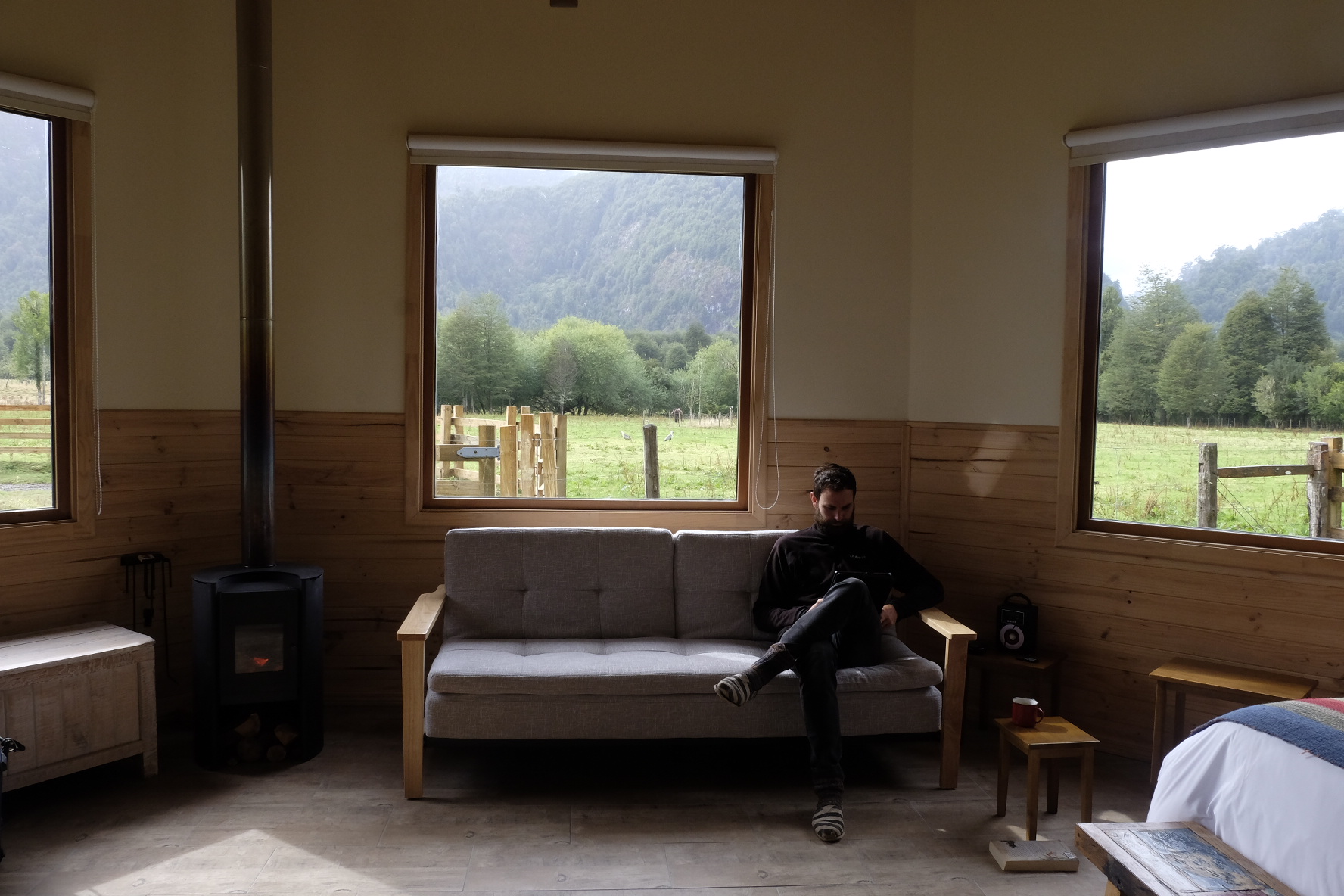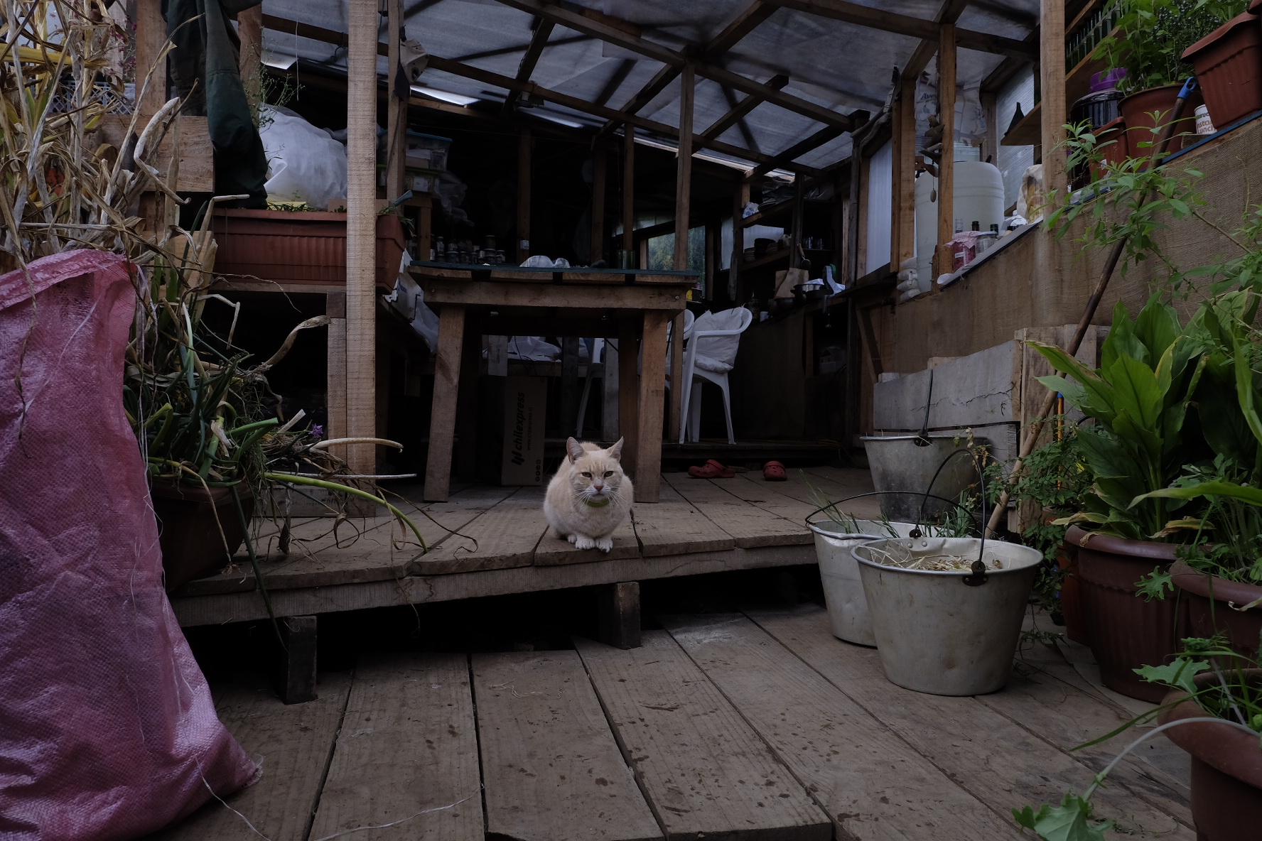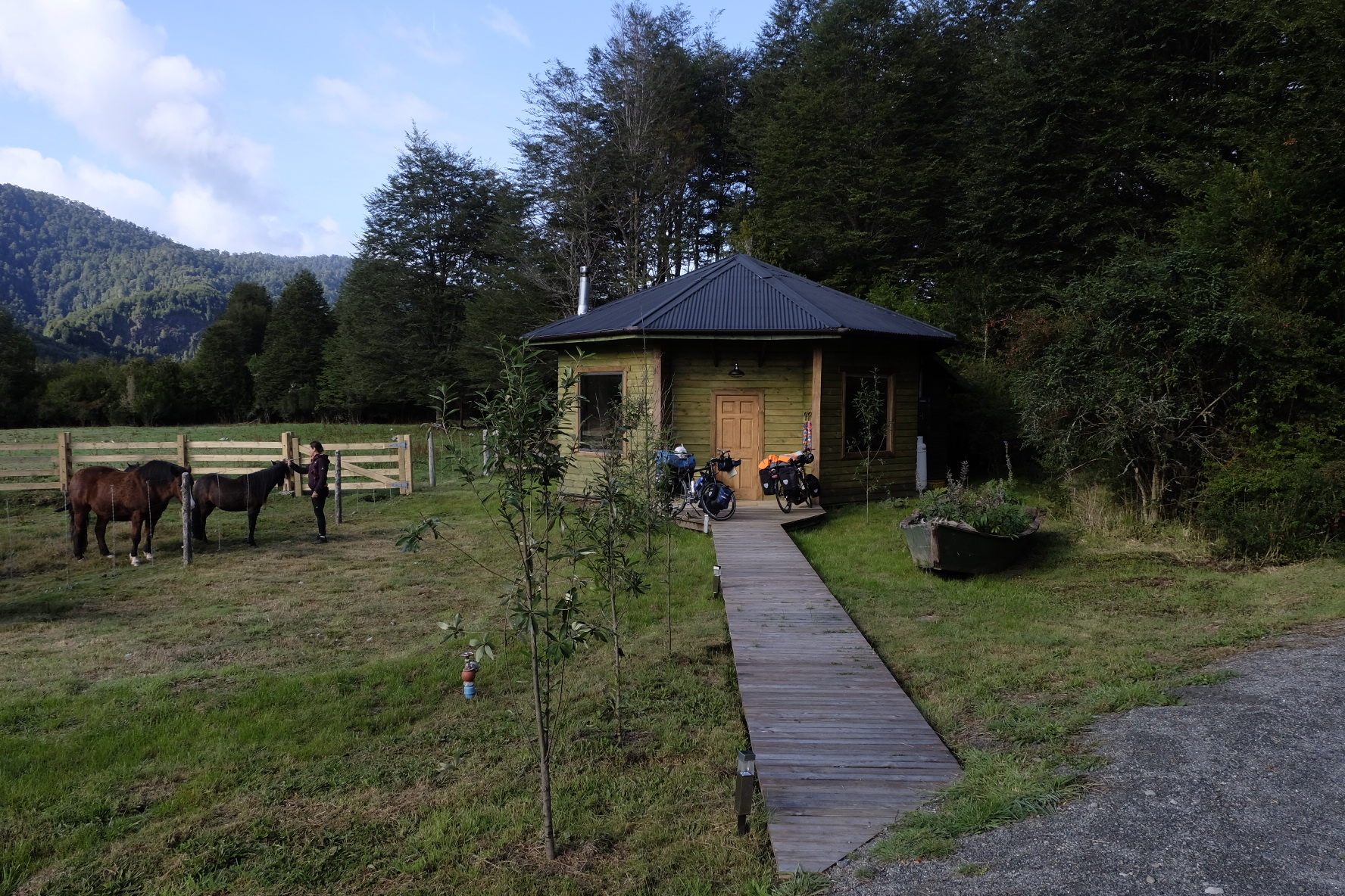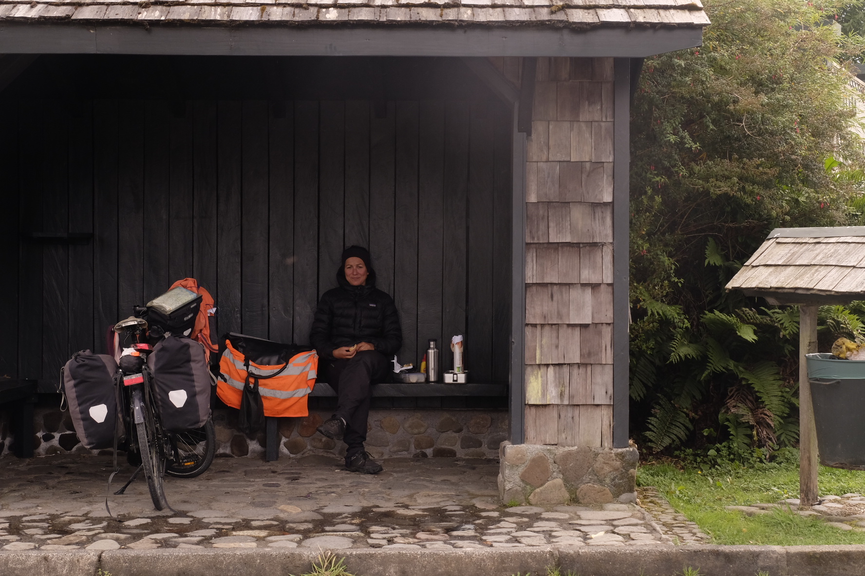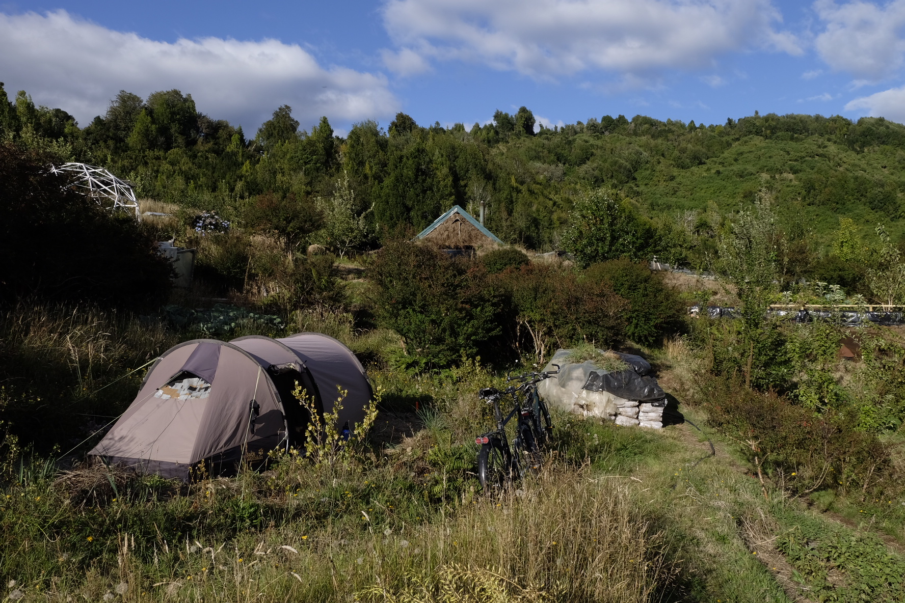 Und irgendwo mittendrin finden wir, was wir trotz all der unglaublichen Eindrücke und Orte bisher nicht gefunden hatten: einen Platz zum Arbeiten. Nebst Velofahren, Erholen und Kennenlernen soll dies ein Bestandteil der Reise sein. Auf dem Weg wird deshalb ständig gefragt, ob es in naher oder ferner Umgebung Möglichkeiten gäbe. Irgendein nachhaltiges, grundsätzlich nicht komerzielles Projekt (wir wollen keine Arbeitsplätze konkurrenzieren) oder auf einem Biohof beispielsweise. Einen Ort, wo wir mithelfen und im Gegenzug etwas lernen können. In La Junta, bei Konomi und Paul, hat sich diese Möglichkeit ergeben. Wir helfen zwei Wochen mit, den innovativen Biohof zu unterhalten und auszubauen (alles unter strenger Aufsicht von Inspector Kitty, der Katze). Dafür erfahren wir viel über biologische Anbaumethoden und nachhaltige Lebensweise (wir werden in Zukunft einen separaten Blog erstellen, wo wir gewisse Projekte, welche wir im Laufe der Reise kennenlernen, ausführlicher beschreiben). Weshalb nur zwei Wochen. Der kommende Winter ist Schuld. Dem bevorstehenden Kälteeinbruch möchten wir Richtung Norden davonfahren. Auf gehts also zu den letzten Kilometern Carretera Austral nach Puerto Montt.