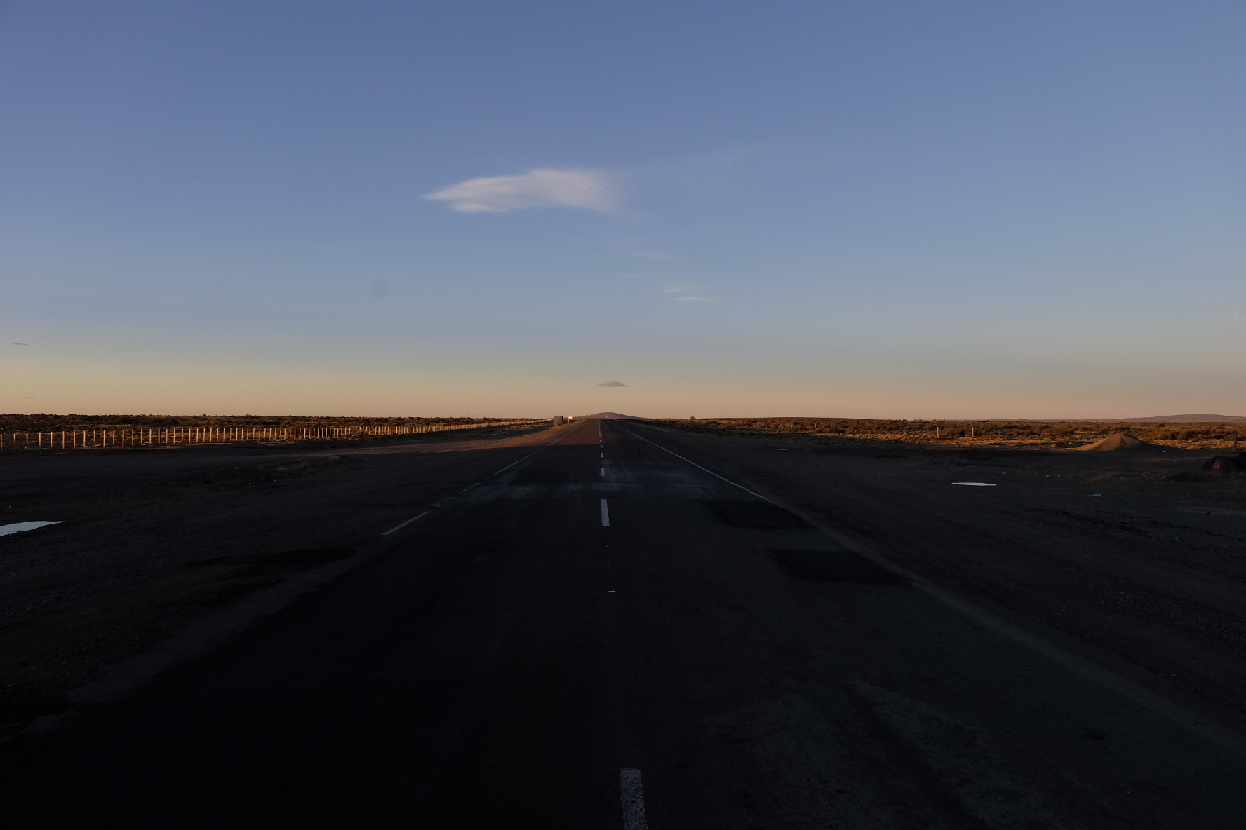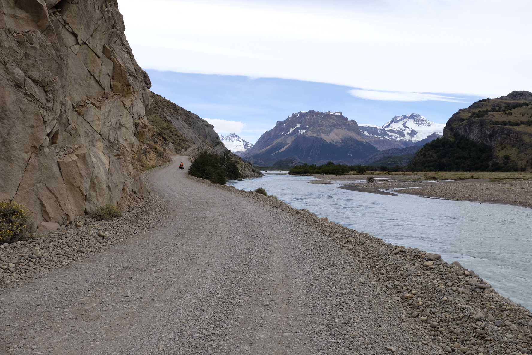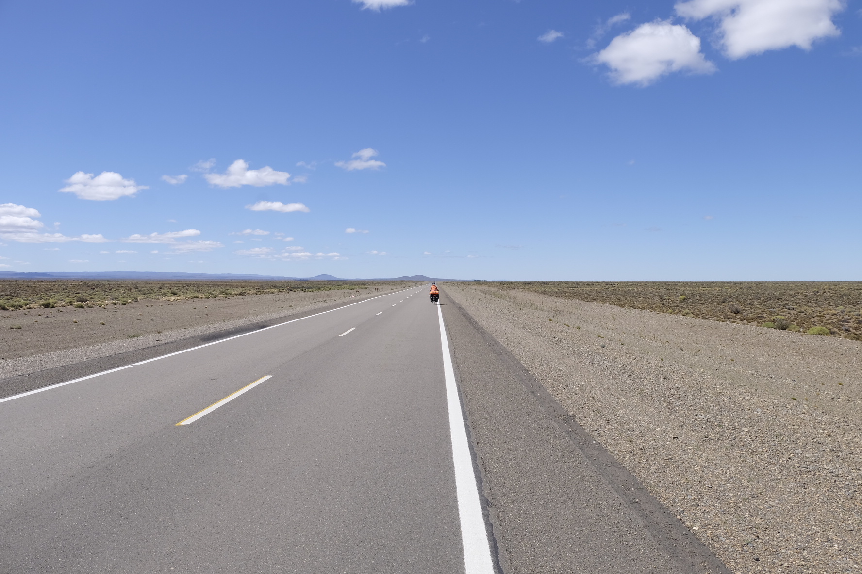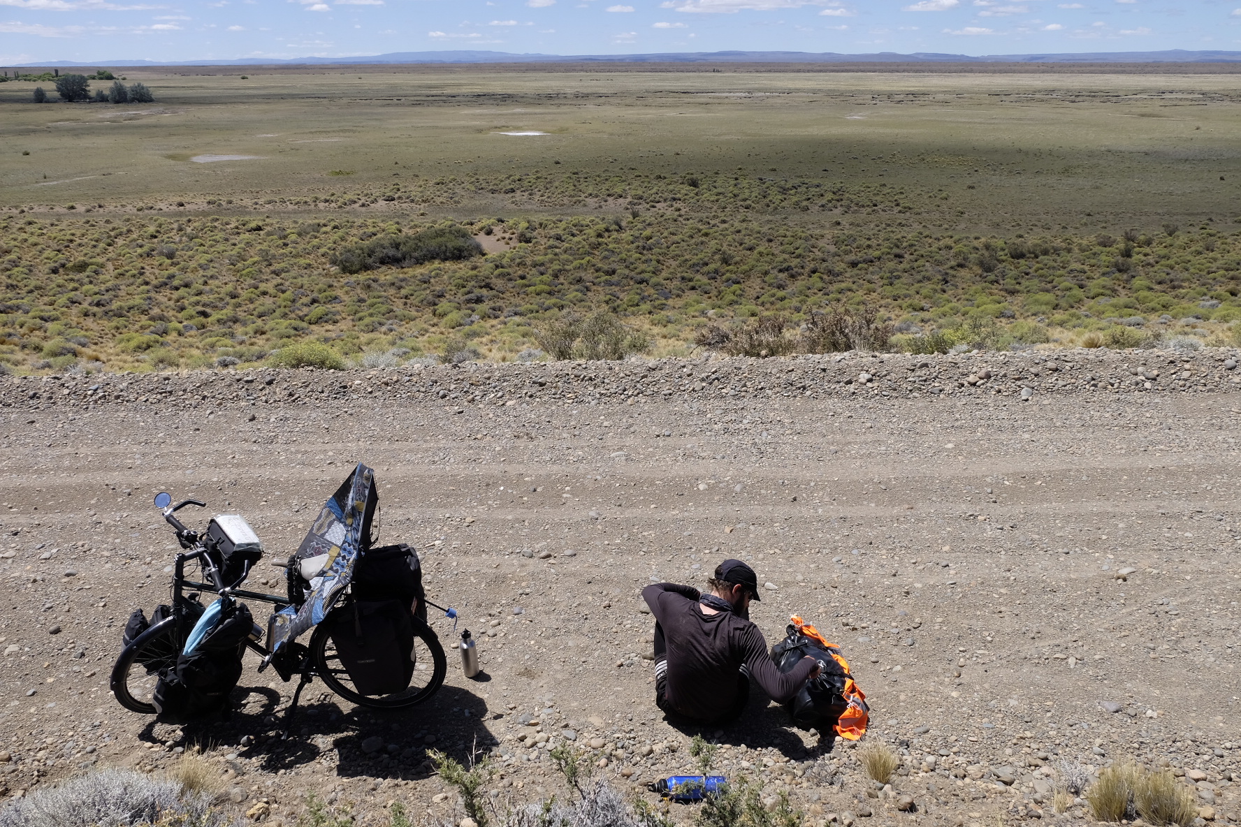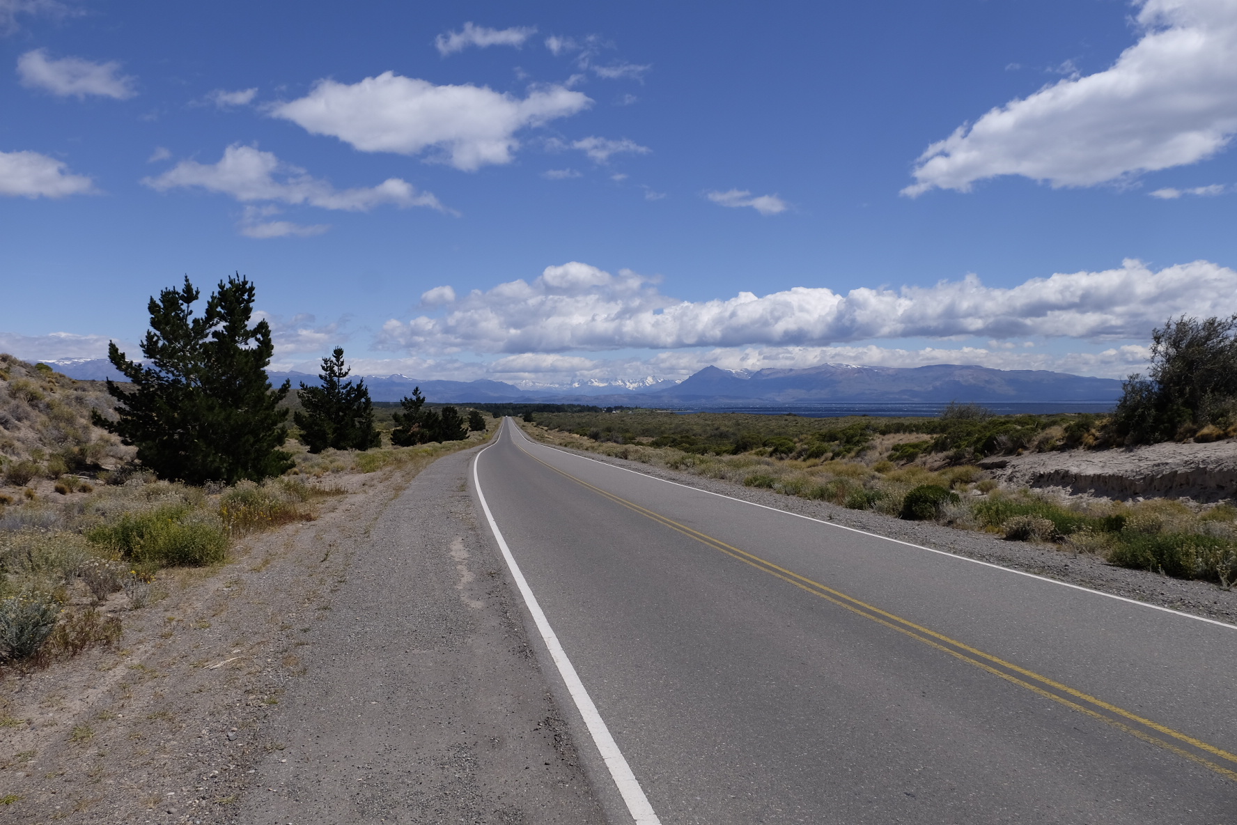 Die Ruta 40 ist in diesem Bereich durchgehend asphaltiert. Ein Seitenstreifen ist meist vorhanden. Mässiges Verkehrsaufkommen zu unserer Zeit. Der Abschnitt nach Facundo auf der Ruta 43 bis zur Ruta 40 ist Naturstrasse. Teils relativ loser Schotter. Starke Winde auf der ganzen Strecke (vor allem Westwind, also Seitenwind). Von Facundo bis Los Antigos mussten wir Autostopp machen, an ein Weiterfahren war wegen dem Wind, der uns auf die Gegenfahrbahn geworfen hat, nicht mehr zu denken.