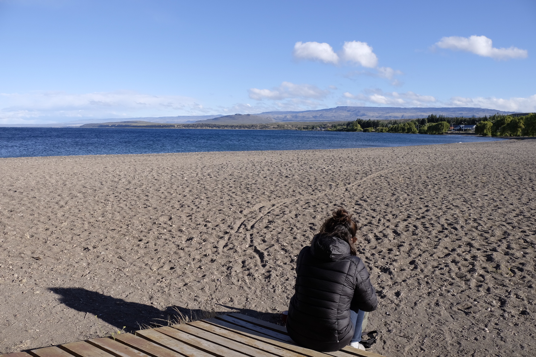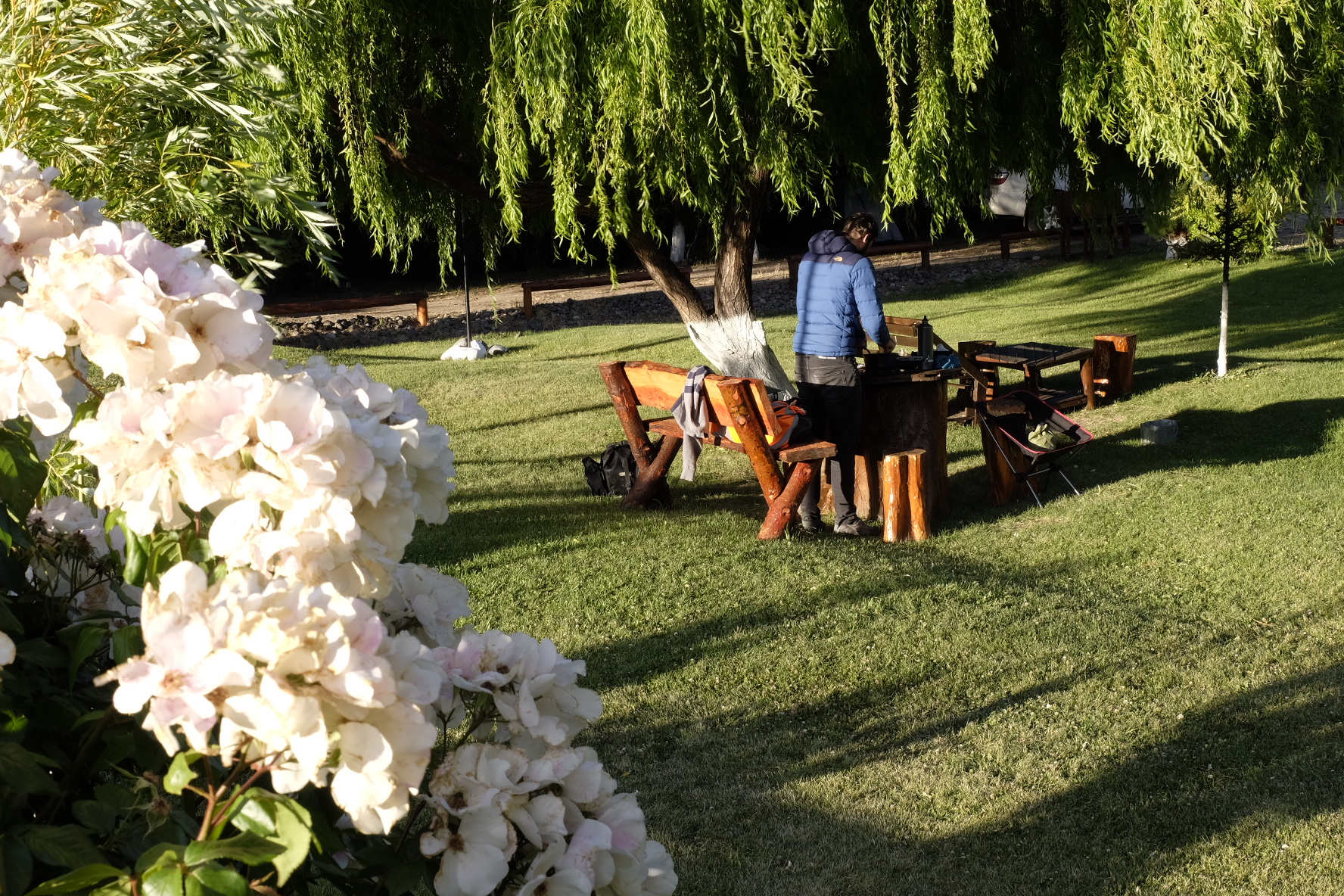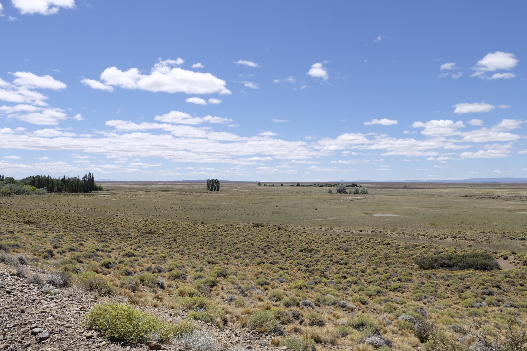 Man sagte uns, an der Cordillera windet es weniger. Die Karte sagt mir, die Kreuzung Ruta 25 und 63 liegt bereits Nahe der Cordillera. Der Wind sagt nichts, er pfeifft nur noch. Nach 4 Stunden Mittagspause glauben wir nicht mehr an ein Abflauen. Hier übernachten? Die Vorräte sind wohl zu knapp. Also weiter. Mit 7km/h. Aber wir kommen nicht weit. Zum Glück! Unser Weihnachtsgeschenk gibts schon am 23.12: Eine am Tag zuvor gemachte Bekanntschaft bietet uns eine Mitfahrgelegenheit an. 10min später ist alles verstaut, Jose de San Martin wir kommen. Zu Weihnachten wird deshalb nicht gestrampelt, sondern Asado gekostet, dem Samichlaus zugesehen und Pizza gemacht. Felizes Fiestas!