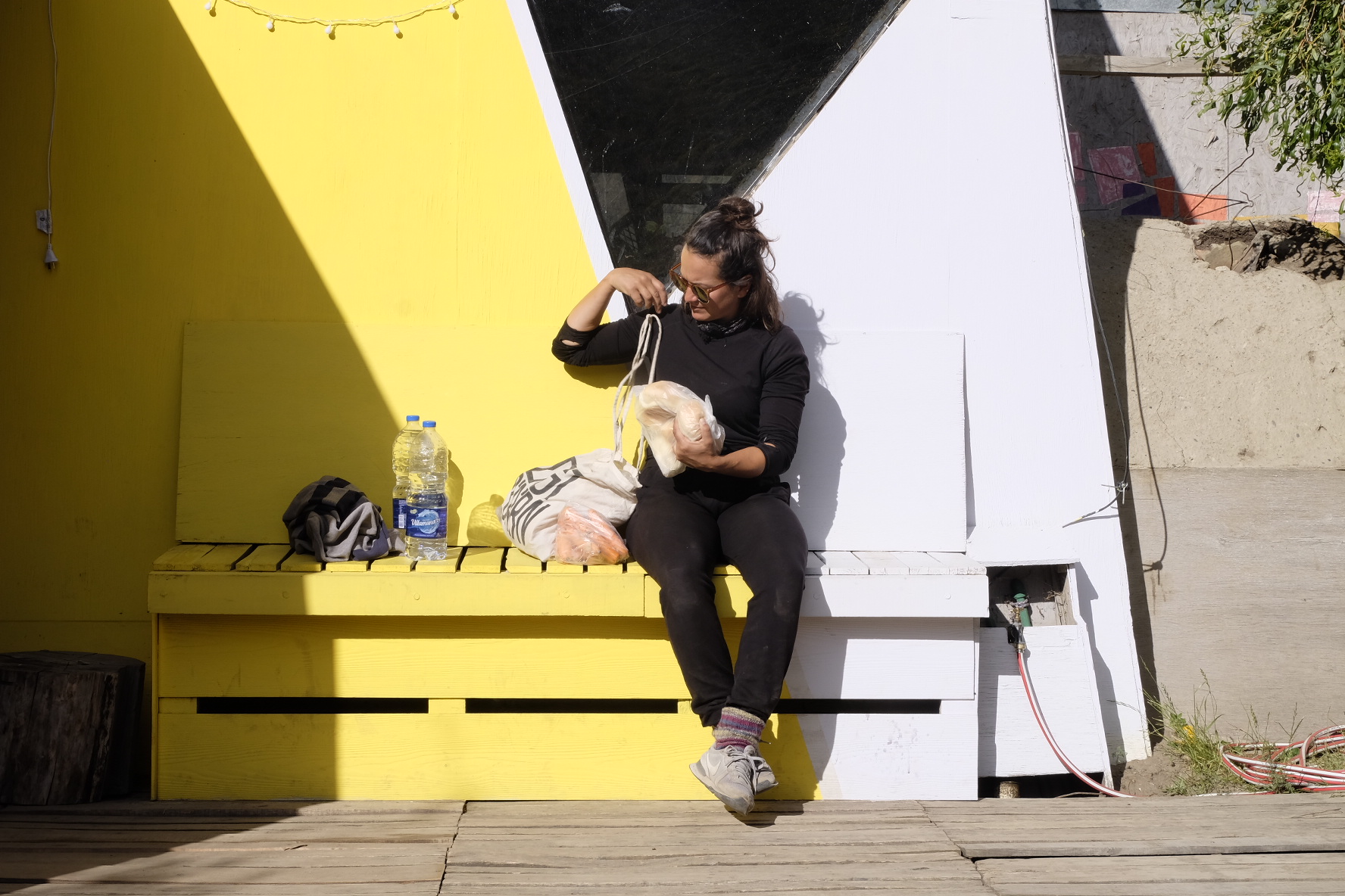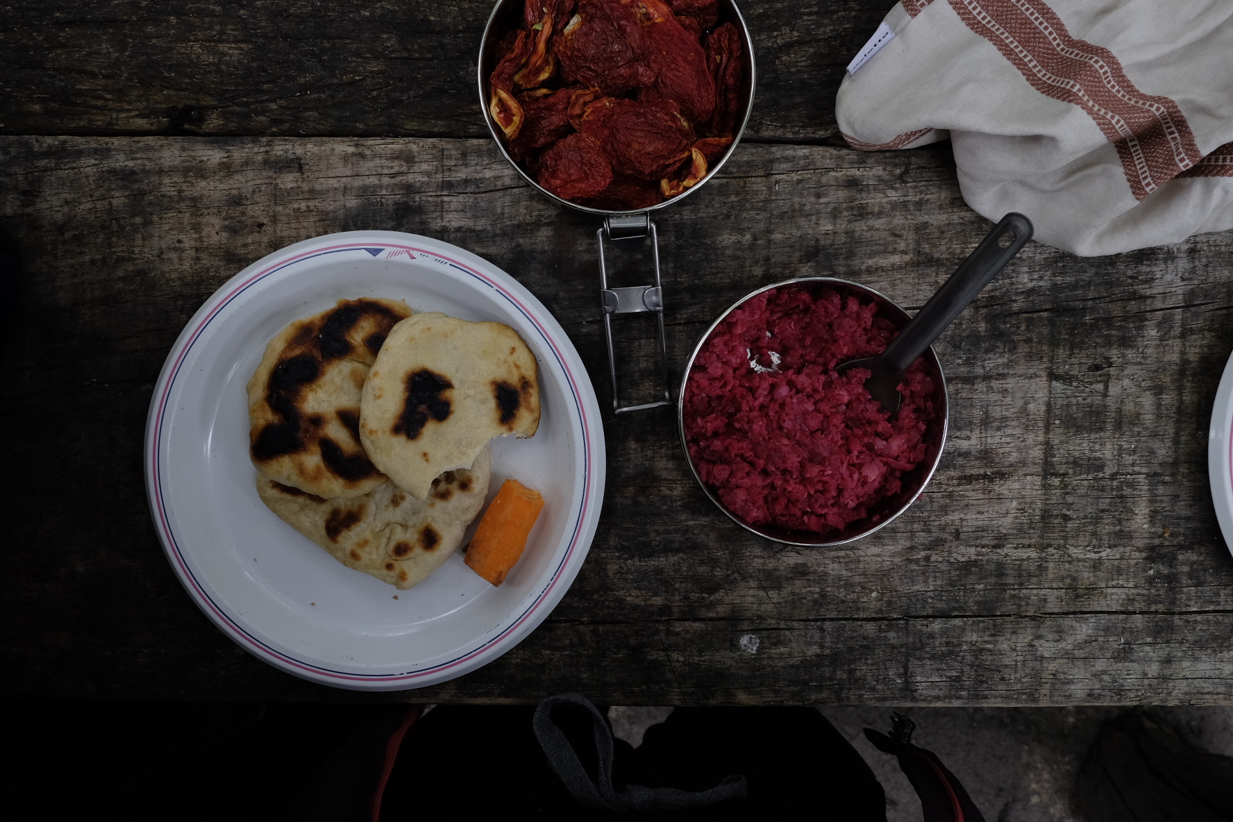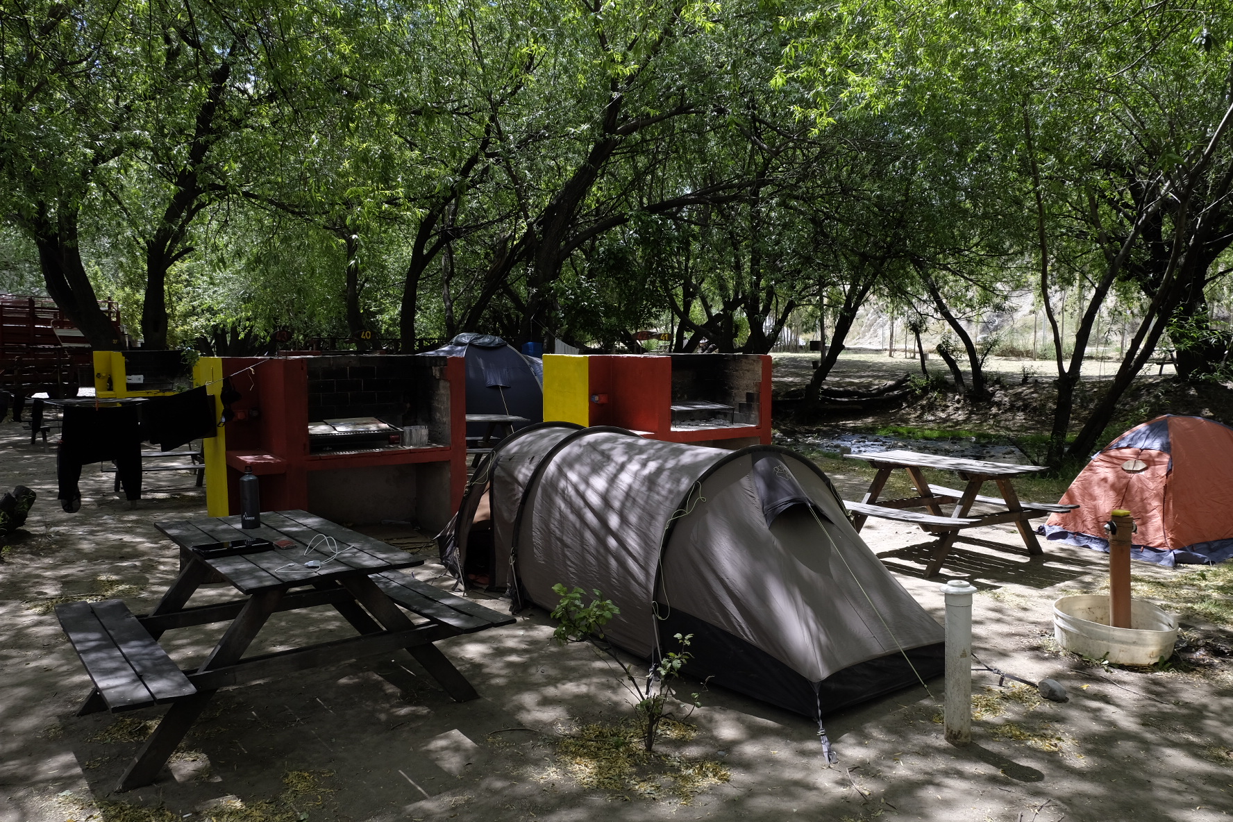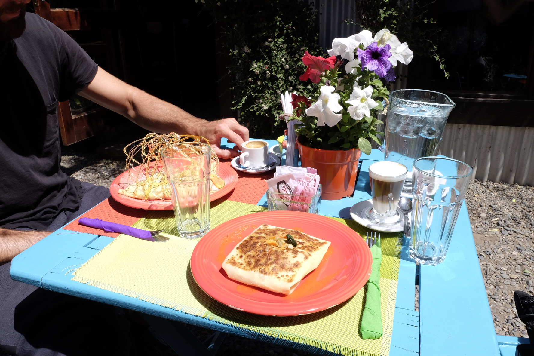 Man sagte uns, an der Cordillera windet es weniger. Die Karte sagt mir, die Kreuzung Ruta 25 und 63 liegt bereits Nahe der Cordillera. Der Wind sagt nichts, er pfeifft nur noch. Nach 4 Stunden Mittagspause glauben wir nicht mehr an ein Abflauen. Hier übernachten? Die Vorräte sind wohl zu knapp. Also weiter. Mit 7km/h. Aber wir kommen nicht weit. Zum Glück! Unser Weihnachtsgeschenk gibts schon am 23.12: Eine am Tag zuvor gemachte Bekanntschaft bietet uns eine Mitfahrgelegenheit an. 10min später ist alles verstaut, Jose de San Martin wir kommen. Zu Weihnachten wird deshalb nicht gestrampelt, sondern Asado gekostet, dem Samichlaus zugesehen und Pizza gemacht. Felizes Fiestas!