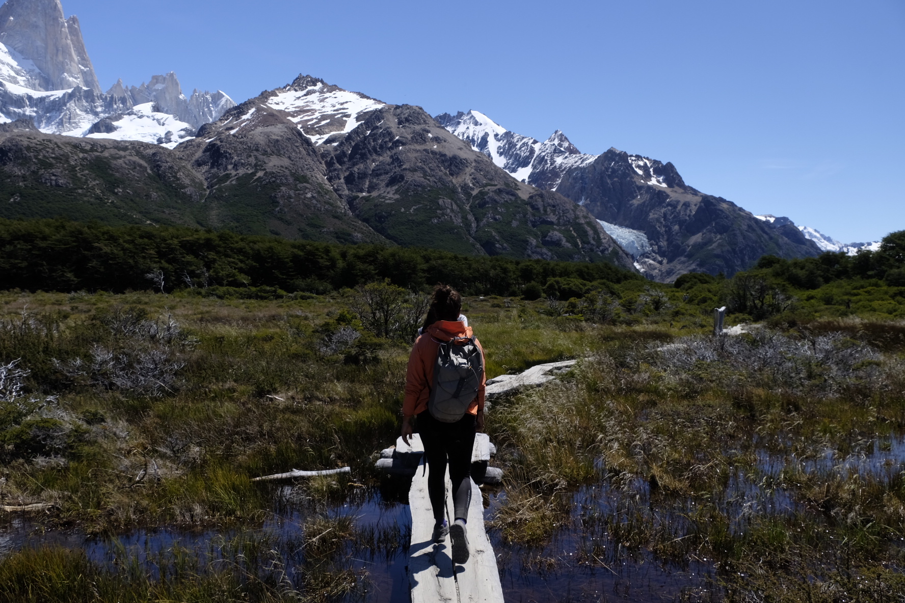Im Süden Patagoniens teilen wir die spektakulären Touristenattraktionen Glaciar Perito Moreno und die Wanderwege um Chalten mit einer teils schwindelerregenden Touristenmasse (Dichtestress auf Camping und Wanderwegen). Lohnenswert war es trotzdem. Die Aussichten einzigartig. Und einzigartig ist auch der Übergang nach Chile. Auf Schotterpiste und mit Schiff gehts zum berühmten Velotrecking. 5-6km Wanderweg. Steil, steinig, matschig. Und meist unbefahrbar (für uns immer). An manchen Stellen muss zu zweit geschoben werden. An anderen wird das Fahrrad über grössere Bäche getragen. An anderen irgendwie durch den knietiefen Matsch gezogen. Aber es soll sich lohnen. Die Carretera Austral sei ein Veloparadies. Wir hoffen, dass es diesmal stimmt!
