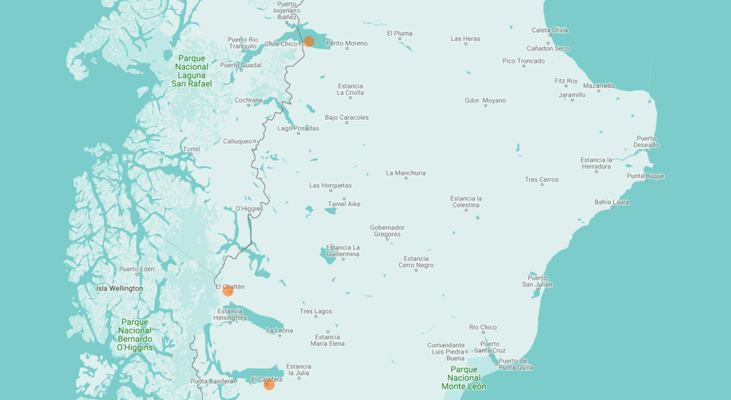 Hielo y demasiado viento (Patagonien II) – Unsere Route: José de San Martin ~ Estancia Nueva Lubecka ~ Los Tamariscos ~ Facundo > Los Antigos > El Calafate > El Chalten