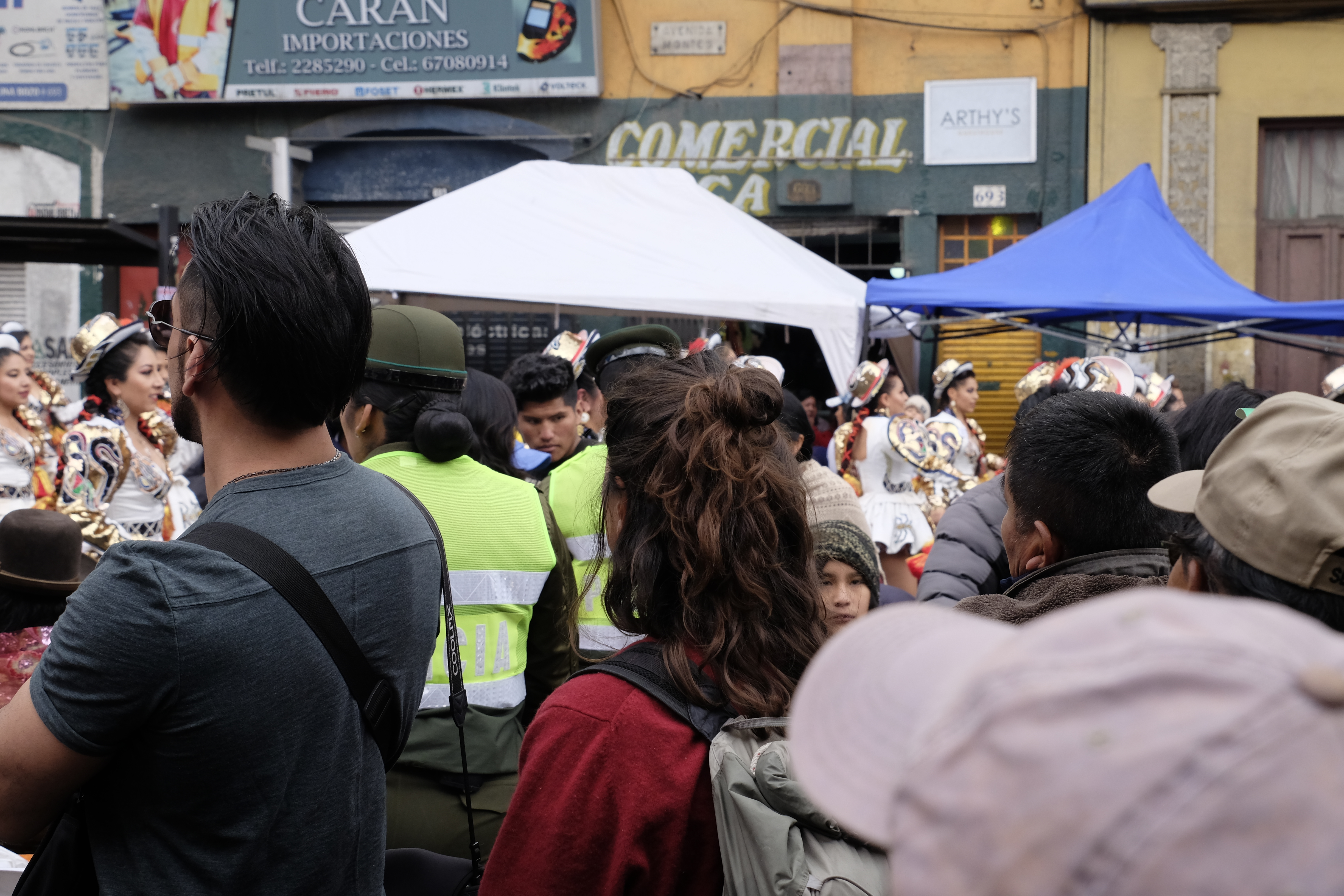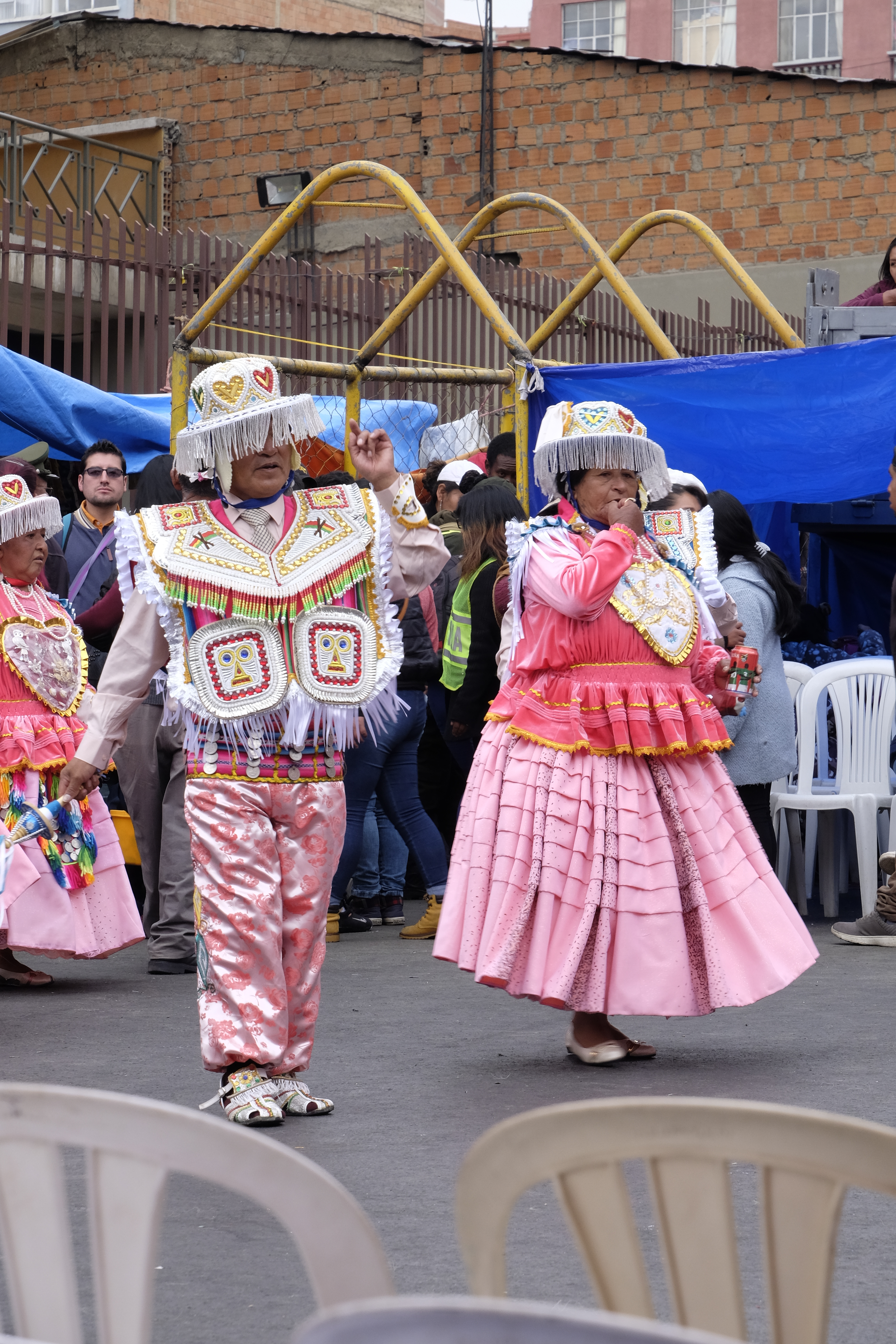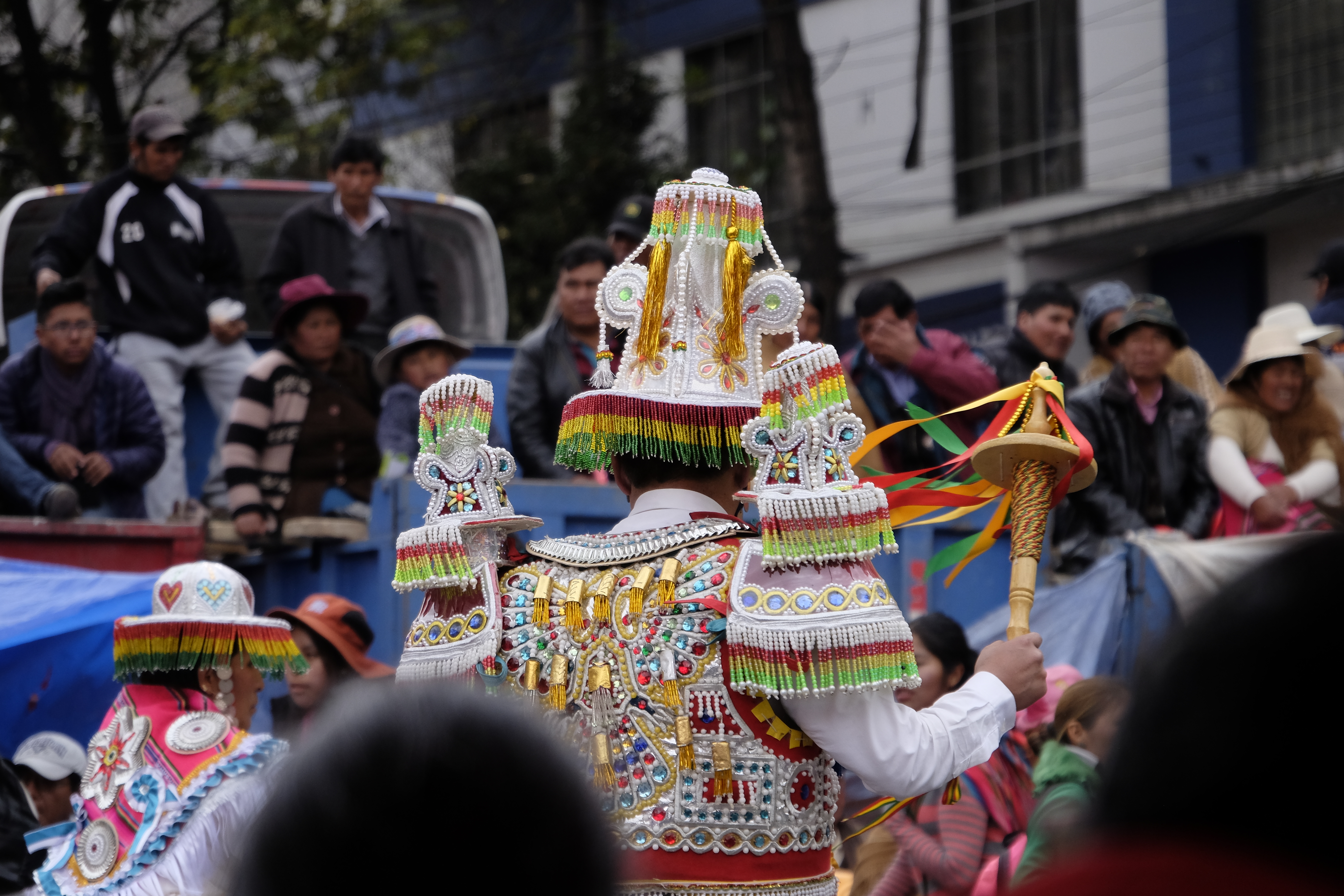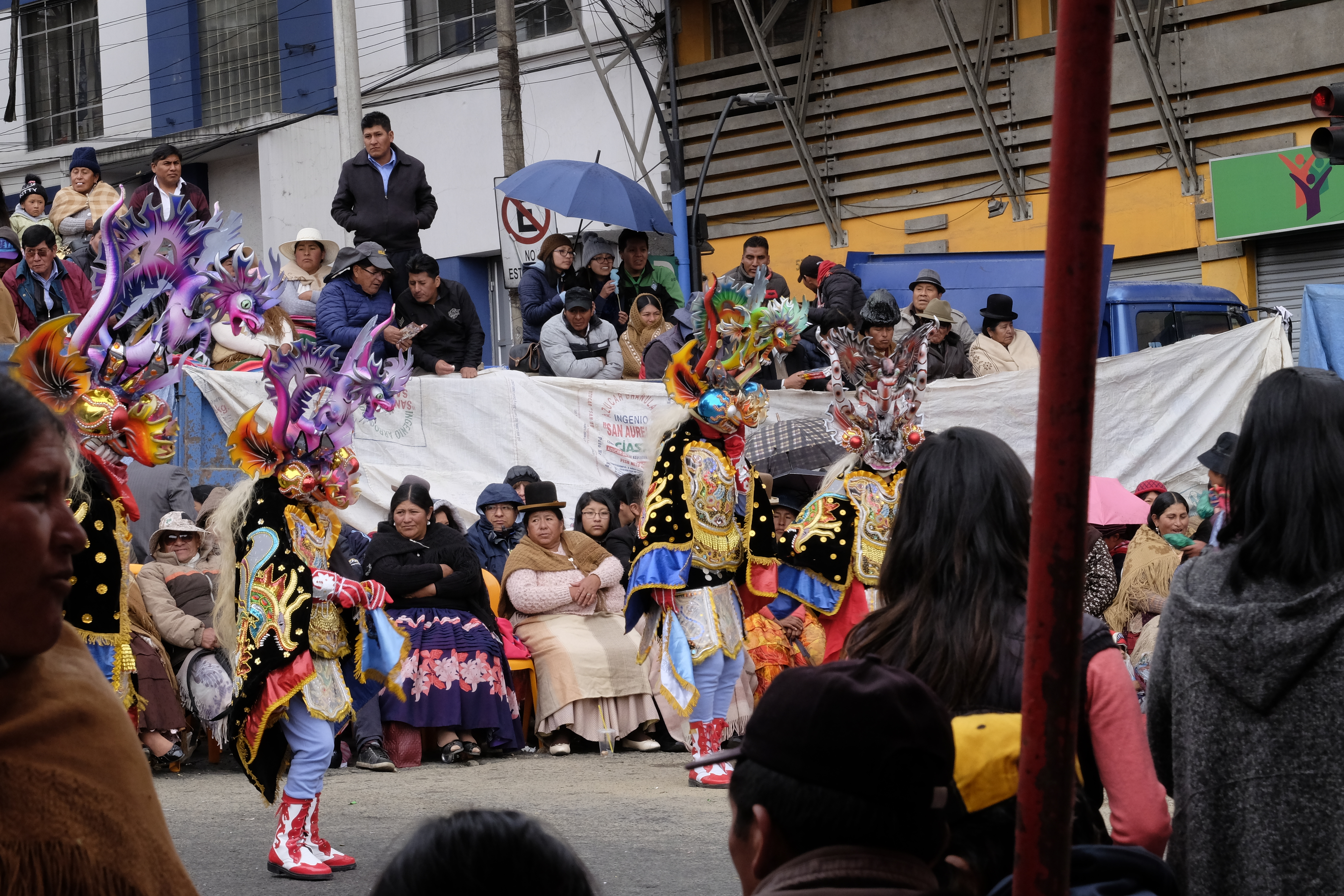 Mit den Füssen am Boden bleibt die Stadtt faszinierend: von der hippen Bar bis zum «Hexen-Markt» sind es nur ein paar Minuten. Und unterschiedlicher könnte es kaum sein: Dort die modern gekleideten internationalen Touristen in Schwarz mit Cappuccino oder IPA, hier die traditionell gekleideten Marktfrauen in bunten Trachten mit getrockneten Lama-Föten (wir wollen ja ein extremes Beispiel nennen). Alte Bräuche, Religionen und Sprachen scheinen in Bolivien gelebt und gefördert zu werden, wie kaum in einem anderen Land. Apropo Bräuche: wir erleben den jährlichen «El Gran Poder», der grösste Umzug Boliviens. Ausgerüstet mit Trompete, Panflöte und Trommel, in den schönsten bis wildesten Kostümen und Trachten, tanzen tausende verschiedene Verbände den ganzen Tag durch die Strassen. Wir sitzen am Rande, schauen dem Treiben gespannt zu. Und leiden ein bisschen mit. Denn nicht alle Teilnehmenden scheinen vom Hochland zu kommen (oder haben zu viel getrunken).