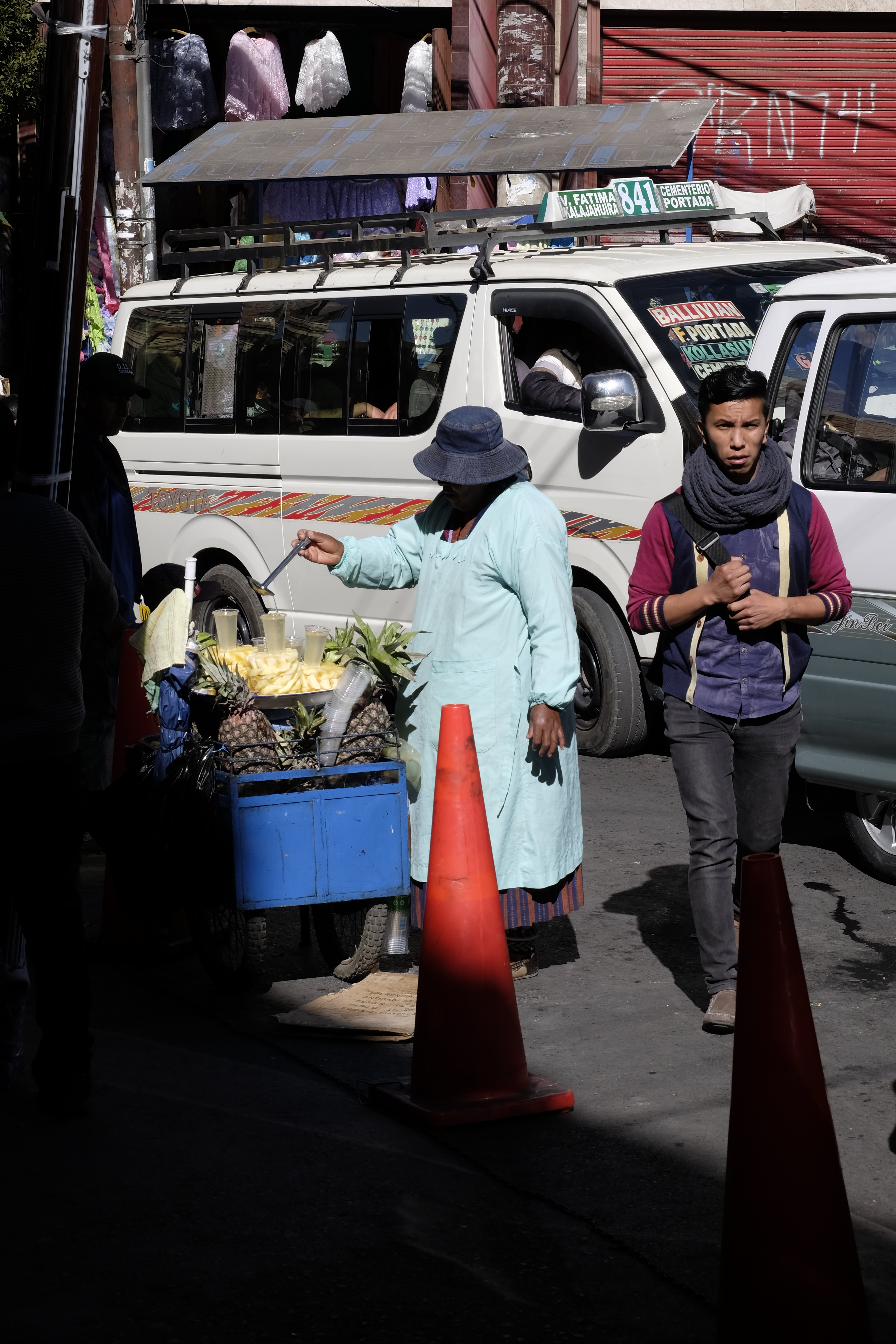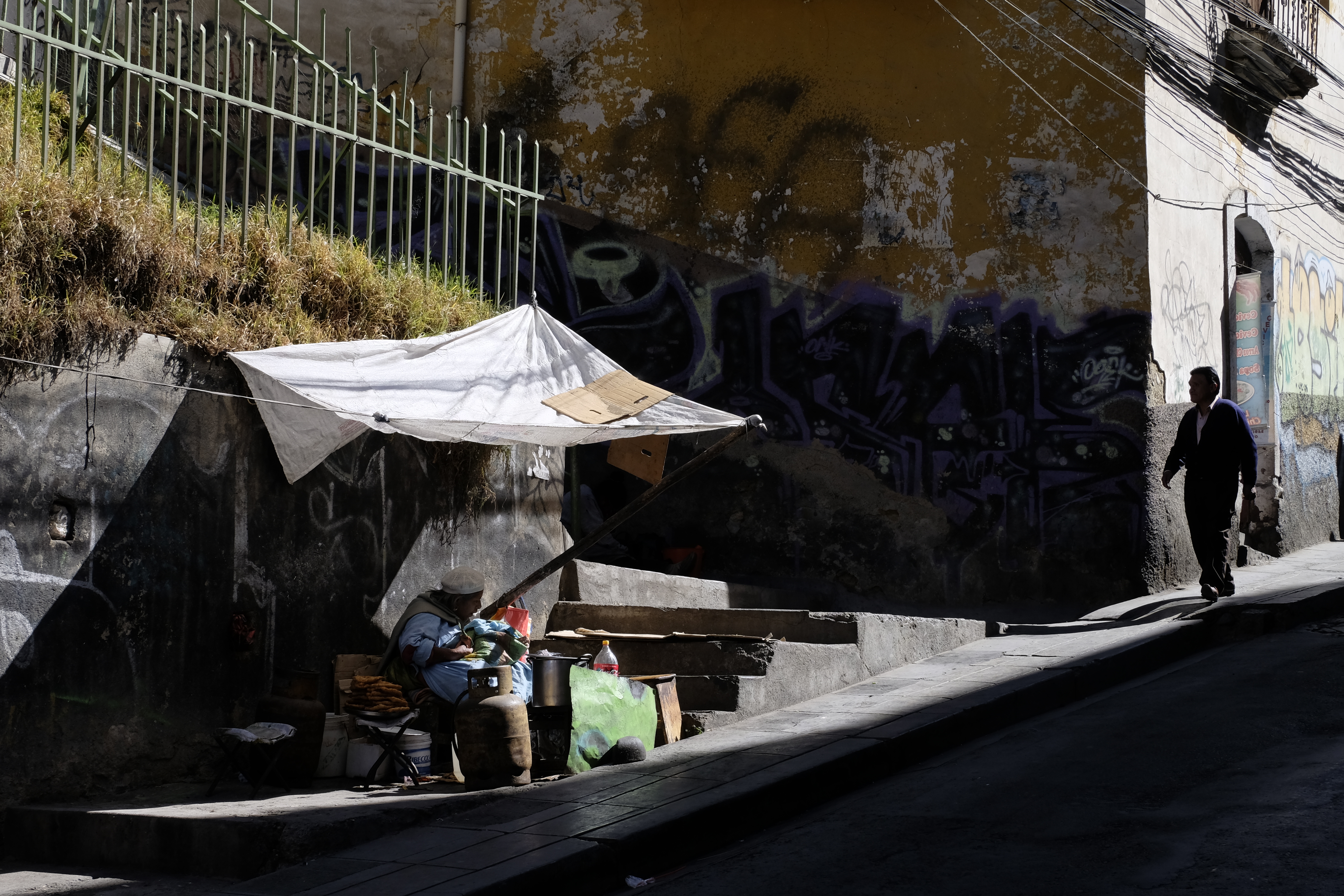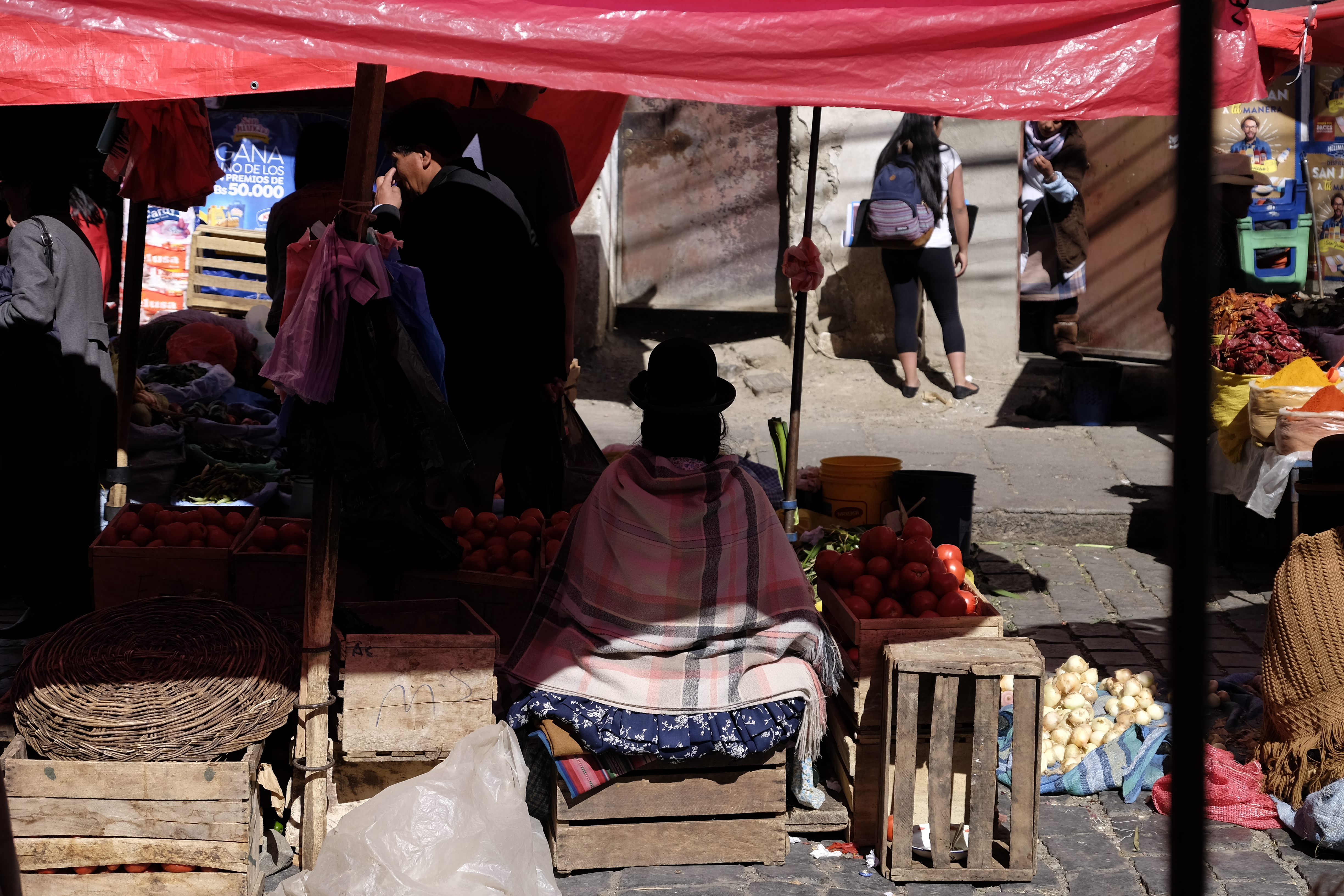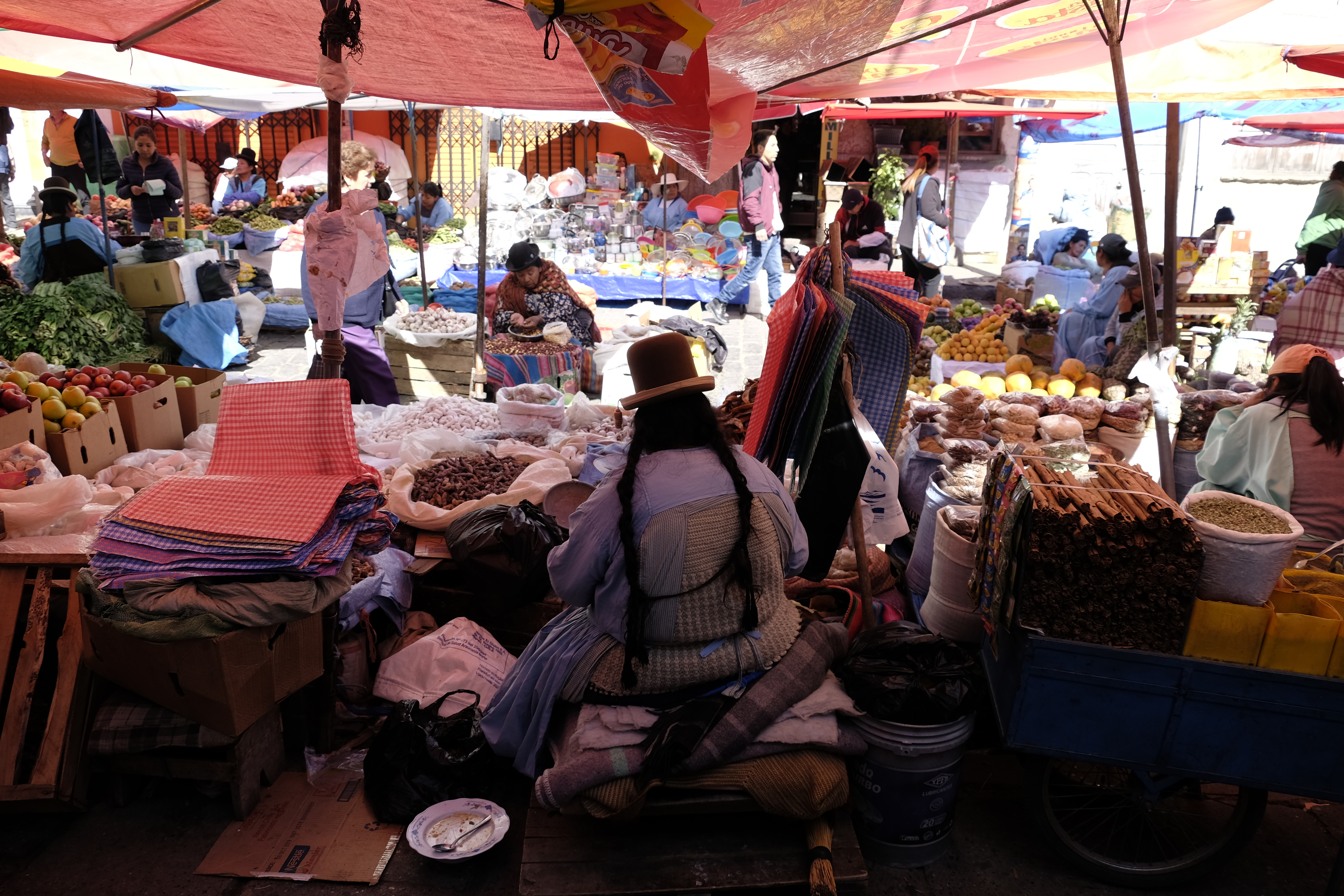 Mit den Füssen am Boden bleibt die Stadtt faszinierend: von der hippen Bar bis zum «Hexen-Markt» sind es nur ein paar Minuten. Und unterschiedlicher könnte es kaum sein: Dort die modern gekleideten internationalen Touristen in Schwarz mit Cappuccino oder IPA, hier die traditionell gekleideten Marktfrauen in bunten Trachten mit getrockneten Lama-Föten (wir wollen ja ein extremes Beispiel nennen). Alte Bräuche, Religionen und Sprachen scheinen in Bolivien gelebt und gefördert zu werden, wie kaum in einem anderen Land. Apropo Bräuche: wir erleben den jährlichen «El Gran Poder», der grösste Umzug Boliviens. Ausgerüstet mit Trompete, Panflöte und Trommel, in den schönsten bis wildesten Kostümen und Trachten, tanzen tausende verschiedene Verbände den ganzen Tag durch die Strassen. Wir sitzen am Rande, schauen dem Treiben gespannt zu. Und leiden ein bisschen mit. Denn nicht alle Teilnehmenden scheinen vom Hochland zu kommen (oder haben zu viel getrunken).