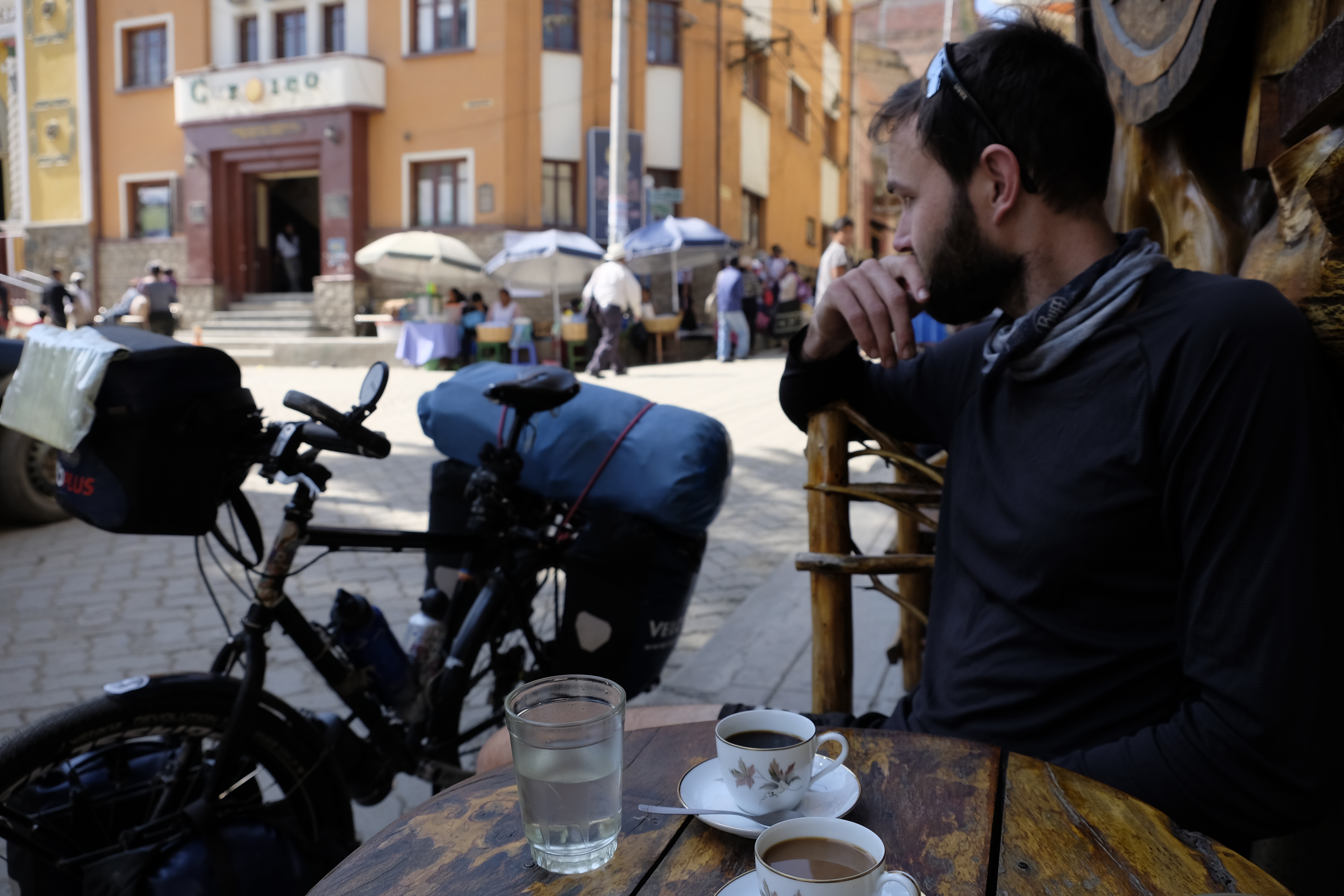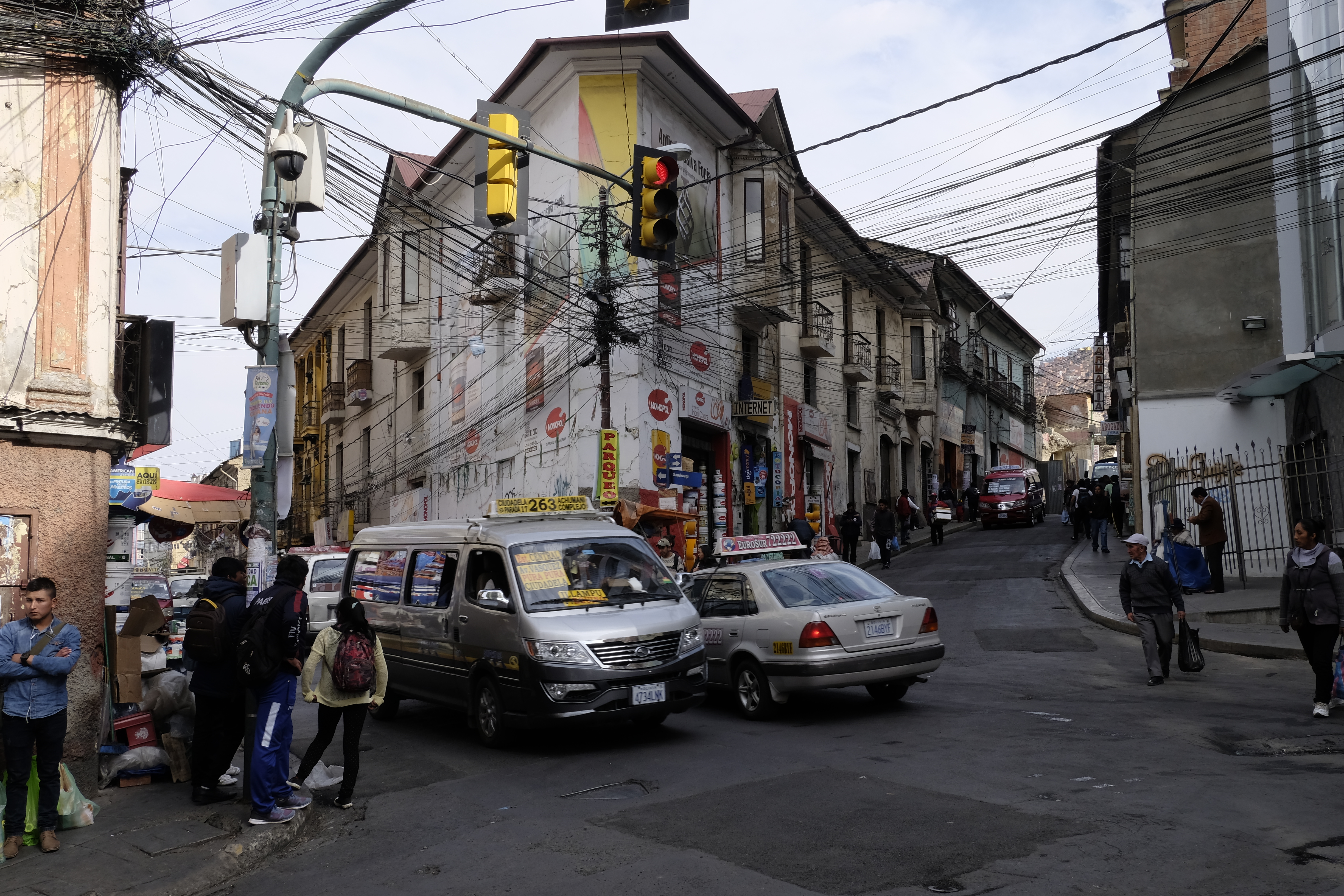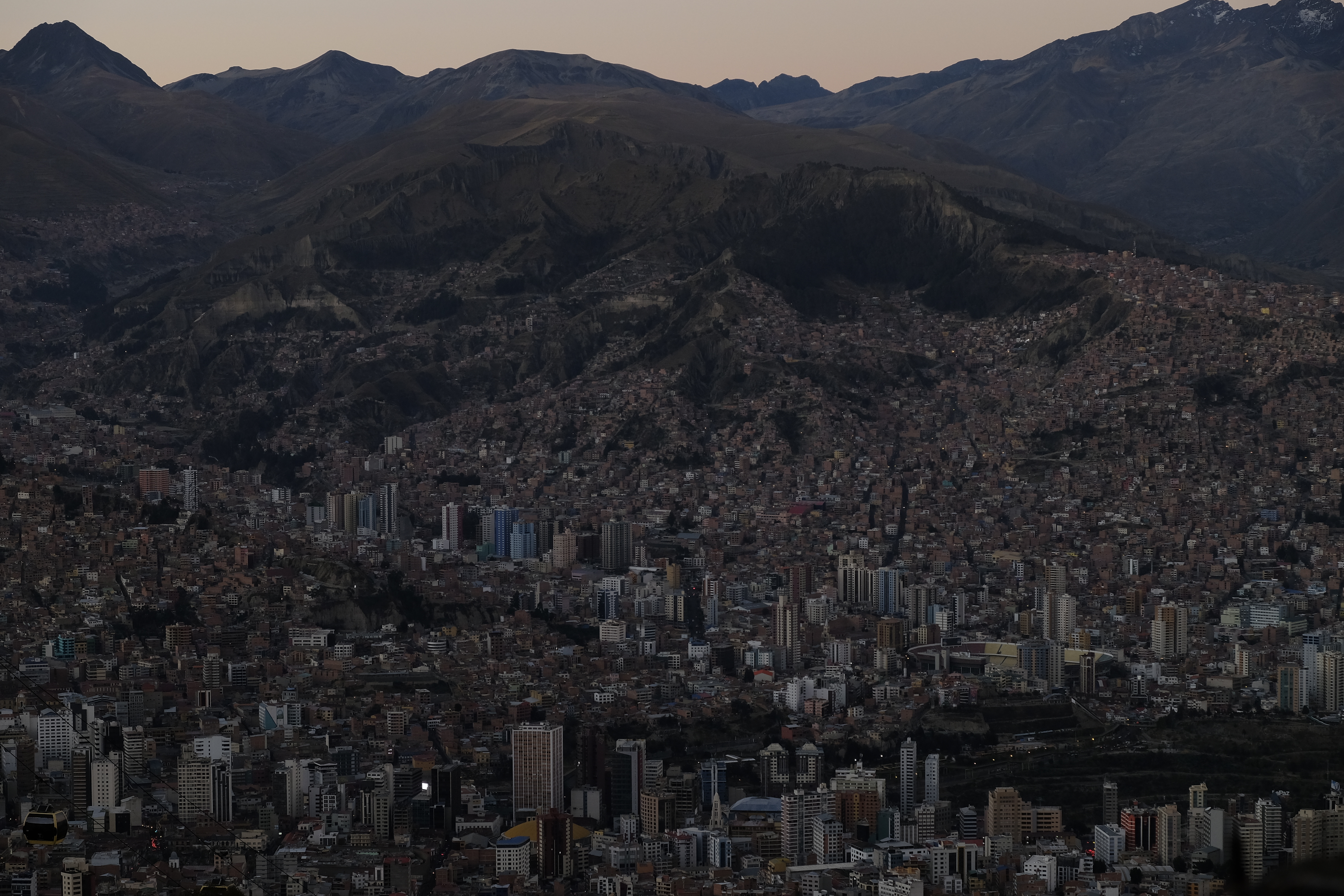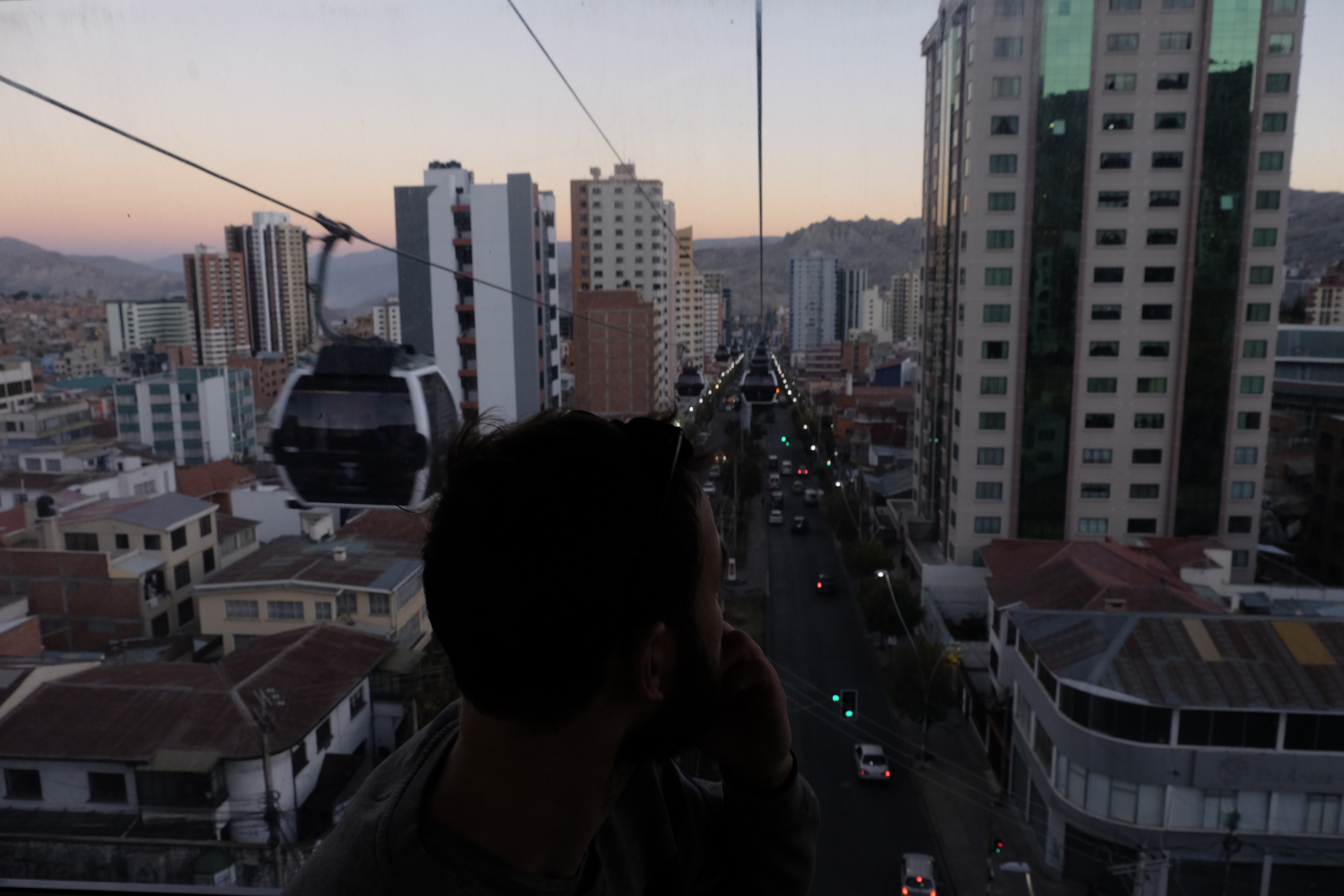 Nach 5 Monaten verlassen wir Chile. Wie gut uns dieses abwechslungsreiche Land mit den gastfreundlichen Leuten gefallen hat, konnte hoffentlich unseren Geschichten und Bilder entnommen werden. Trotzdem: Je näher wir Bolivien kommen, desto mehr freuen wir uns auf einen kulturellen Wechsel, auf farbige Buse, traditionelle Märkte, Dschungel und natürlich auf die Chance, auf einer Kaffeeplantage mitzuwirken. Doch bevor wir all dies spüren dürfen, spüren wir unsere Köpfe. Kaum in La Paz angekommen, brummen sie so richtig. Von 0 auf 3‘700hm (Caldera – La Paz) verkraften wir nicht ohne Weiteres. Es fehlt schlicht und einfach an Sauerstoff. Die ersten Treppen sind kaum zu meistern. Während Tagen begleitet uns leichtes Unwohlsein. Sogar der sonst so treue Begleiter «Appetit» vergeht uns kurzzeitig. Grund genug, diese in steile Hänge gebaute Stadt per «Teleféricos» zu erkunden. Ca. 8 Gondeln verbinden die verschiedenen Stadtteile, welche zwischen ca. 3‘200 und 4‘200 Höhenmeter liegen. In Schweizer-Alpen-Manier fliegen wir zwischen Hochhäuser, unter Brücken, über chaotische Strassen und unzählige Innenhöfe, über Fussballfelder, architektonisch eigenwillige, imposante Bauten (von Architekt Mamani) und endlose Märkte. Während Stunden beobachten wir das Treiben dieser bunten, lebendigen Stadt vom Himmel aus. Und gondelhafte Aussichten geniessen wir auch bei einem kurzen Ausflug in die Umgebung oder von unserer ersten Bleibe aus. Bastian, unser Schwedischer (super) Warmshower Host machts möglich. Danke nochmals für alles!