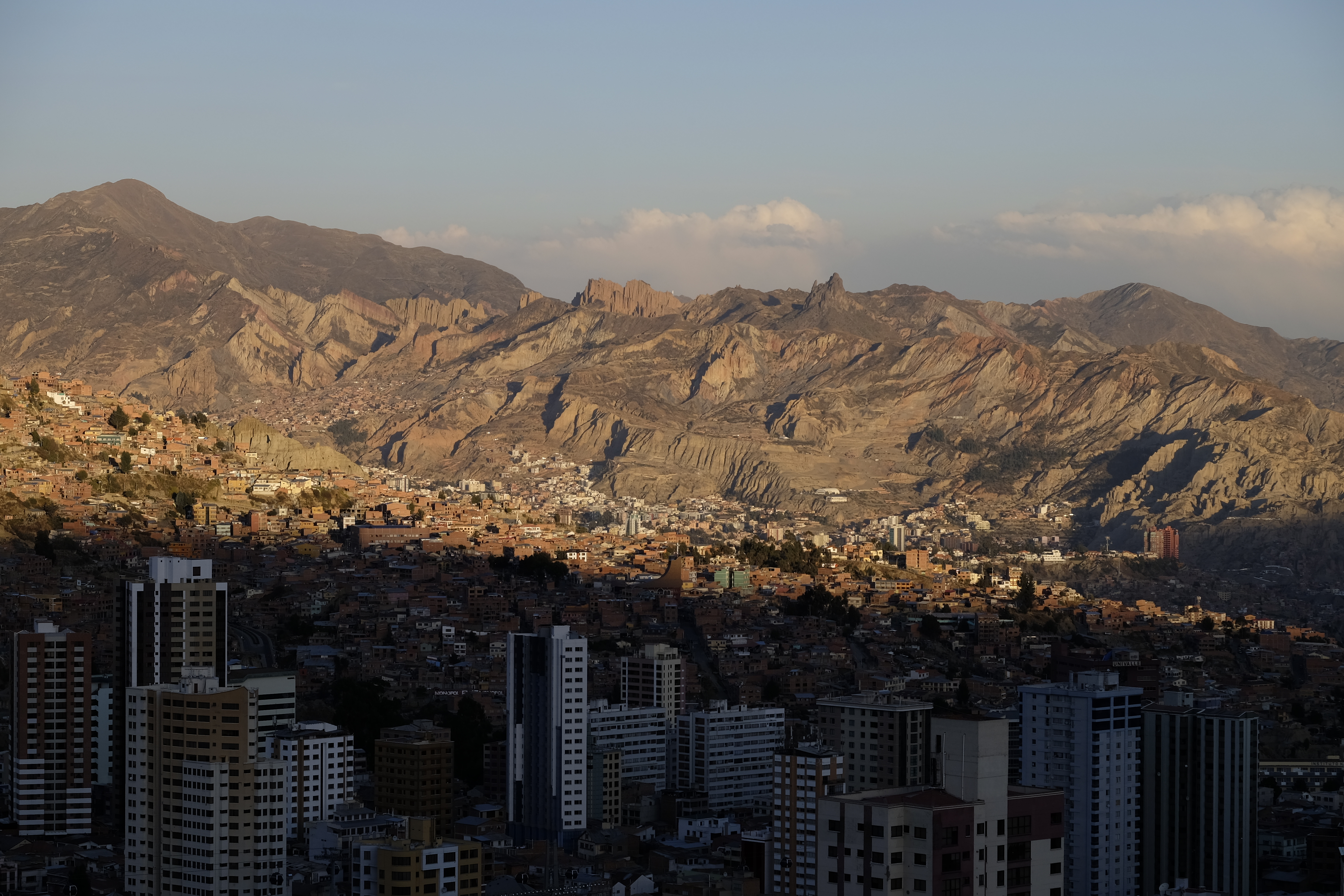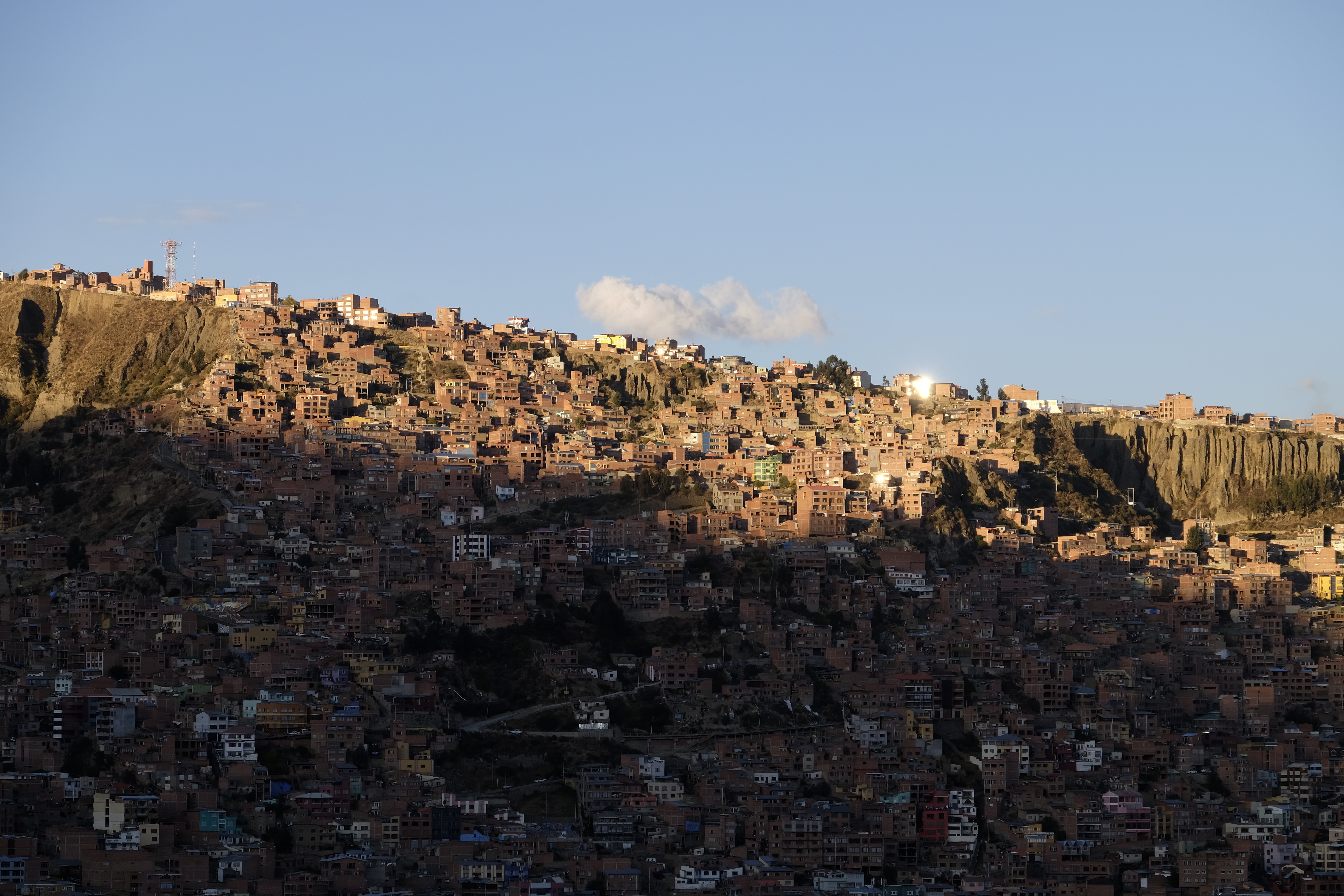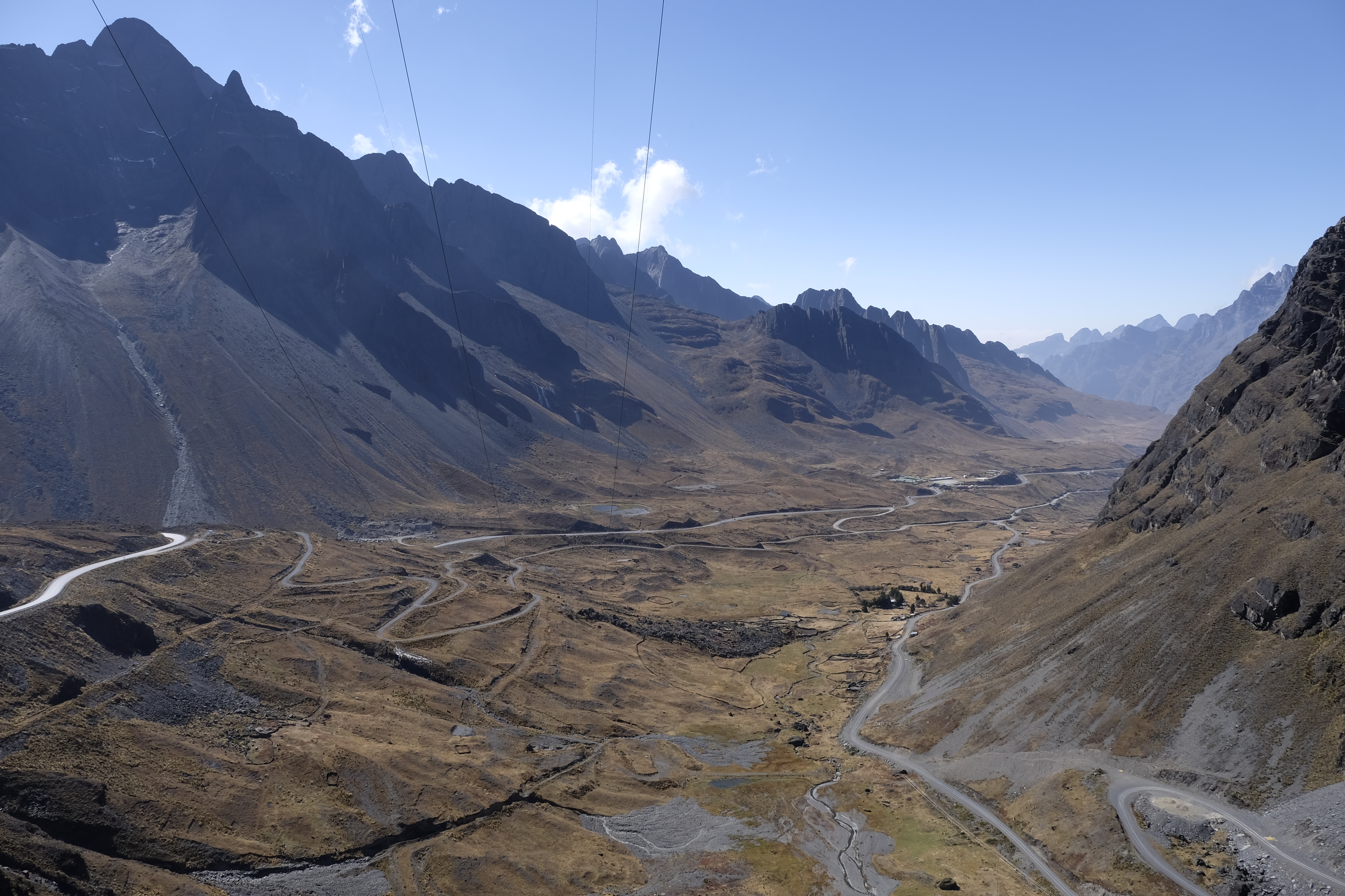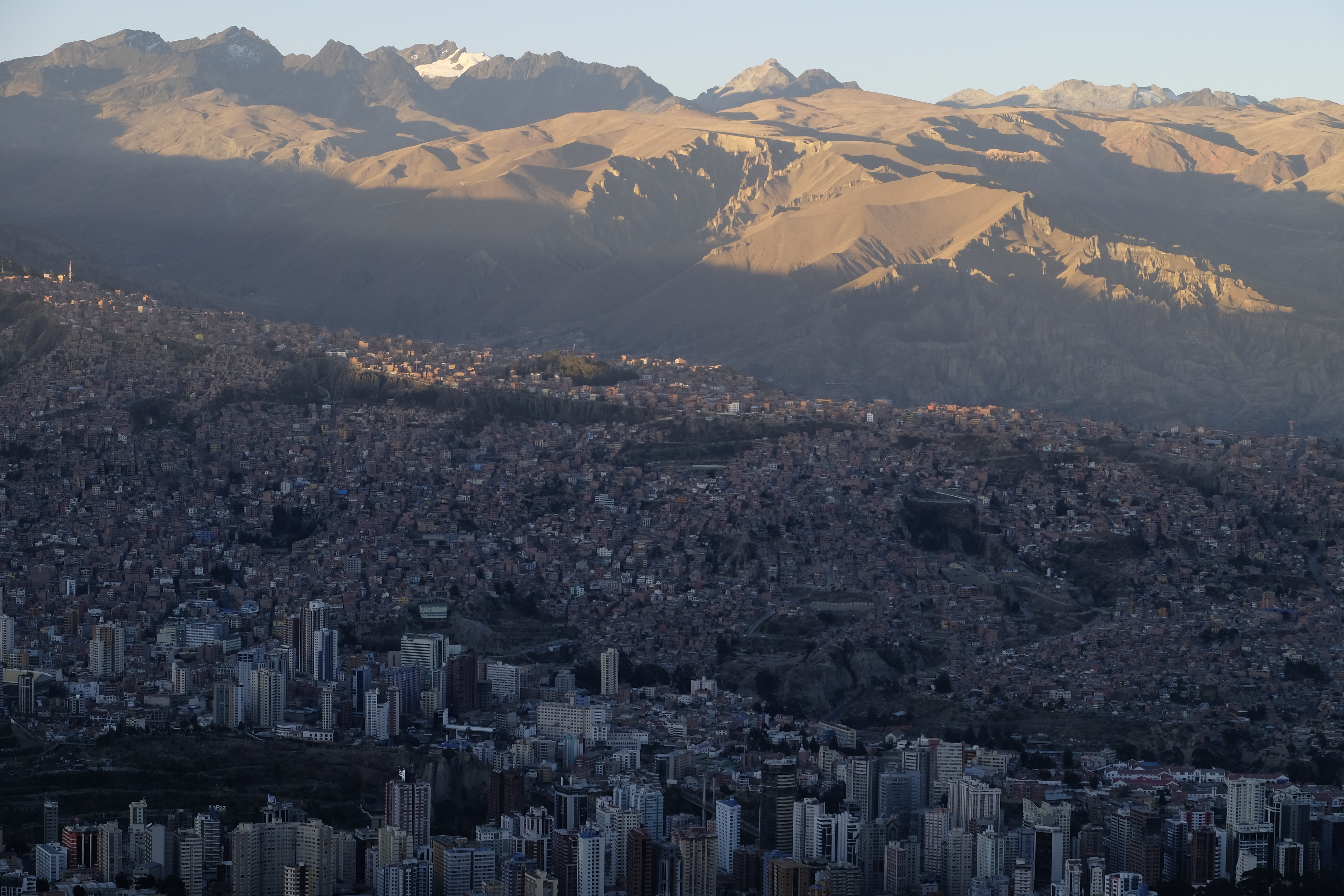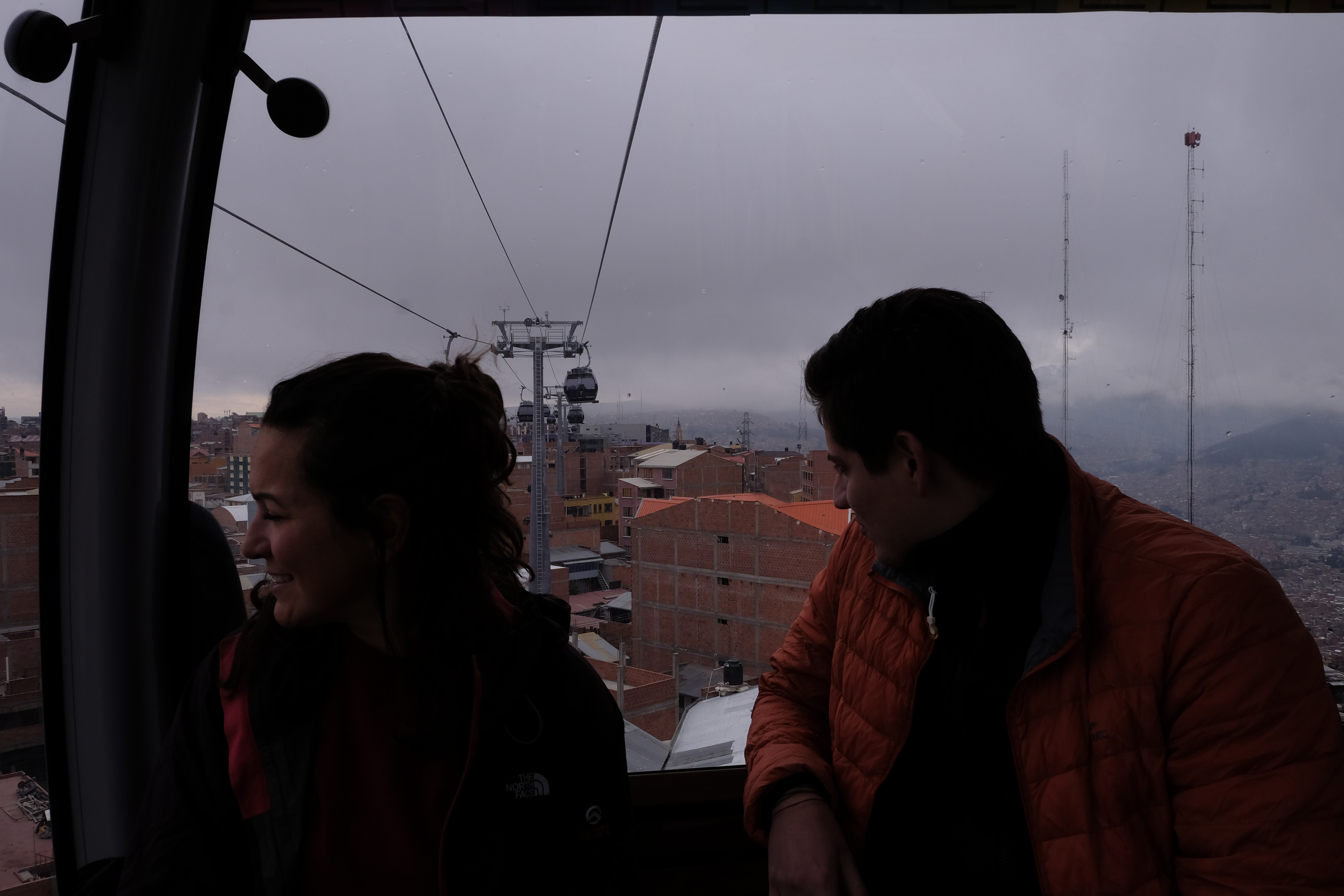 Nach 5 Monaten verlassen wir Chile. Wie gut uns dieses abwechslungsreiche Land mit den gastfreundlichen Leuten gefallen hat, konnte hoffentlich unseren Geschichten und Bilder entnommen werden. Trotzdem: Je näher wir Bolivien kommen, desto mehr freuen wir uns auf einen kulturellen Wechsel, auf farbige Buse, traditionelle Märkte, Dschungel und natürlich auf die Chance, auf einer Kaffeeplantage mitzuwirken. Doch bevor wir all dies spüren dürfen, spüren wir unsere Köpfe. Kaum in La Paz angekommen, brummen sie so richtig. Von 0 auf 3‘700hm (Caldera – La Paz) verkraften wir nicht ohne Weiteres. Es fehlt schlicht und einfach an Sauerstoff. Die ersten Treppen sind kaum zu meistern. Während Tagen begleitet uns leichtes Unwohlsein. Sogar der sonst so treue Begleiter «Appetit» vergeht uns kurzzeitig. Grund genug, diese in steile Hänge gebaute Stadt per «Teleféricos» zu erkunden. Ca. 8 Gondeln verbinden die verschiedenen Stadtteile, welche zwischen ca. 3‘200 und 4‘200 Höhenmeter liegen. In Schweizer-Alpen-Manier fliegen wir zwischen Hochhäuser, unter Brücken, über chaotische Strassen und unzählige Innenhöfe, über Fussballfelder, architektonisch eigenwillige, imposante Bauten (von Architekt Mamani) und endlose Märkte. Während Stunden beobachten wir das Treiben dieser bunten, lebendigen Stadt vom Himmel aus. Und gondelhafte Aussichten geniessen wir auch bei einem kurzen Ausflug in die Umgebung oder von unserer ersten Bleibe aus. Bastian, unser Schwedischer (super) Warmshower Host machts möglich. Danke nochmals für alles!