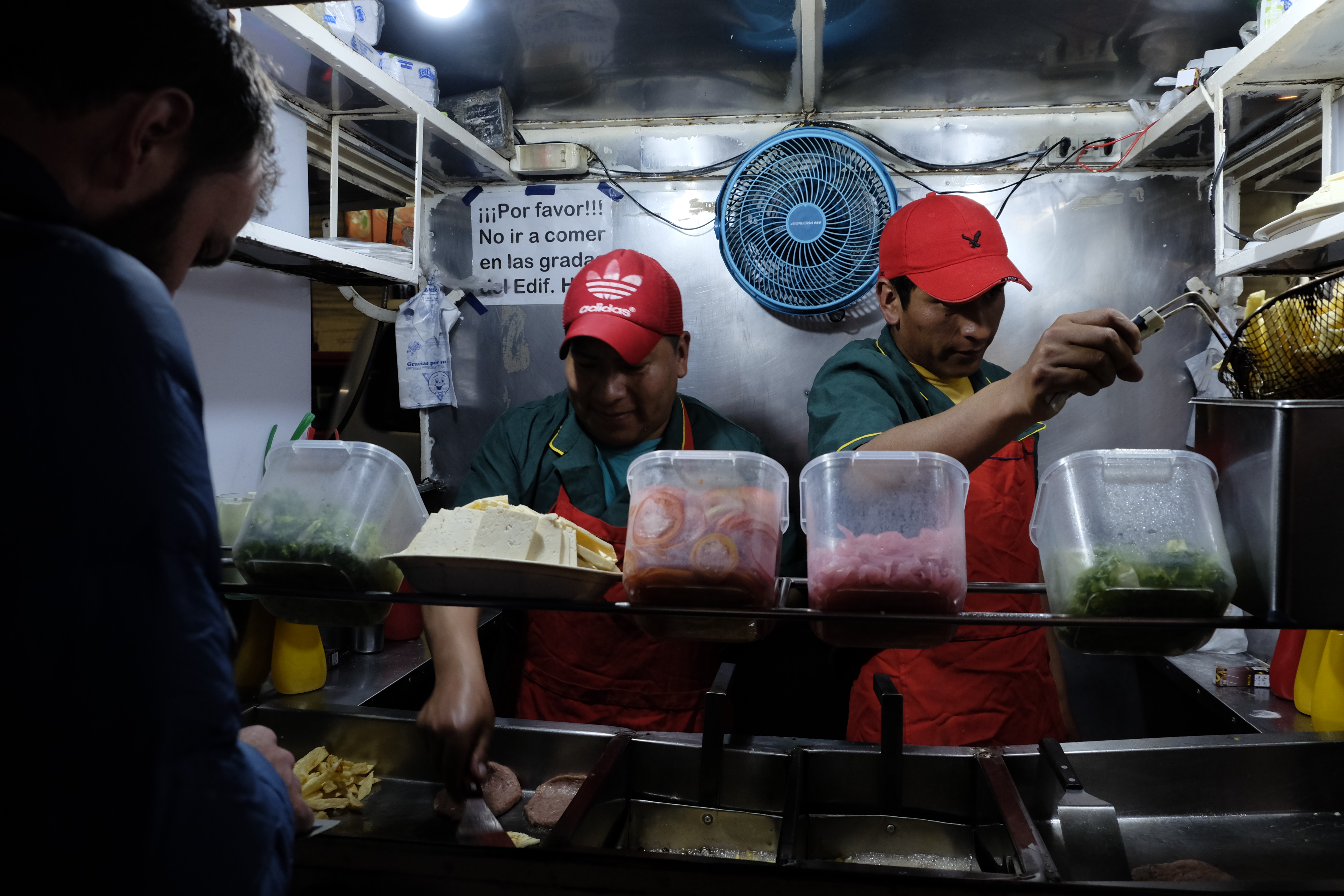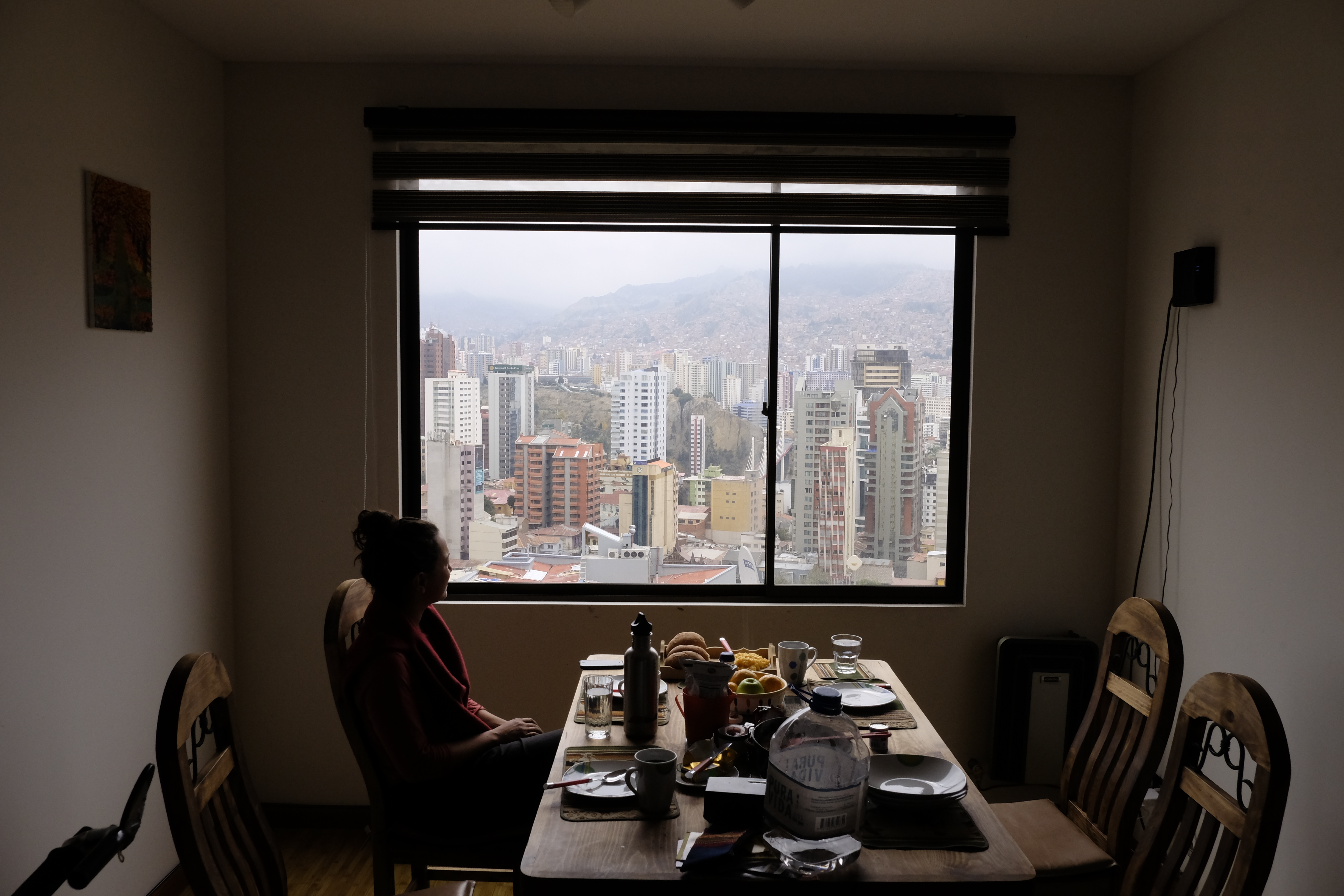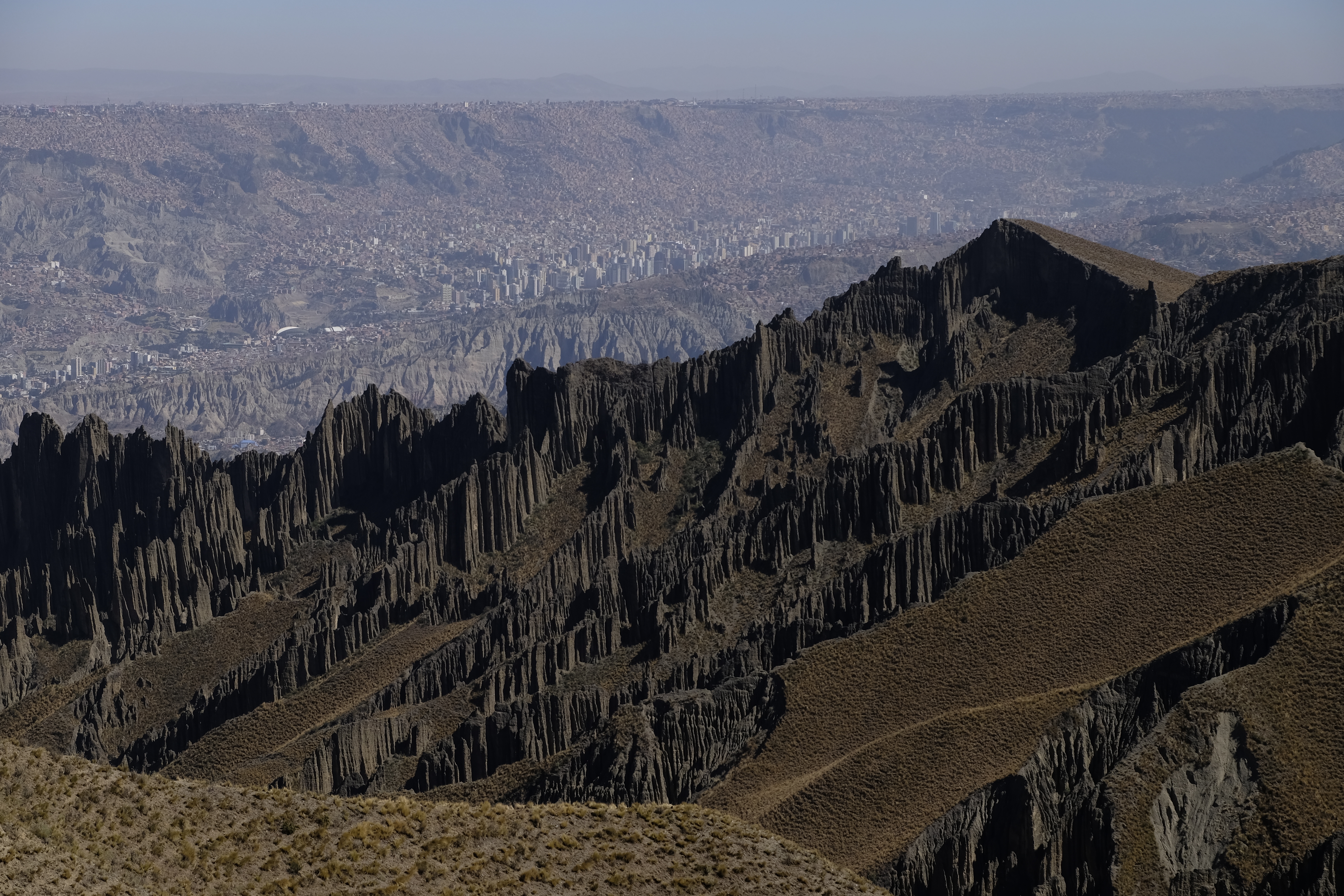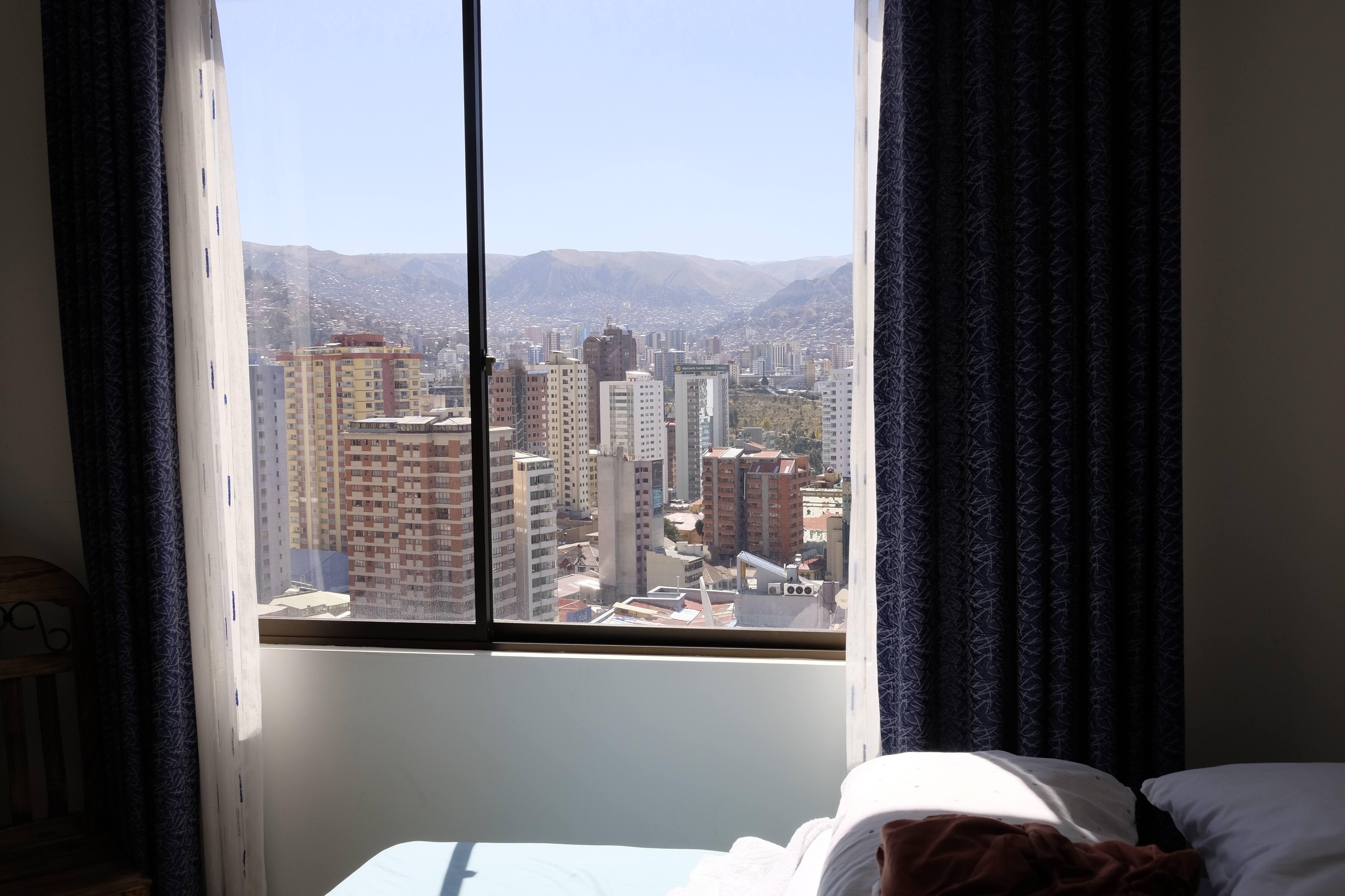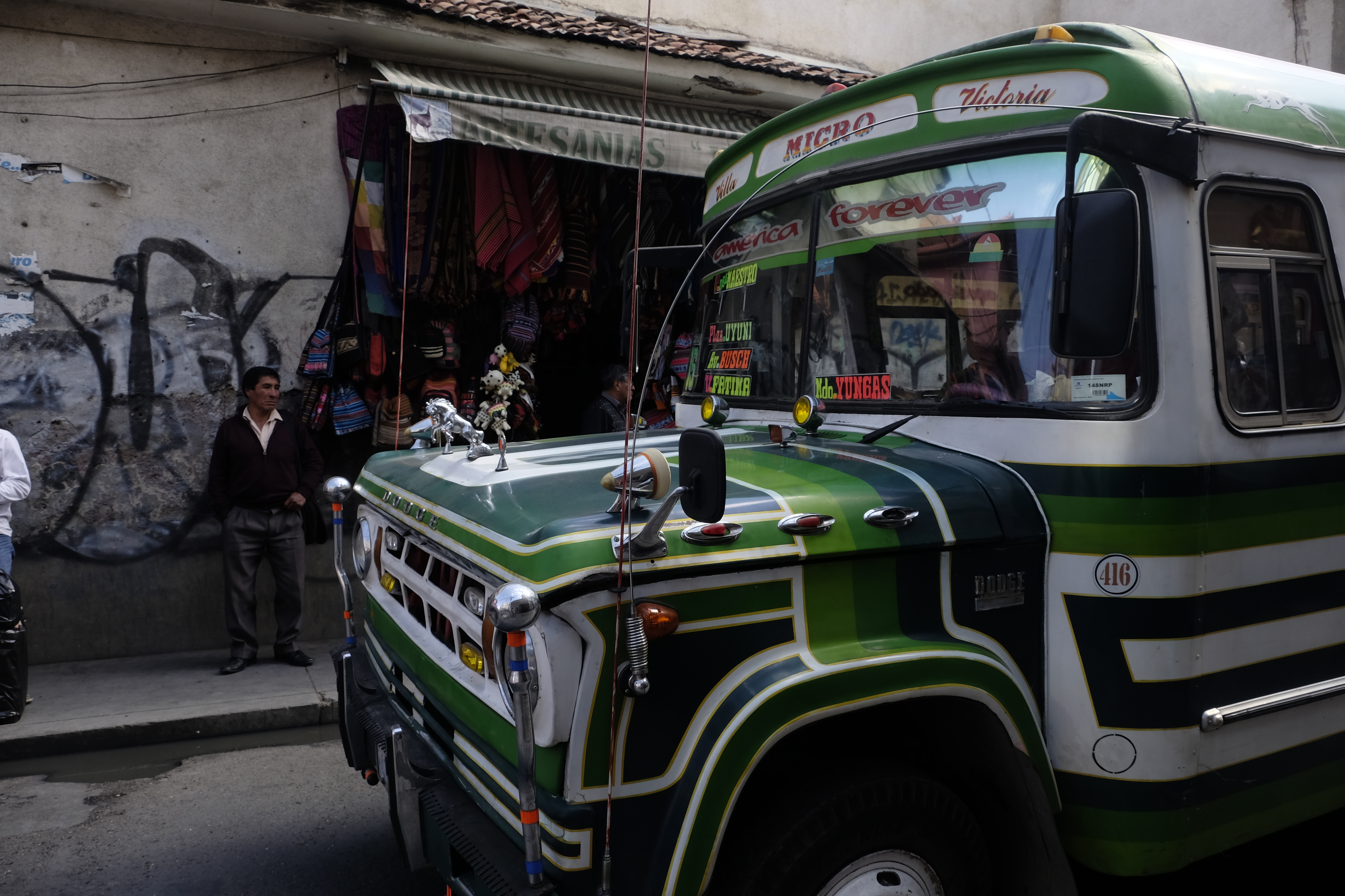 Nach 5 Monaten verlassen wir Chile. Wie gut uns dieses abwechslungsreiche Land mit den gastfreundlichen Leuten gefallen hat, konnte hoffentlich unseren Geschichten und Bilder entnommen werden. Trotzdem: Je näher wir Bolivien kommen, desto mehr freuen wir uns auf einen kulturellen Wechsel, auf farbige Buse, traditionelle Märkte, Dschungel und natürlich auf die Chance, auf einer Kaffeeplantage mitzuwirken. Doch bevor wir all dies spüren dürfen, spüren wir unsere Köpfe. Kaum in La Paz angekommen, brummen sie so richtig. Von 0 auf 3‘700hm (Caldera – La Paz) verkraften wir nicht ohne Weiteres. Es fehlt schlicht und einfach an Sauerstoff. Die ersten Treppen sind kaum zu meistern. Während Tagen begleitet uns leichtes Unwohlsein. Sogar der sonst so treue Begleiter «Appetit» vergeht uns kurzzeitig. Grund genug, diese in steile Hänge gebaute Stadt per «Teleféricos» zu erkunden. Ca. 8 Gondeln verbinden die verschiedenen Stadtteile, welche zwischen ca. 3‘200 und 4‘200 Höhenmeter liegen. In Schweizer-Alpen-Manier fliegen wir zwischen Hochhäuser, unter Brücken, über chaotische Strassen und unzählige Innenhöfe, über Fussballfelder, architektonisch eigenwillige, imposante Bauten (von Architekt Mamani) und endlose Märkte. Während Stunden beobachten wir das Treiben dieser bunten, lebendigen Stadt vom Himmel aus. Und gondelhafte Aussichten geniessen wir auch bei einem kurzen Ausflug in die Umgebung oder von unserer ersten Bleibe aus. Bastian, unser Schwedischer (super) Warmshower Host machts möglich. Danke nochmals für alles!