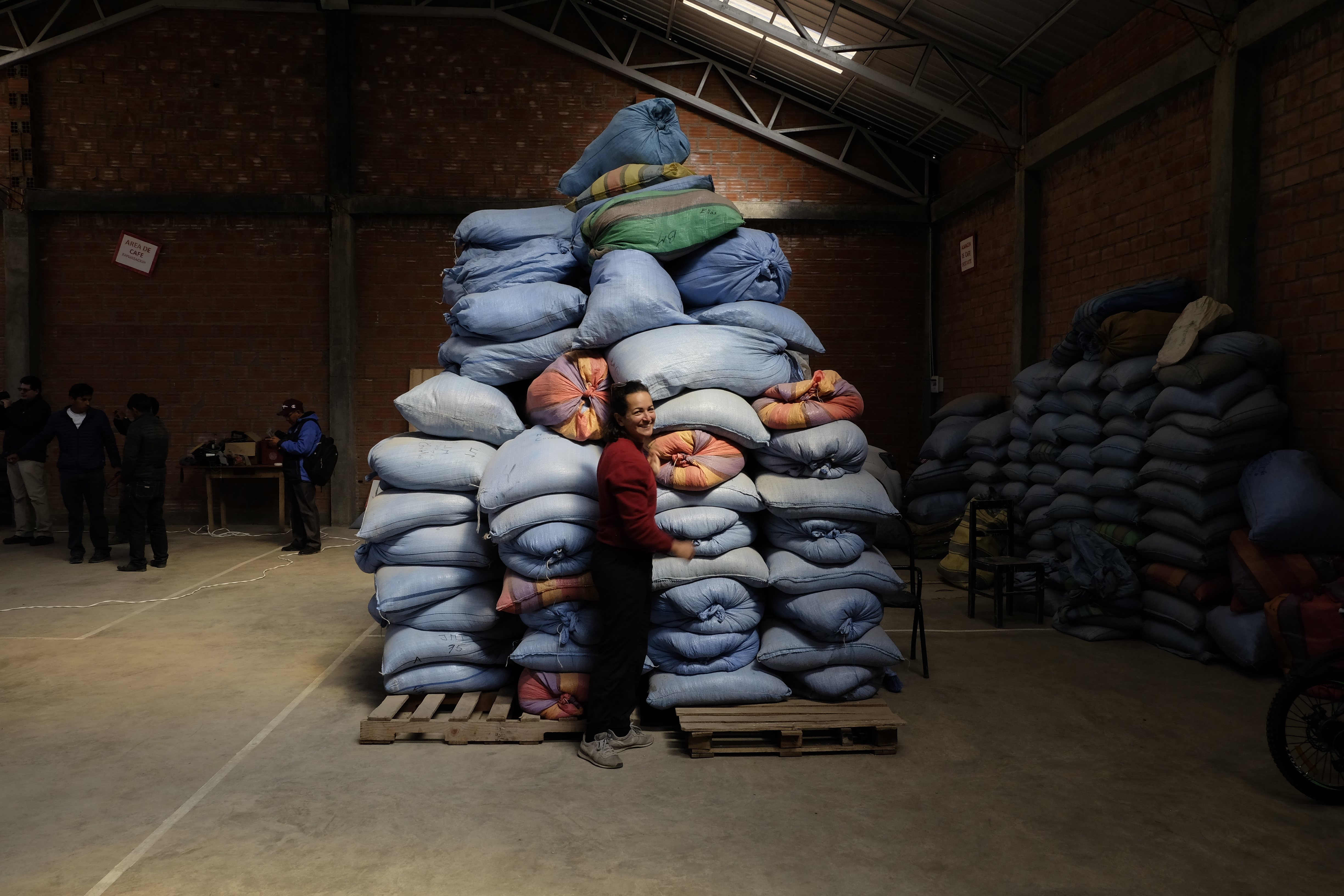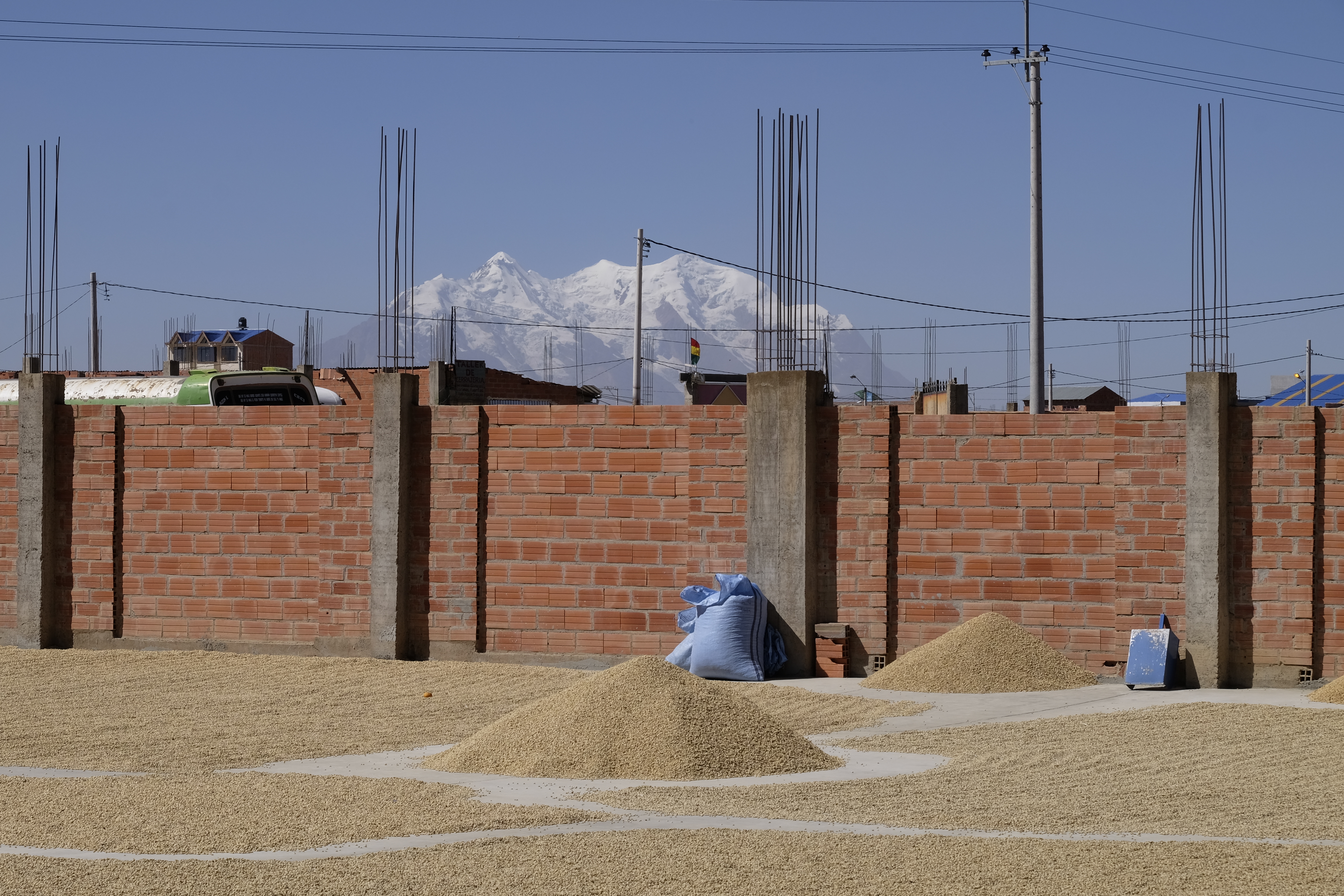 Weiteres Highlight: Das erste Treffen mit Elias, dem Manager der Cooperativa Bio Arabica. Bevor wir auf deren Plantagen in Caranavi Beeren pfücken werden, dürfen wir die soeben fertiggestellte, kleine Fabrik in „El Alto“ besuchen. Uns wird erklärt, wie der Kaffee gleichmässig getrocknet, gereinigt u sortiert wird (maschinell und manuell), bevor er nach einer Qualitätskontrolle definitiv auf den Weg nach Bern (und hoffentlich in eure Tassen) darf. Und weil an diesem Tag ebenfalls die Einweihung ist, dürfen wir im bolivianischen Staatsfernsehen ein paar Sätzchen zum Grund unseres Besuchs stageln. Bueno…si…somos Ariane y Samuel…