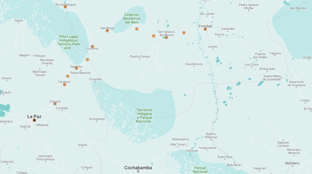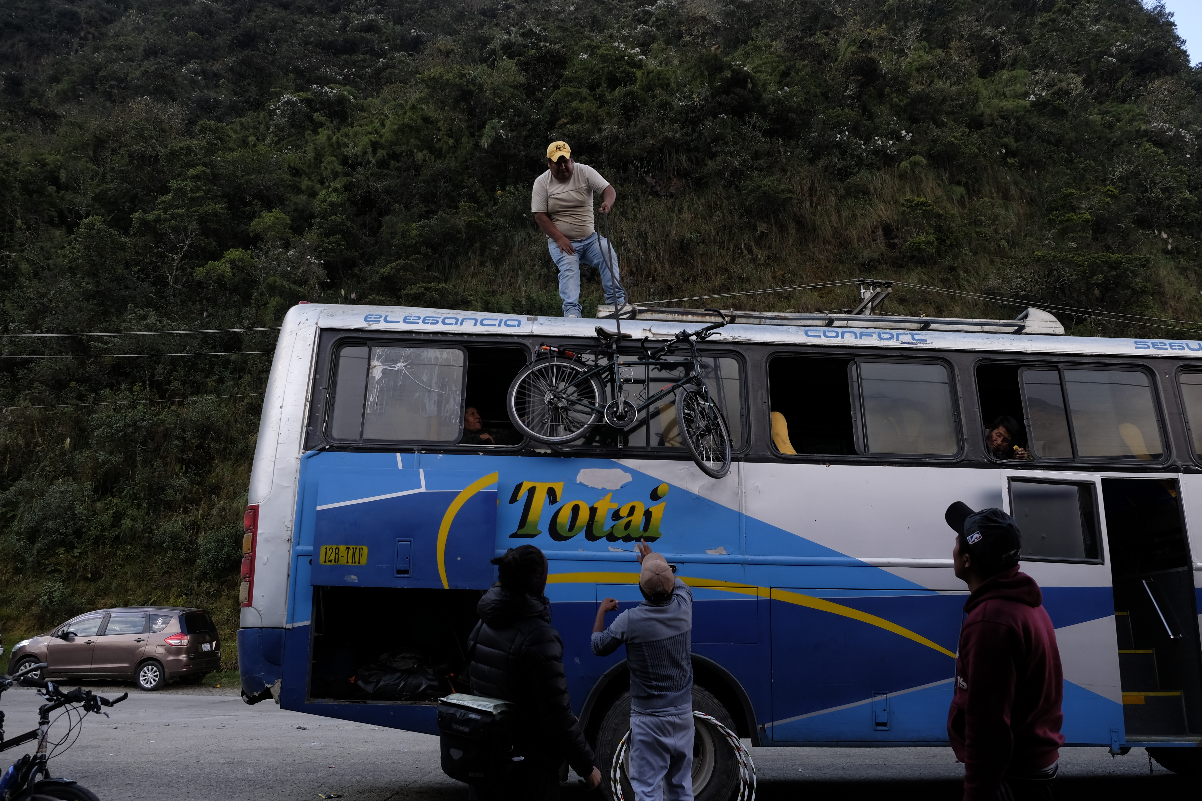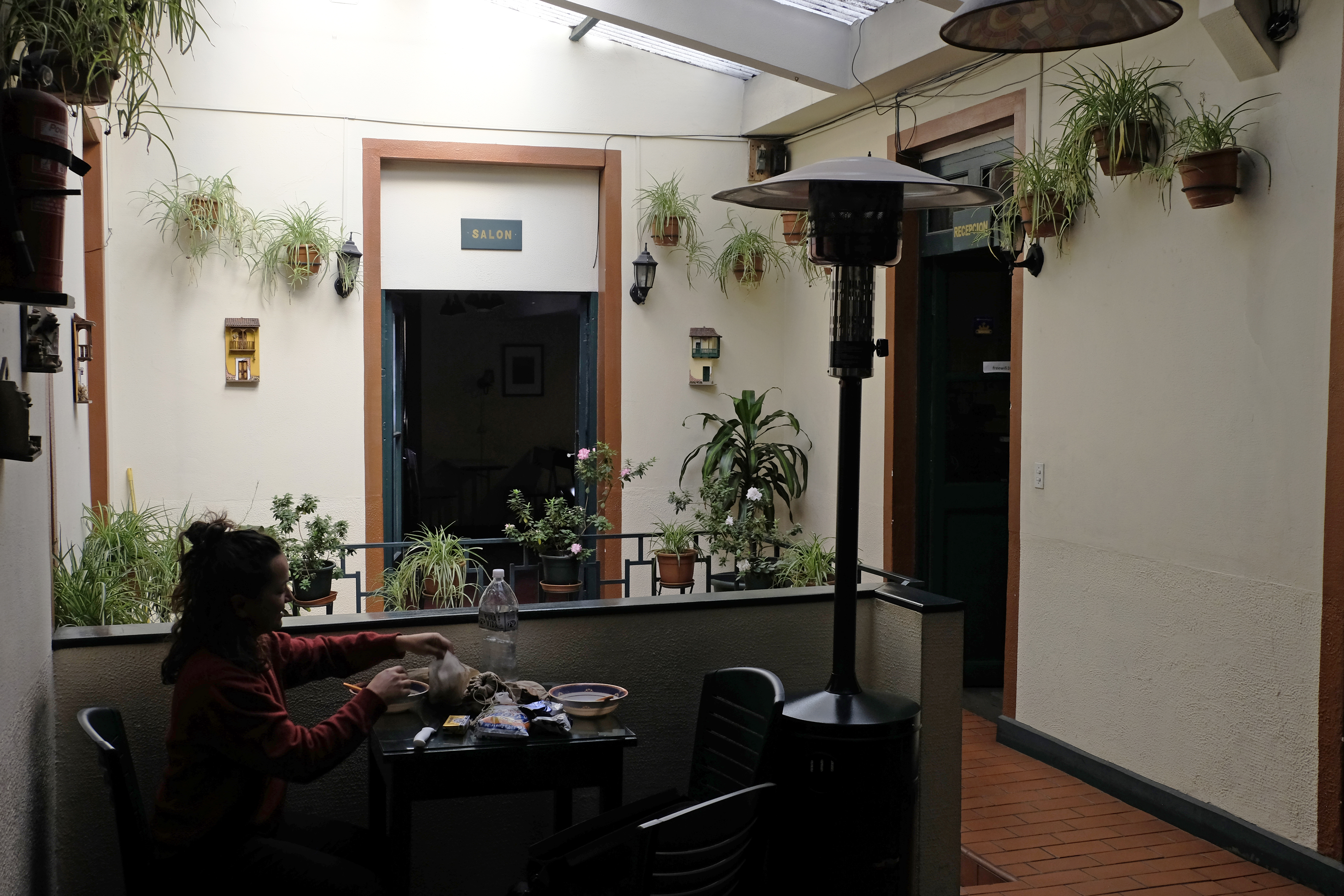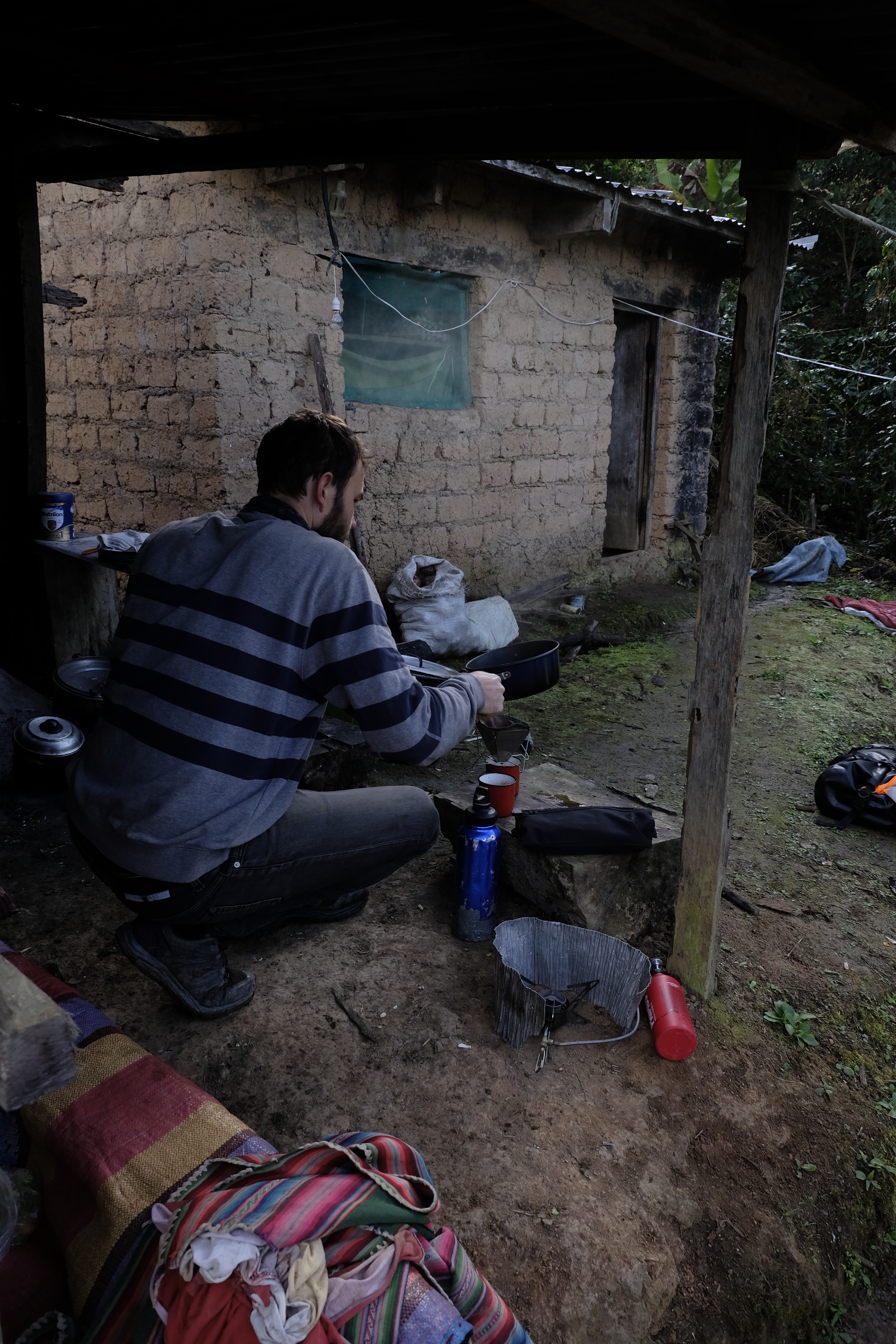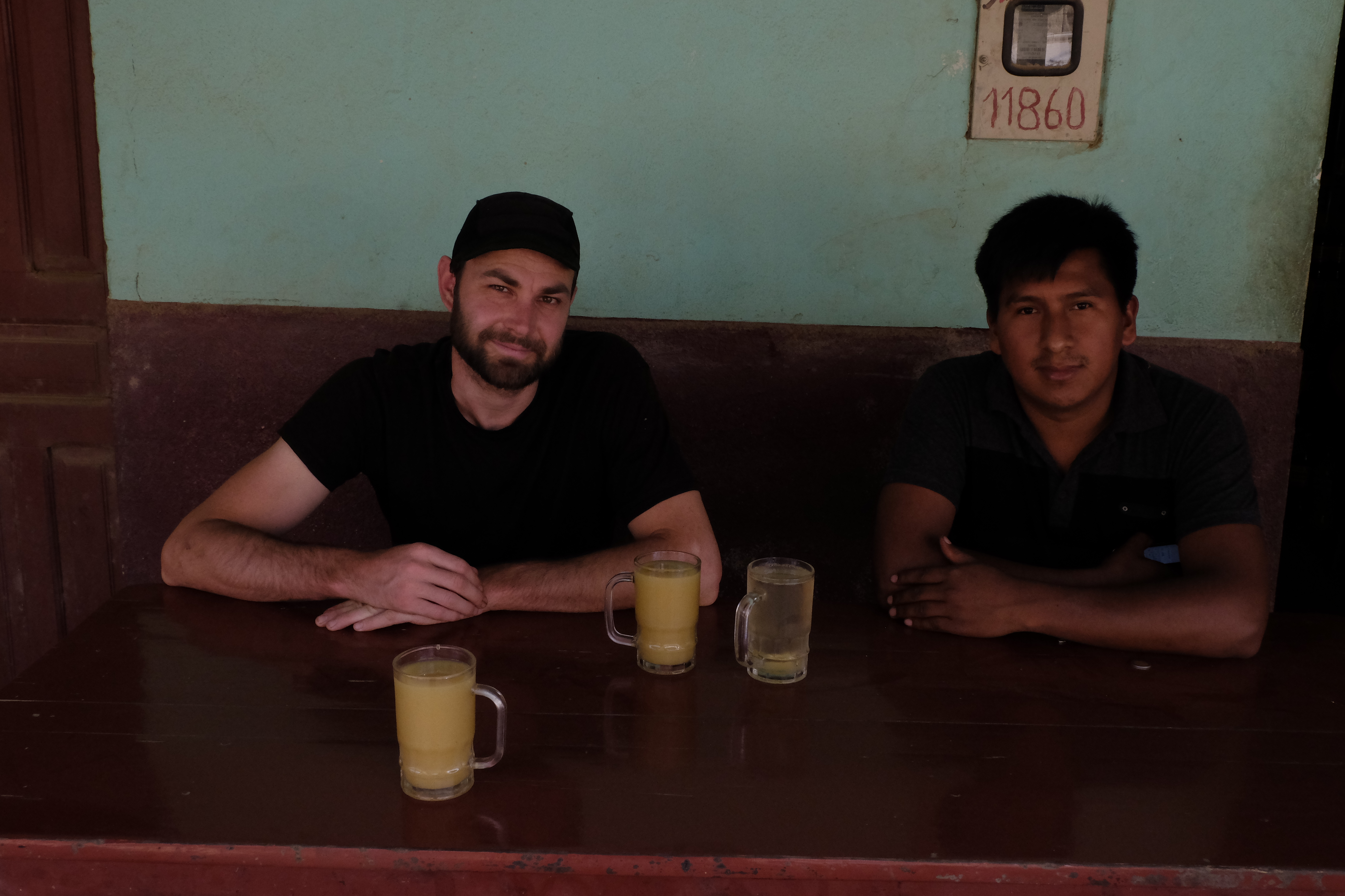 Weil Bastian beruflich weiterzieht, ziehen wir ins Casa de Ciclista um. Unser Zimmer verliert dramatisch an Standard, aber spannende Leute treffen wir auch hier. Wir werden überzeugt, die Rute La Paz – Caranavi mit dem Velo zurückzulegen. Auf dieser Strecke liege die berühmte «Carretera de la Muerte». Dank einer neuen Umfahrtstrasse jetzt eher turistisch als gefährlich. Landschaftlich jedoch traumhaft. Heute können wir schreiben: wir habens versucht. Weil Wahljahr wird protestiert. Auf unserer Strecke mit Strassenblockaden (Coca-Bauern fordern die Legalisierung weiterer Anbaugebiete). Unser Veloeinstieg in Bolivien scheitert daher kläglich nach ein paar Kilometern. Aus Sicherheitsgründen wechseln wir in einen Bus (die Dynamitsprengungen schüchtern uns doch etwas ein). Sobald die Polizei die Strasse freigibt, zweifeln wir an unserer Entscheidung. Passstrasse, Nebel, keine Leitplanke. Egal, es wird gerast und überholt als gäbe es kein Morgen. Doch weit kommen wir auch im Bus nicht. Eine Sperre kommt scheinbar selten alleine. Es steht eine ungemütliche Nacht im Bus, einen Tag wartend am Strassenrand und eine weitere (diesmal erholsame) Nacht in einem Hotel in Coroico bevor. Als wir mit zwei Tagen Verspätung in Caranavi eintreffen, sind wir erleichtert. Die Carretera de la Muerte haben wir zwar verpasst. Dafür sitzen wir nun in einem gemütlichen Hotel mit schönen Innenhof (hier verbringen wir auch das Wochenende zwischen unseren Arbeitsaufenthalten).