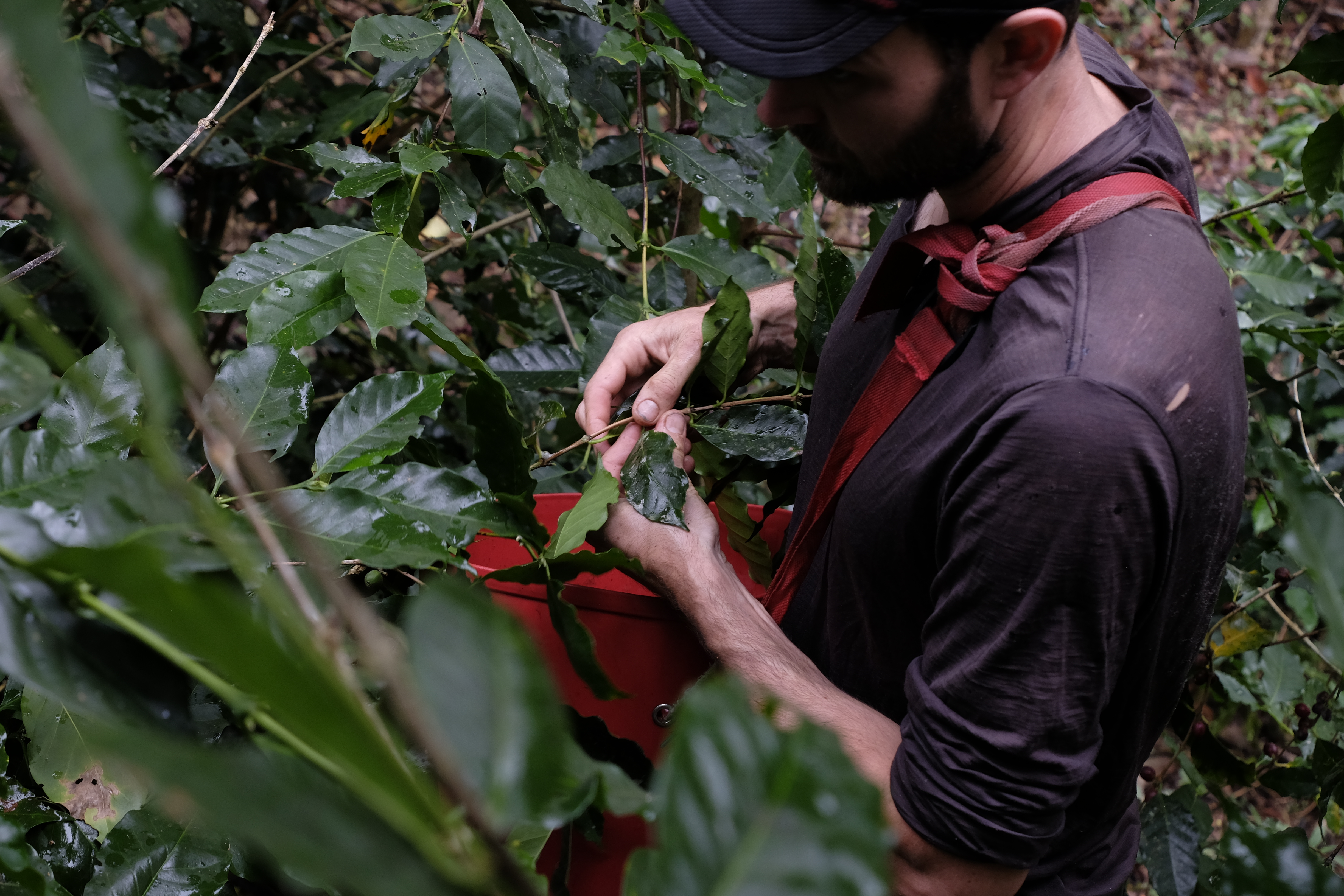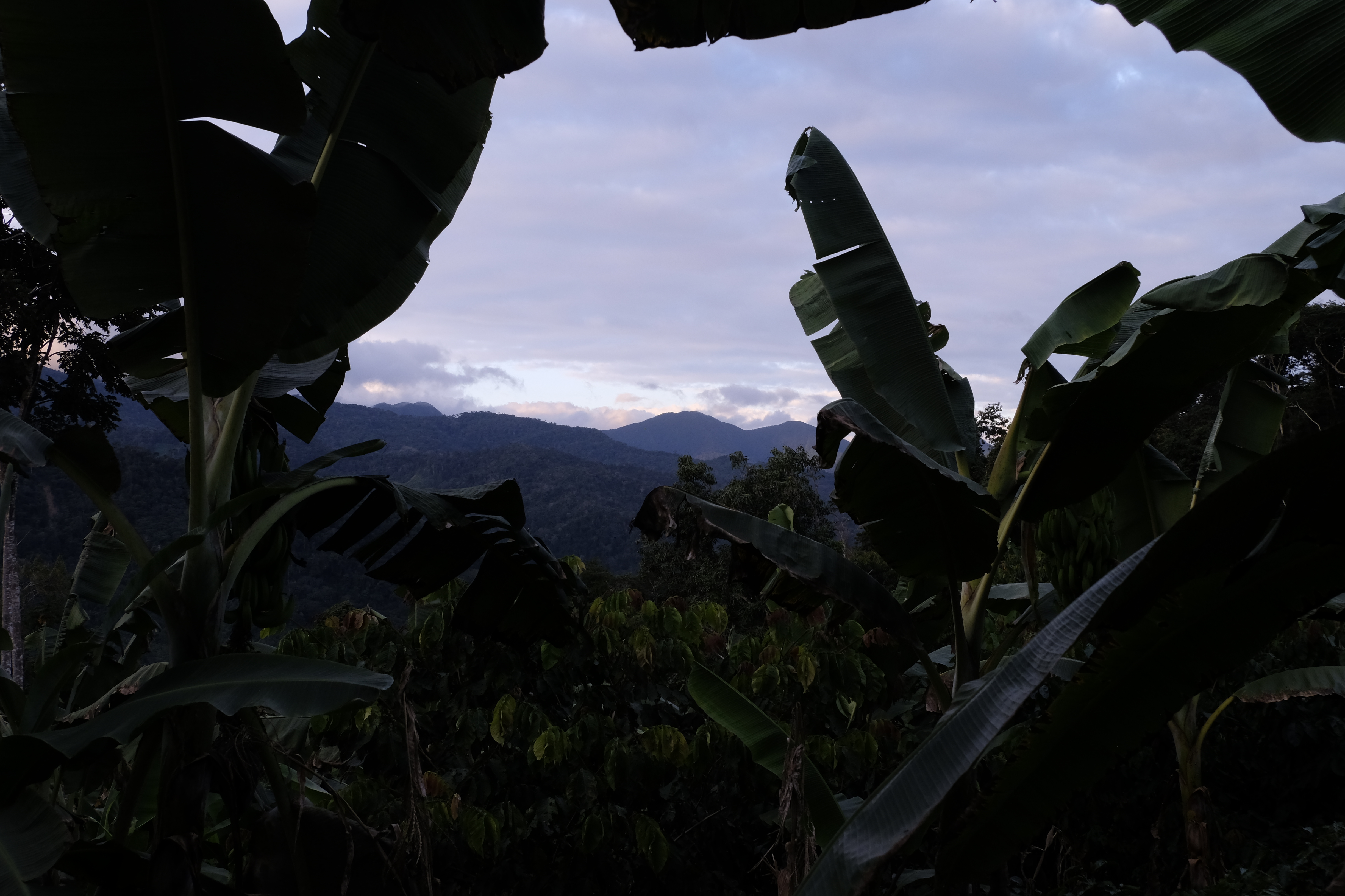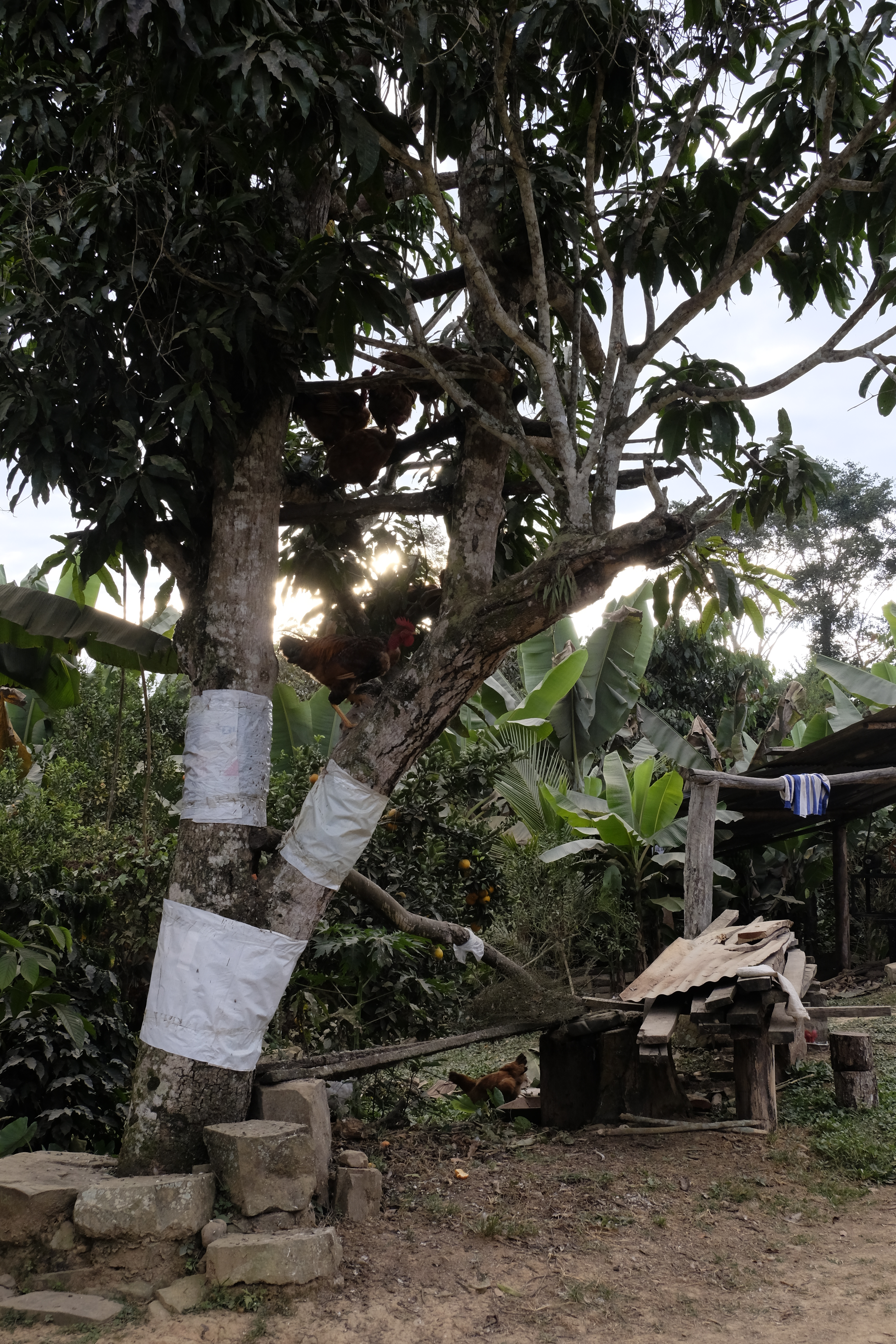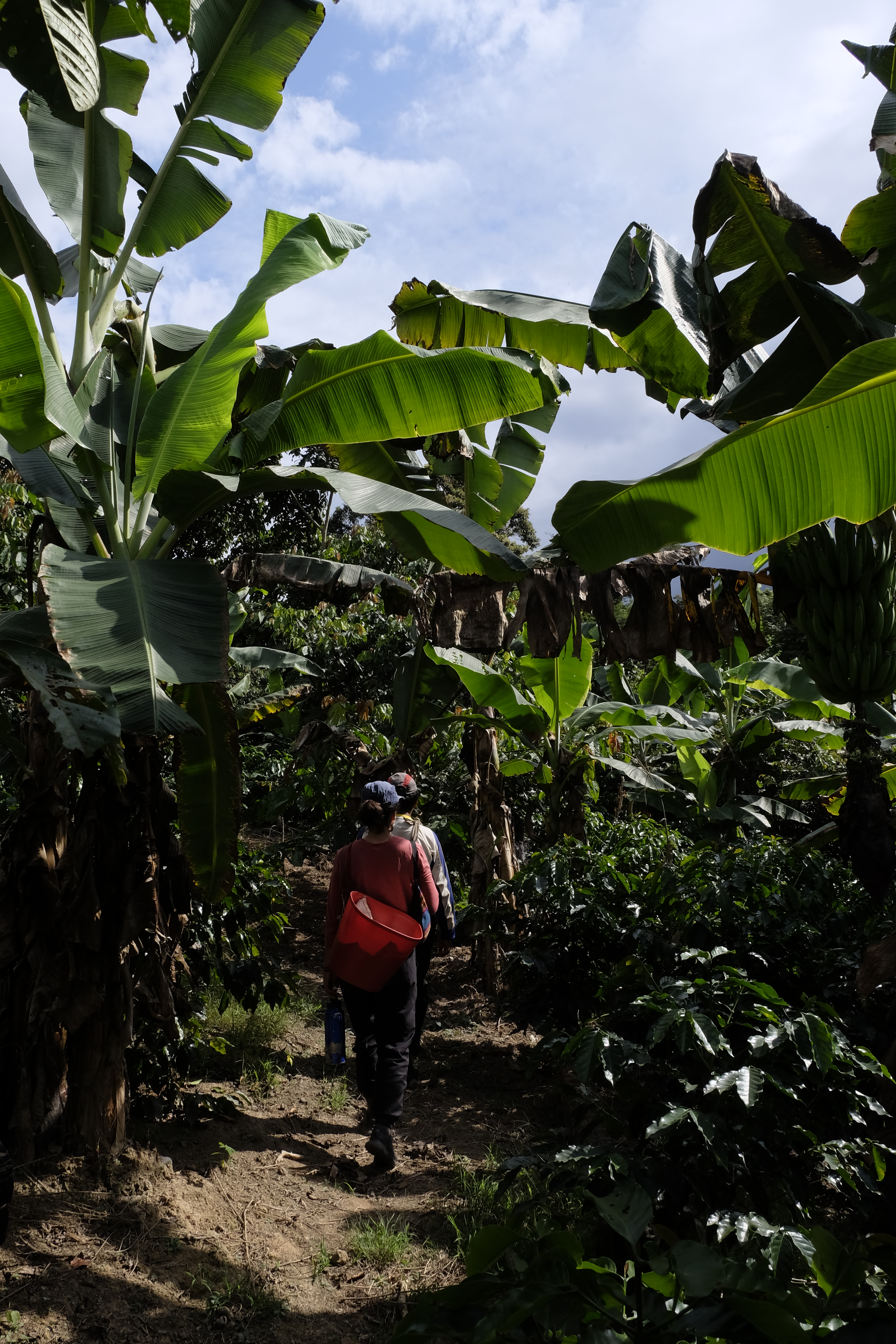 Im Schatten grosser Bäume wächst der Kaffee zwischen Mango, Papaya, Avocado, Mandarine, Orange, Bananen und Co. Leider am liebsten in unglaublich steilen Hängen. Wir schwingen wir uns tarzanhaft von Kaffeestrauch zu Kaffeestrauch. Pflücken in Yoga ähnlichen Positionen die reifen und überreifen Beeren. Grüne Beeren, Spinnen, Raupen, Käfer und (ja Ariane) Skorpione sollten an der Pflanze bleiben. Mit vollen Säcken (bei uns eher halbvoll – gerade schnelle Pflücker sind wir nicht) gehts bei Sonnenuntergang zurück zum Haus. Es wiederholt sich der Vortag.