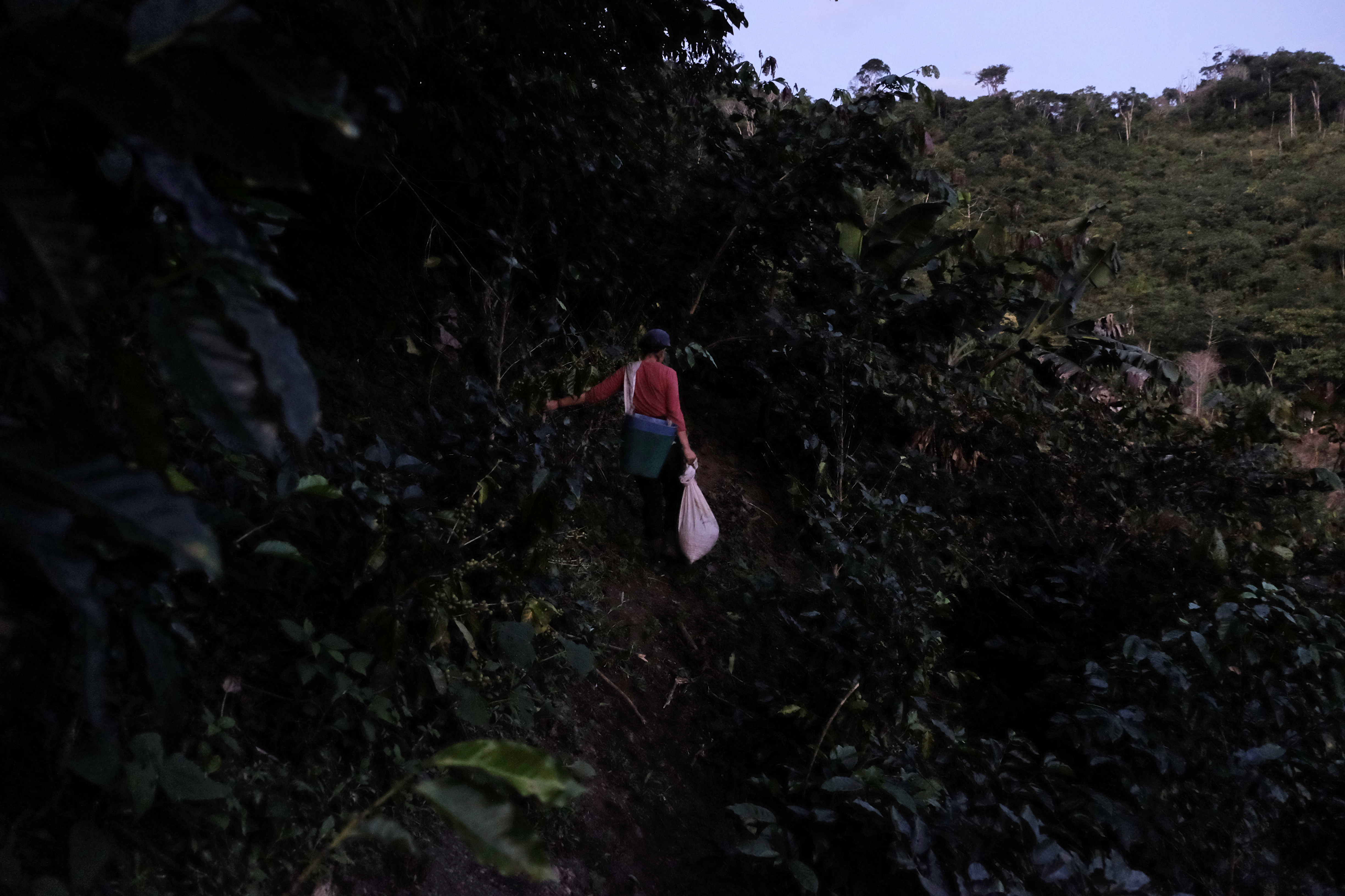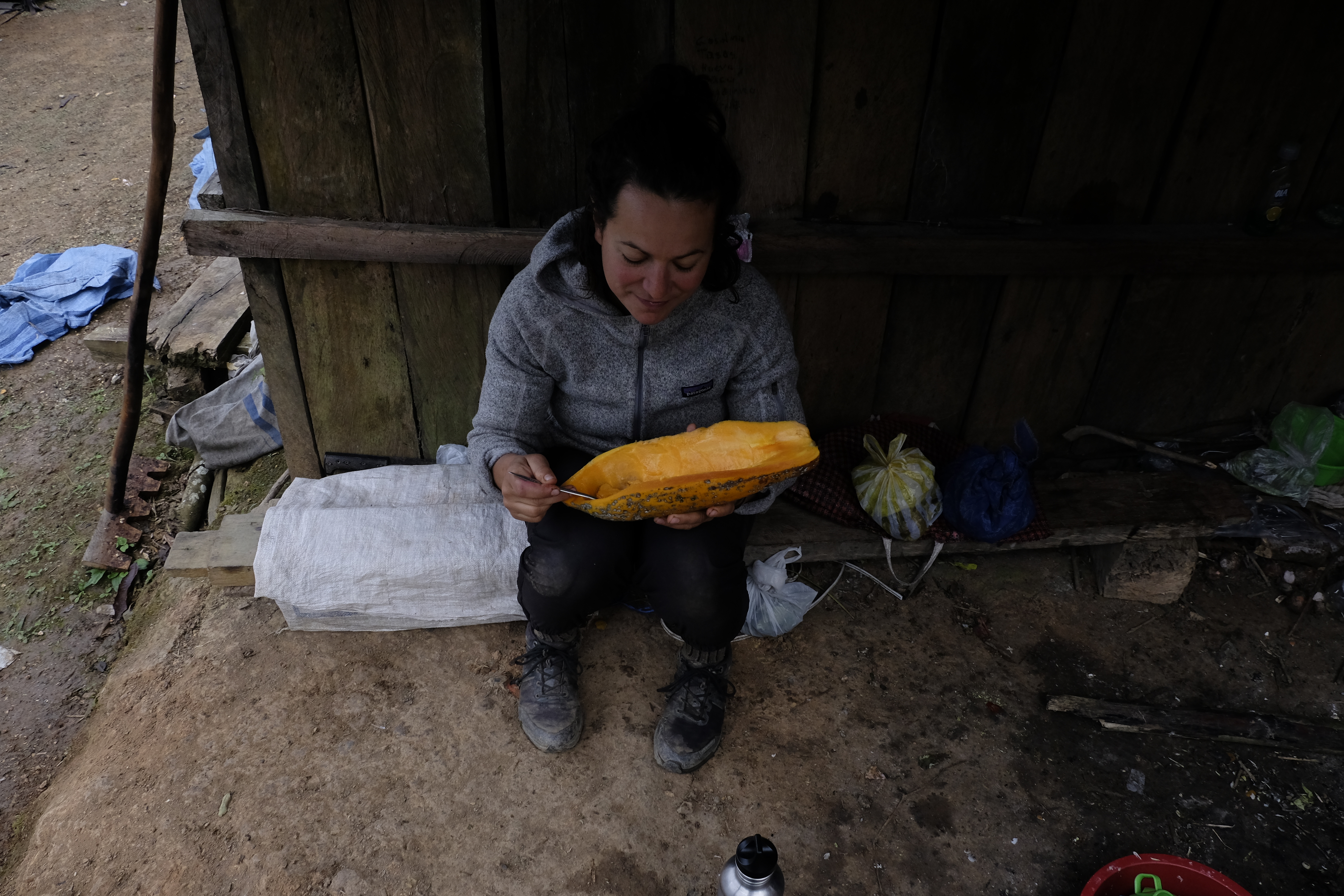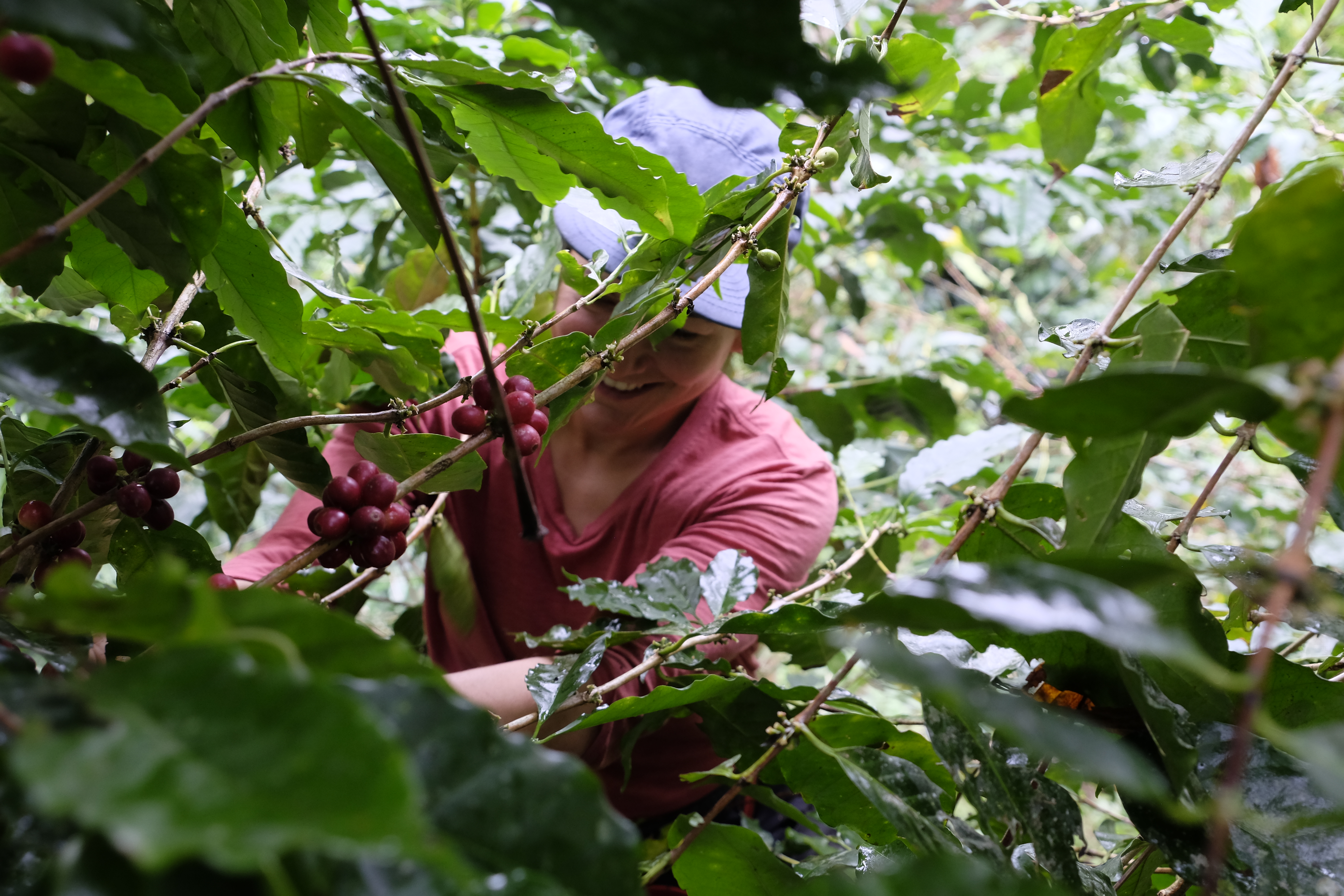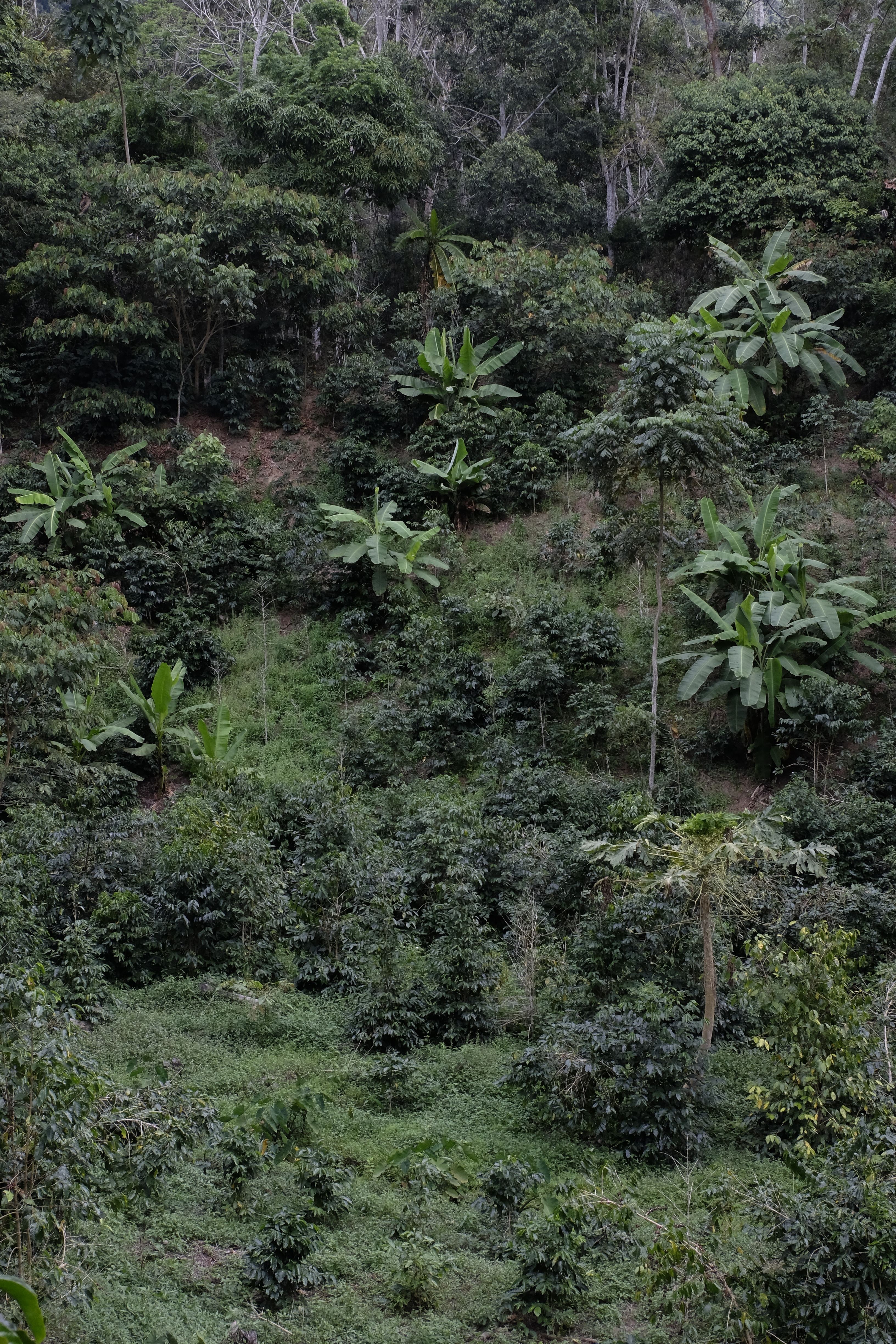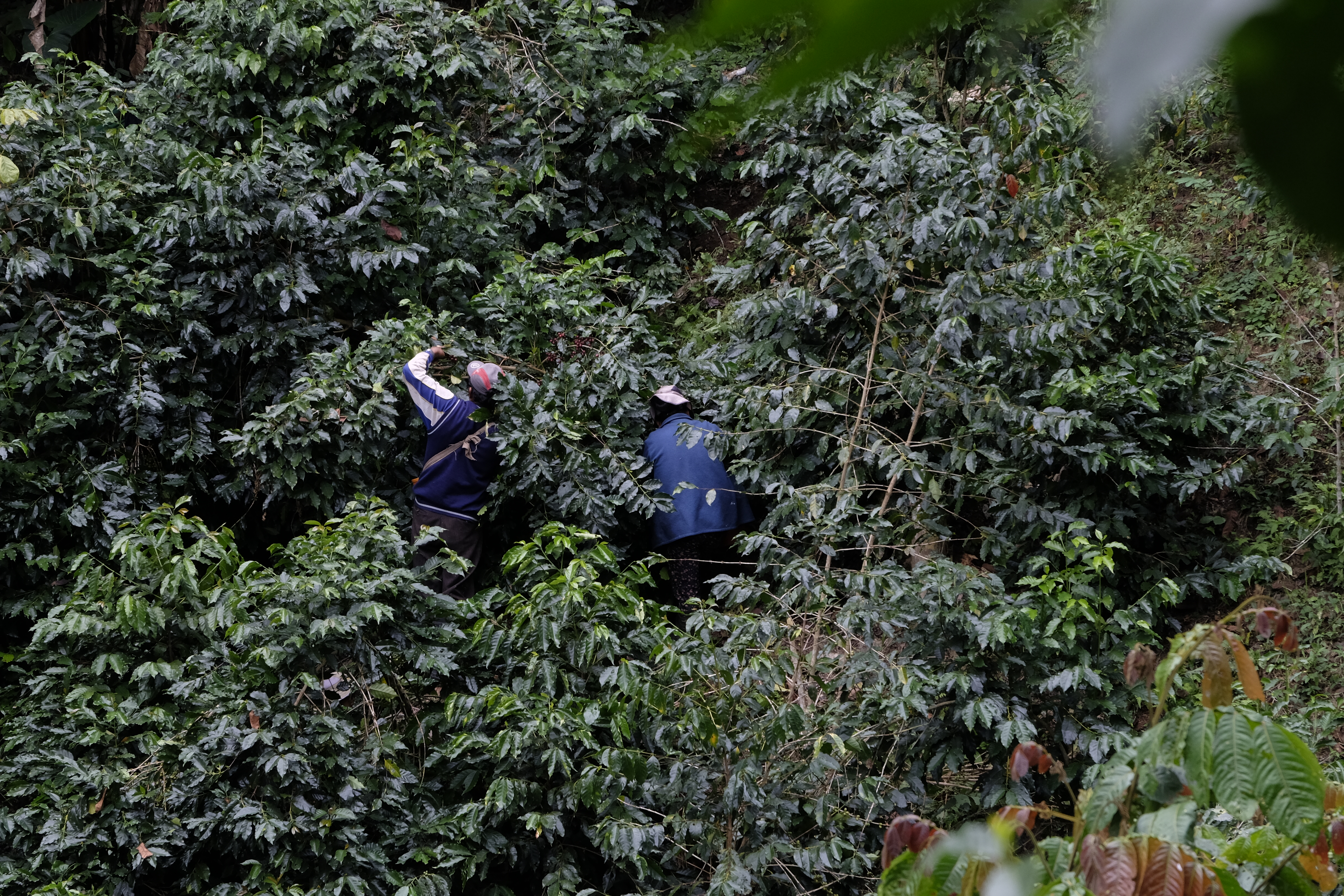 Im Schatten grosser Bäume wächst der Kaffee zwischen Mango, Papaya, Avocado, Mandarine, Orange, Bananen und Co. Leider am liebsten in unglaublich steilen Hängen. Wir schwingen wir uns tarzanhaft von Kaffeestrauch zu Kaffeestrauch. Pflücken in Yoga ähnlichen Positionen die reifen und überreifen Beeren. Grüne Beeren, Spinnen, Raupen, Käfer und (ja Ariane) Skorpione sollten an der Pflanze bleiben. Mit vollen Säcken (bei uns eher halbvoll – gerade schnelle Pflücker sind wir nicht) gehts bei Sonnenuntergang zurück zum Haus. Es wiederholt sich der Vortag.