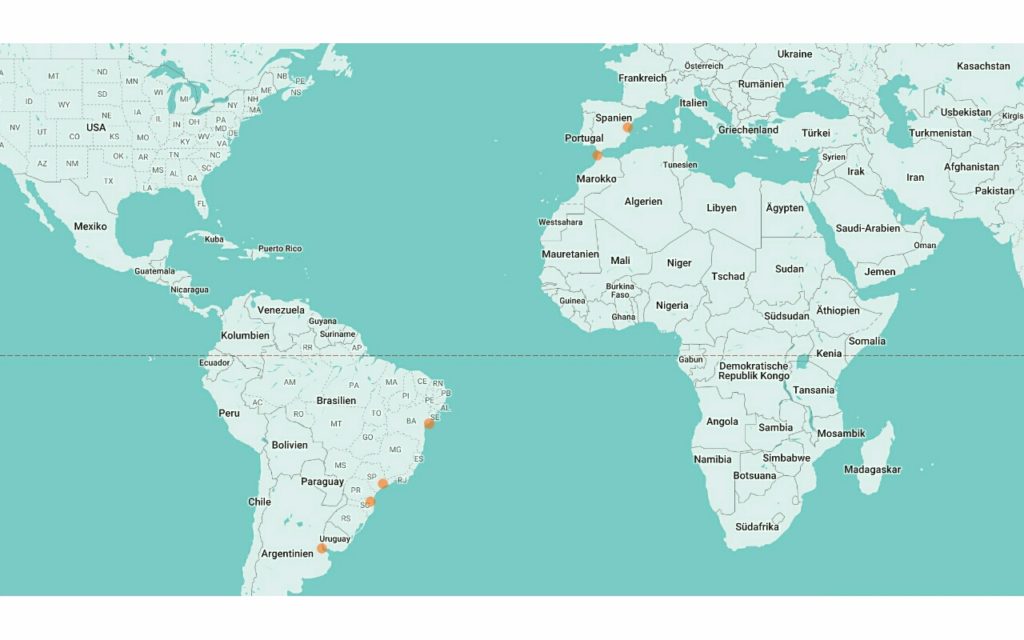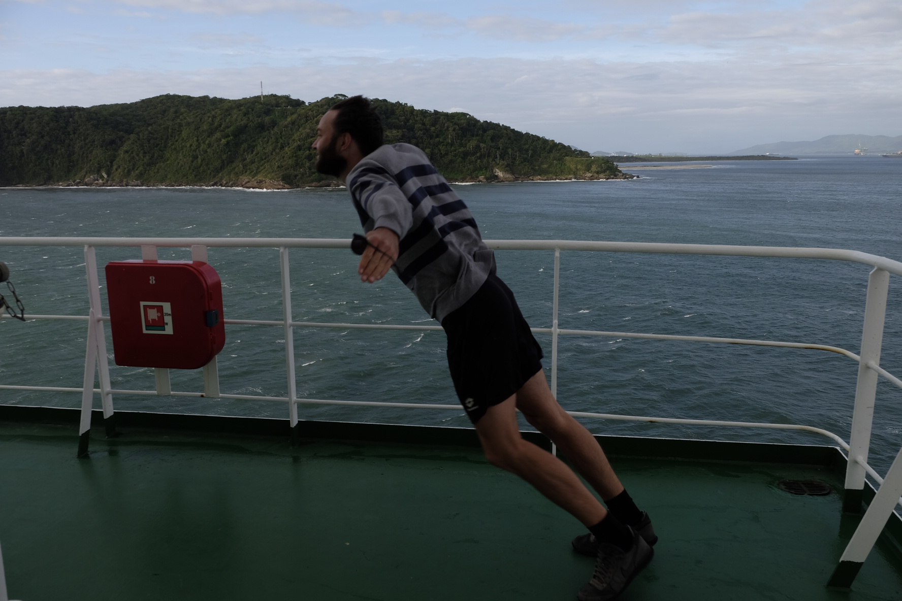 Ari hats als erstes gesehen. Das Land. Brasilien. Nach Tagen auf dem weiten Meer (siehe Tage im Blauen). Nach viel Zeit zum Fotografieren (wir haben 10x mehr Bilder als von der ganzen Zeit zuvor), nach Barbecue unter Rettungsboot, kurzen Plauderstunden im Cockpit mit super Crew und – uffff – wenig Schaukeln. Nun reiht sich Frachter an Frachter. Dann Hochhaus an Hochhaus. Darunter Strandleben mit Bars. Daneben teils armselige Baracken. Weiter hinten saftig grüner Regenwald. Gegensätze wie sie leider zu erwarten waren. Wieder entladen und beladen, genau wie zuvor in Europa. Eine ewige Schlaufe. Was? Wir wissen es nicht. Einmal sind wir es. Wir dürfen uns die Füsse in Itapoa vertreten. Dafür gibts einen Stempel in den Pass, judihuiiii.