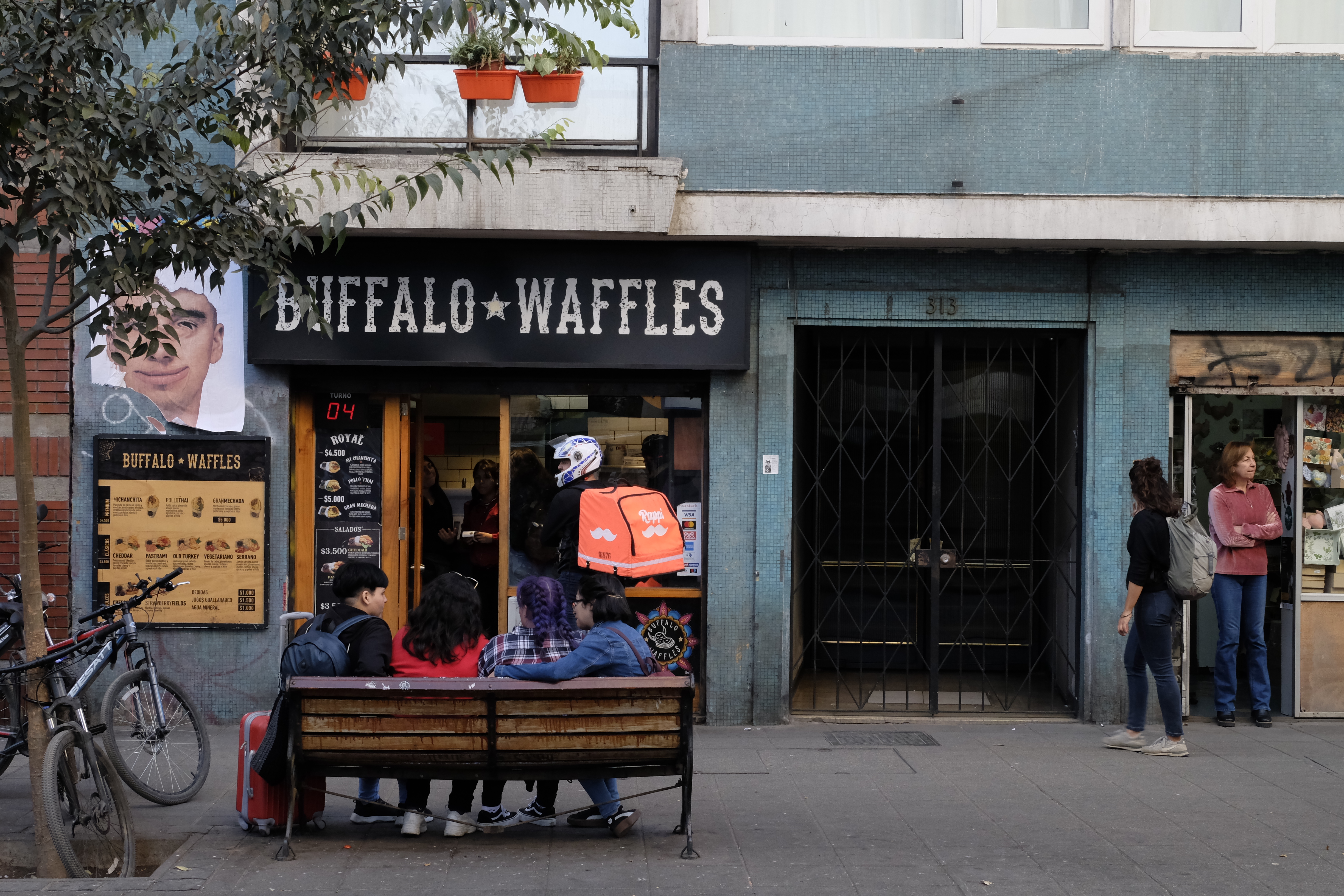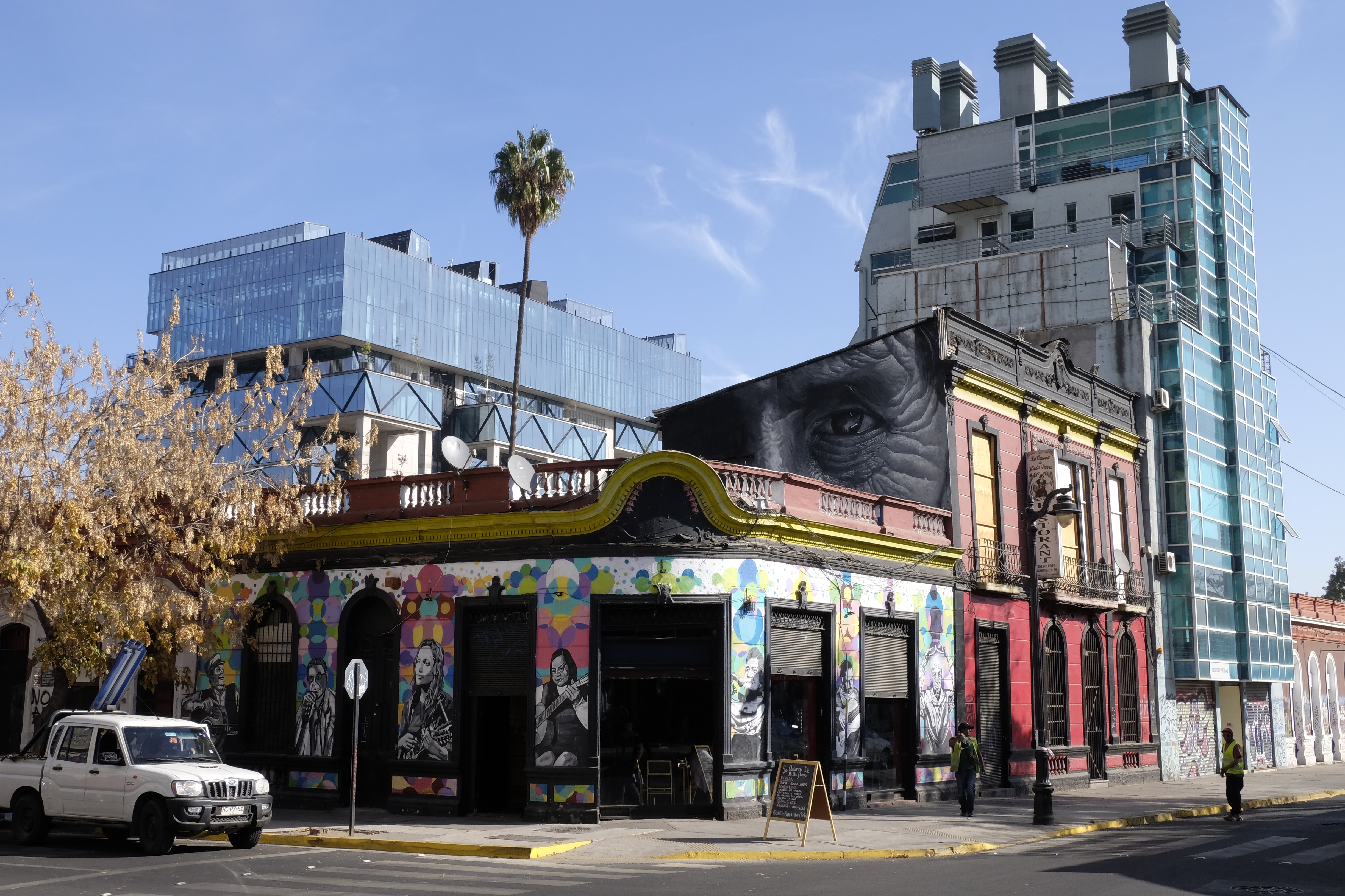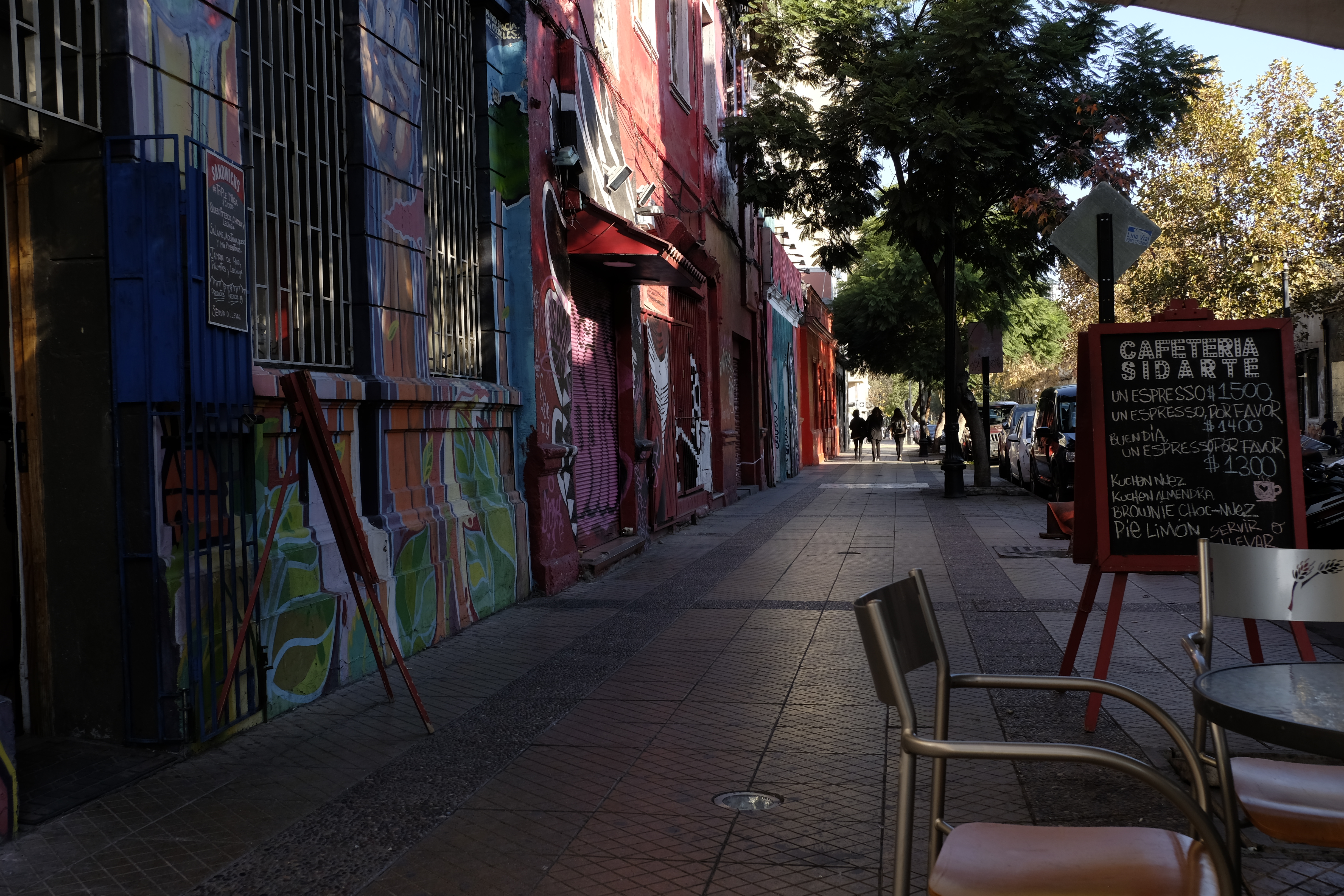 Die schiere Unendlichkeit dieser 7.5 mio Metropole schnell vergessen, machen wir uns am ersten Tag zu Fuss auf den Weg. Mit schmerzenden Beinen erreichen wir, was wir eigentlich durchschlendern wollten: das gemütliche Barrio Italia. Eine ausgedehnte Kaffeepause bringt uns zur Vernunft. Wir kaufen eine Metrokarte. Von nun an haben wir für alles nur noch doppelt so lange wie geplant. Immerhin! Vom Quartier Vitacura gehts also unterirdisch nach Lastarria, von Bella Vista ins Barrio Brasil, vom Barrio Concha y Toro ins Centro und zurück. Die verschiedenen Quartiere haben alle einen eigenen Charakter. Hier der Business-Distrikt, da das hippe Barviertel und dort das Ausgangs- oder belebte Wohnquartier. Und alles hat seinen Platz. Fahrräder kauft man hier, Computer da, Kameras dort (übertrieben schematisch dargestellt). Und irgendwo zwischendrin findet man Interessantes und Schönes: das GAM, der Park Santa Lucia, Bars im Barrio Italia, Wandmalereien oder farbige Strassenzüge. Und über allem klebt stets der dicke Smogdeckel. Eine richtige Grossstadt.