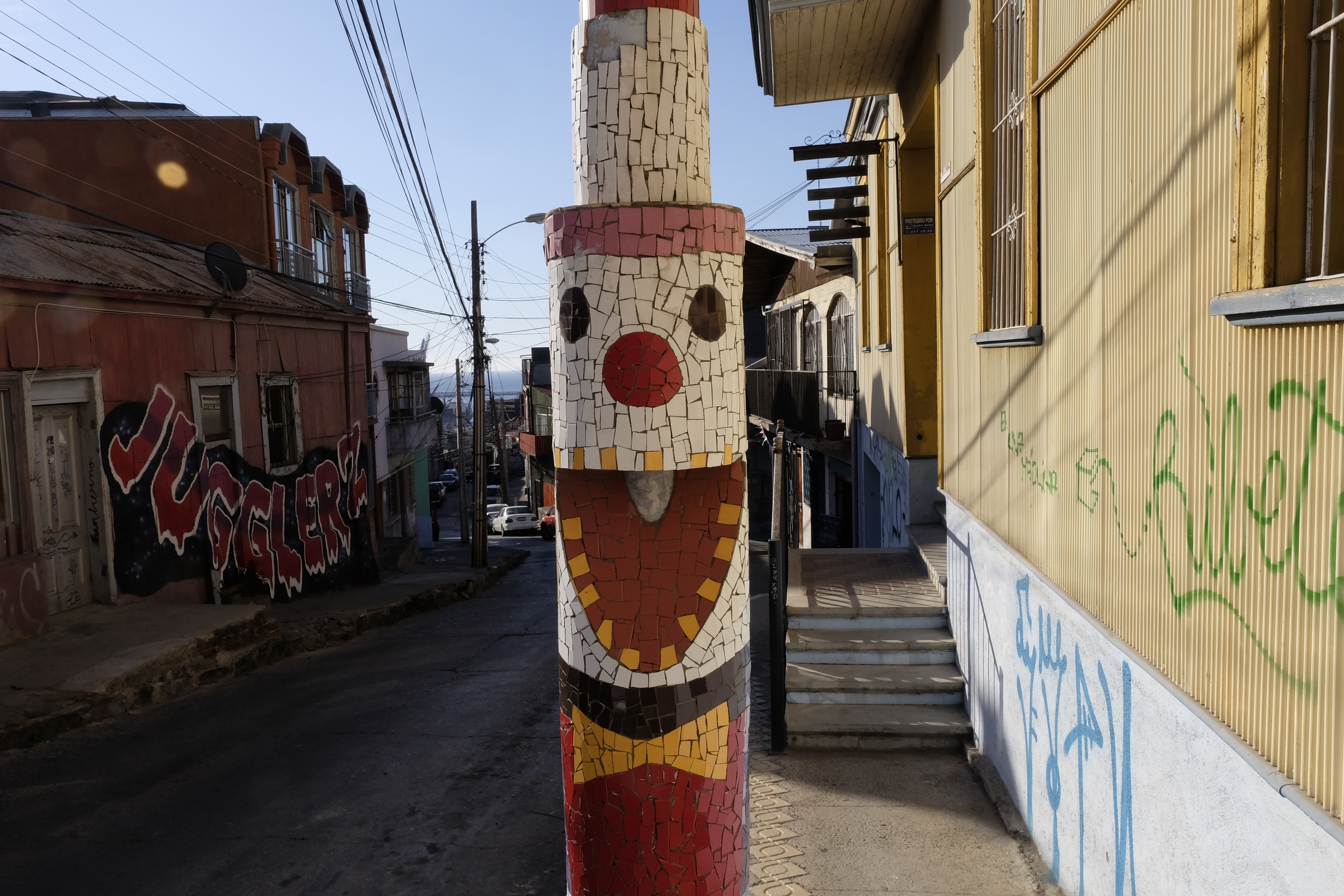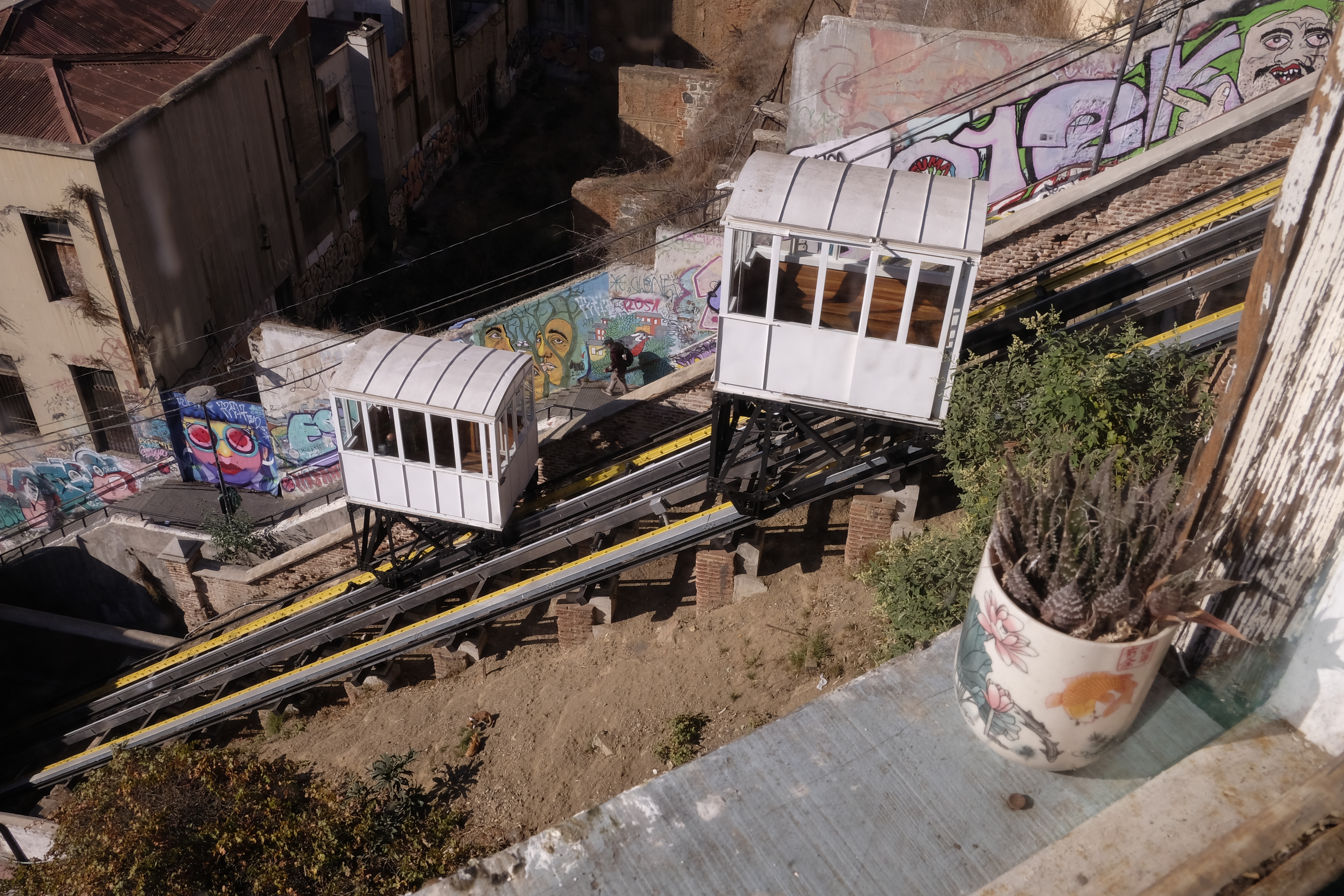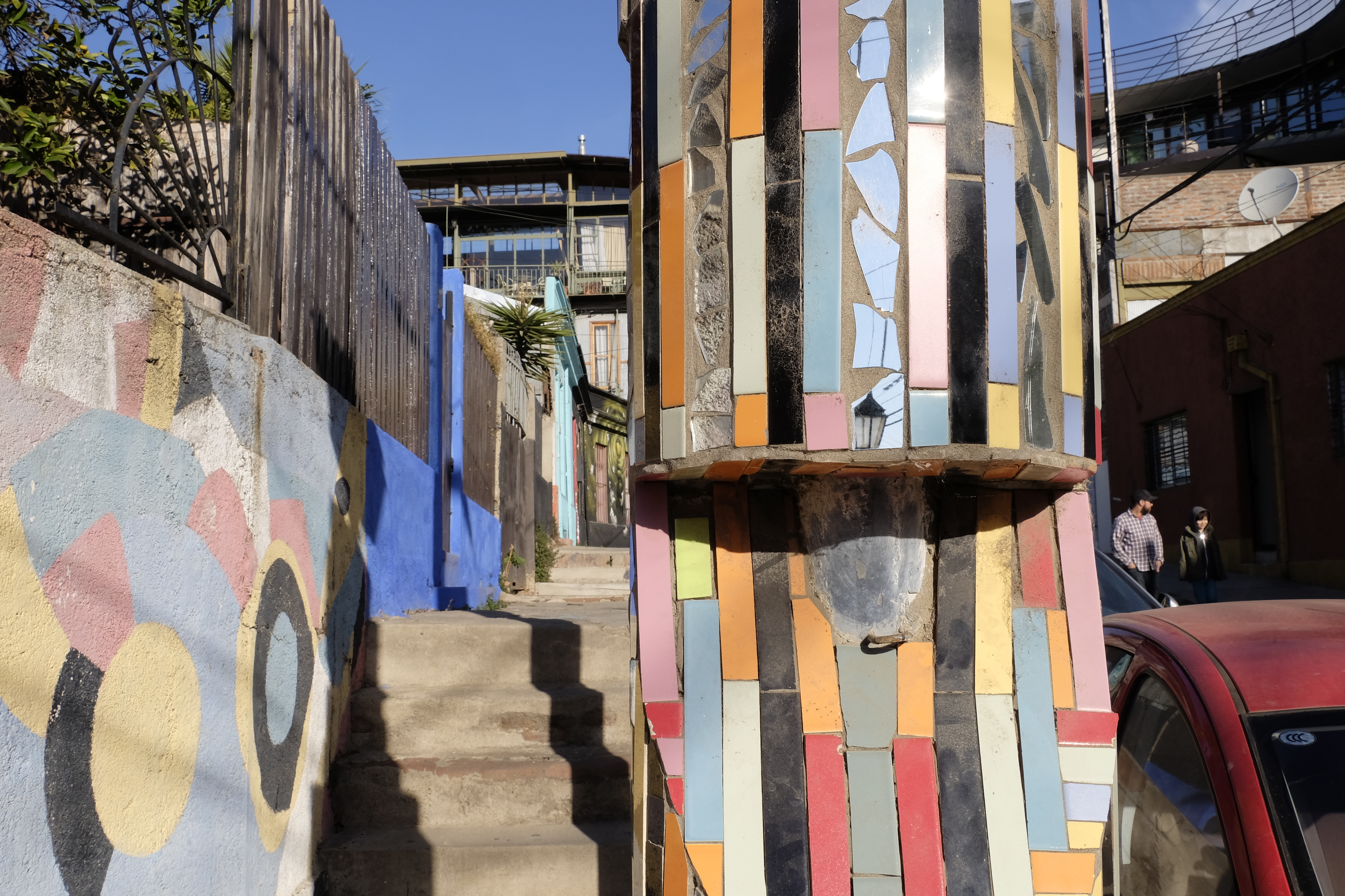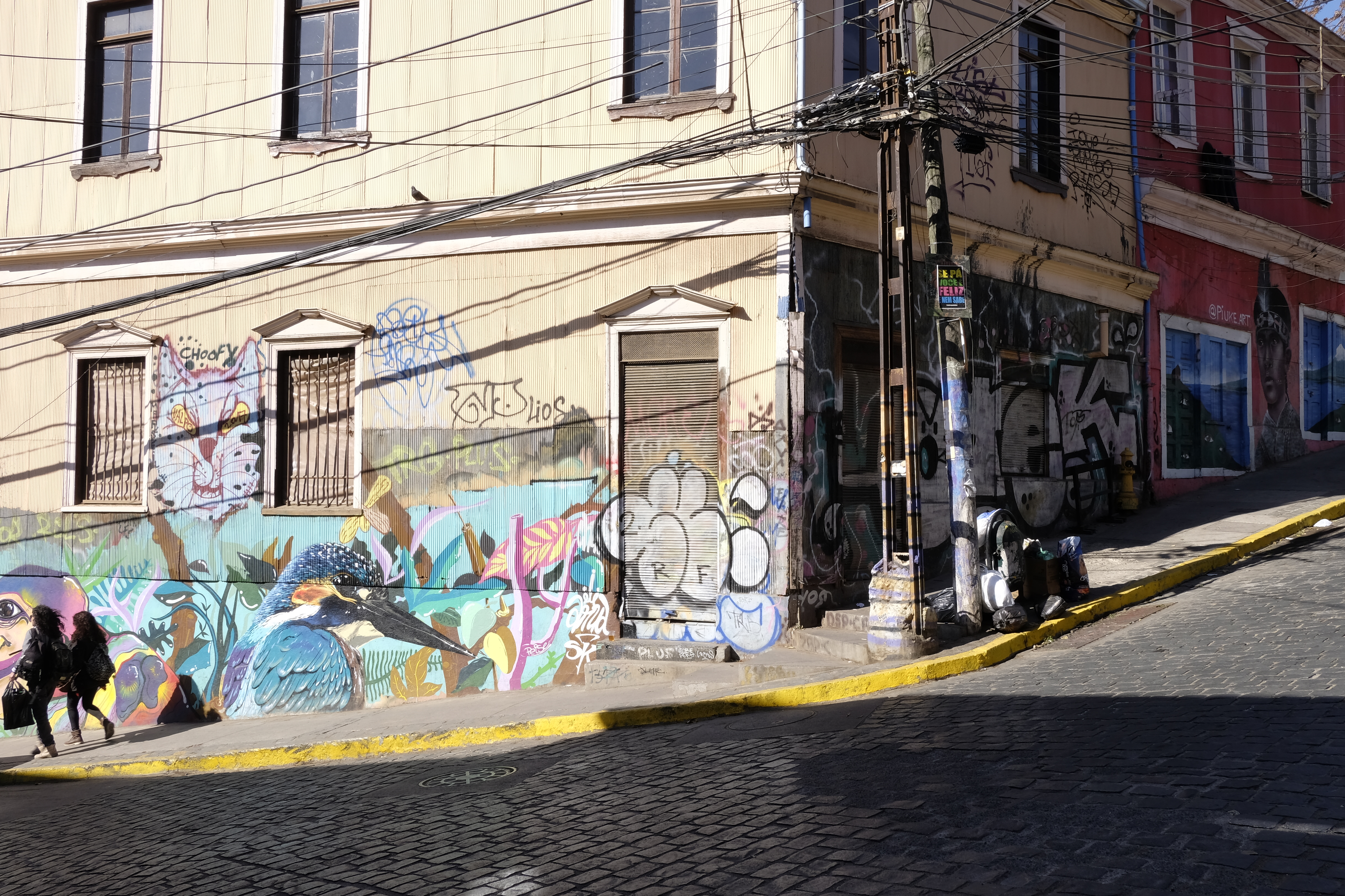 Von Santiago aus unternehmen wir einen Ausflug nach Valparaiso. Die wohl farbigste Stadt der Welt. Streetart so weit das Auge reicht. Die Häuser (eigentlich Bilderrahmen) verteilt auf unzähligen Hügeln. Dazu alte Seilbähnchen, die einem schweisstreibendes Treppensteigen abnehmen (man könnte annehmen, wir seien in Form). Viele KünstlerInnen haben sich hier niedergelassen und präg(t)en den Charakter dieser Stadt. Während 5 Tagen geniessen wir die Werke der aktiven KünstlerInnenszene, die meditationshaft langsamen Fahrten in den Liften und natürlich das Werk von Don Luis, Sams Coiffeur (Chilenischer Schnitt par excellence). Disfrutenlo!