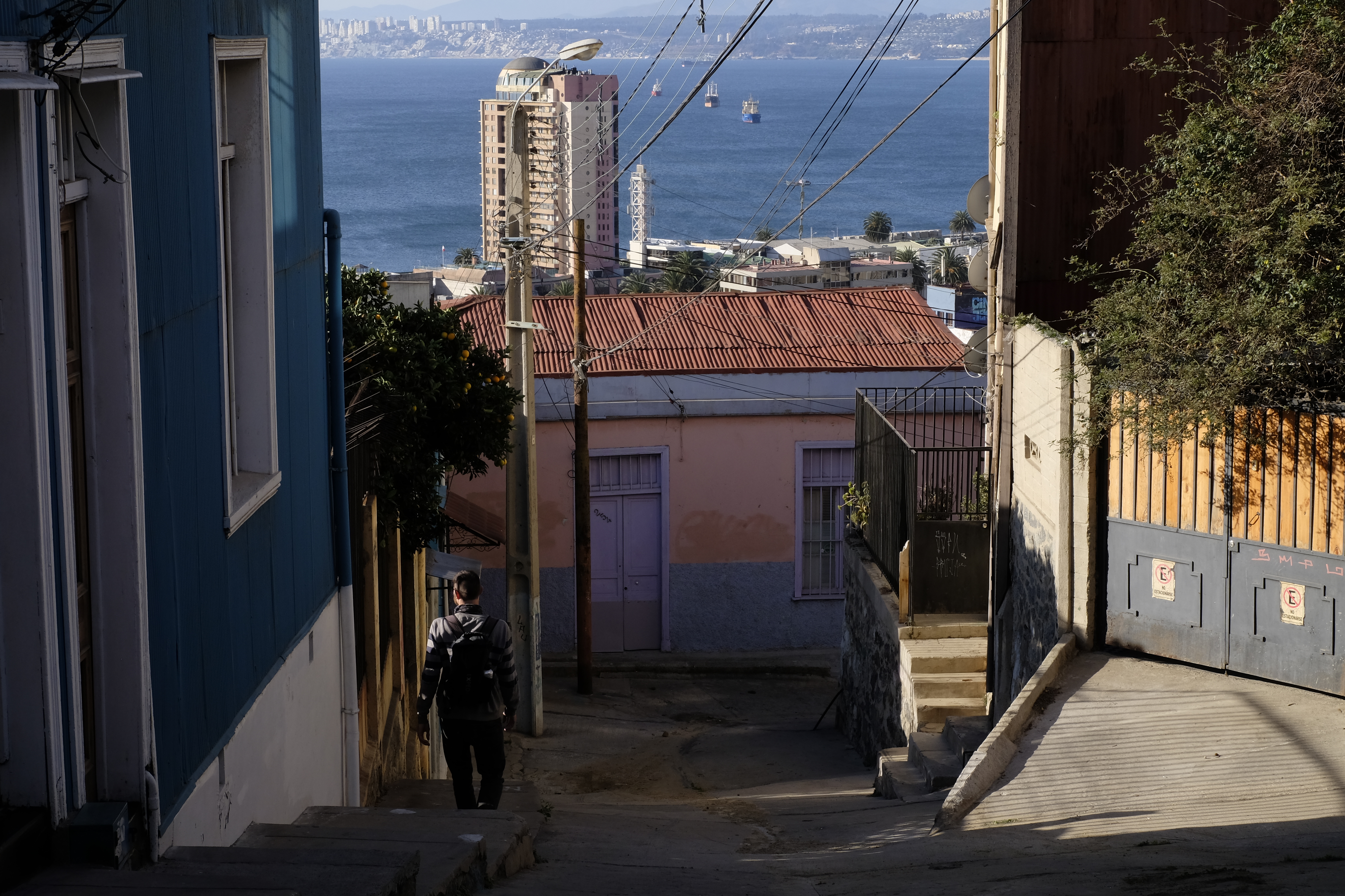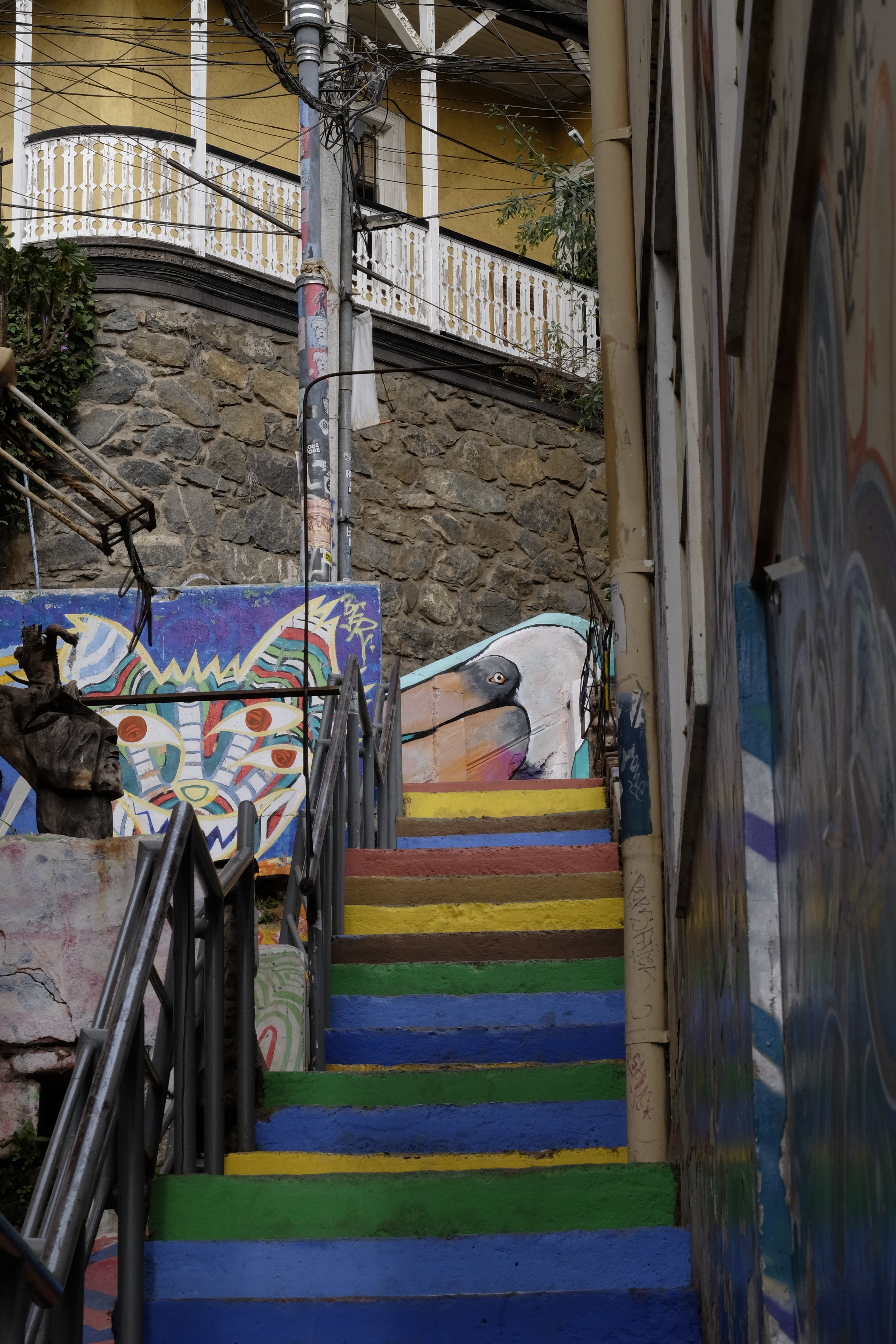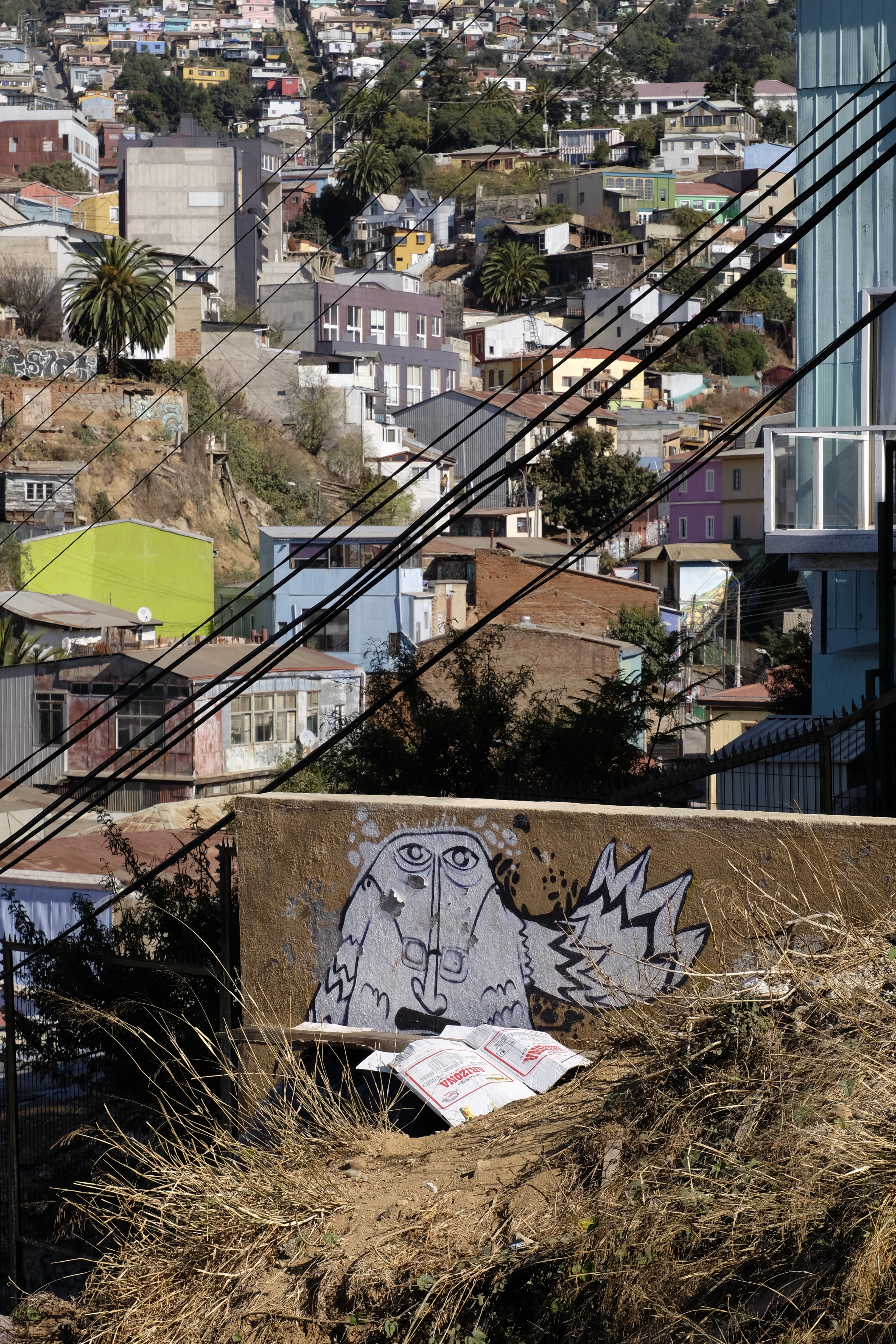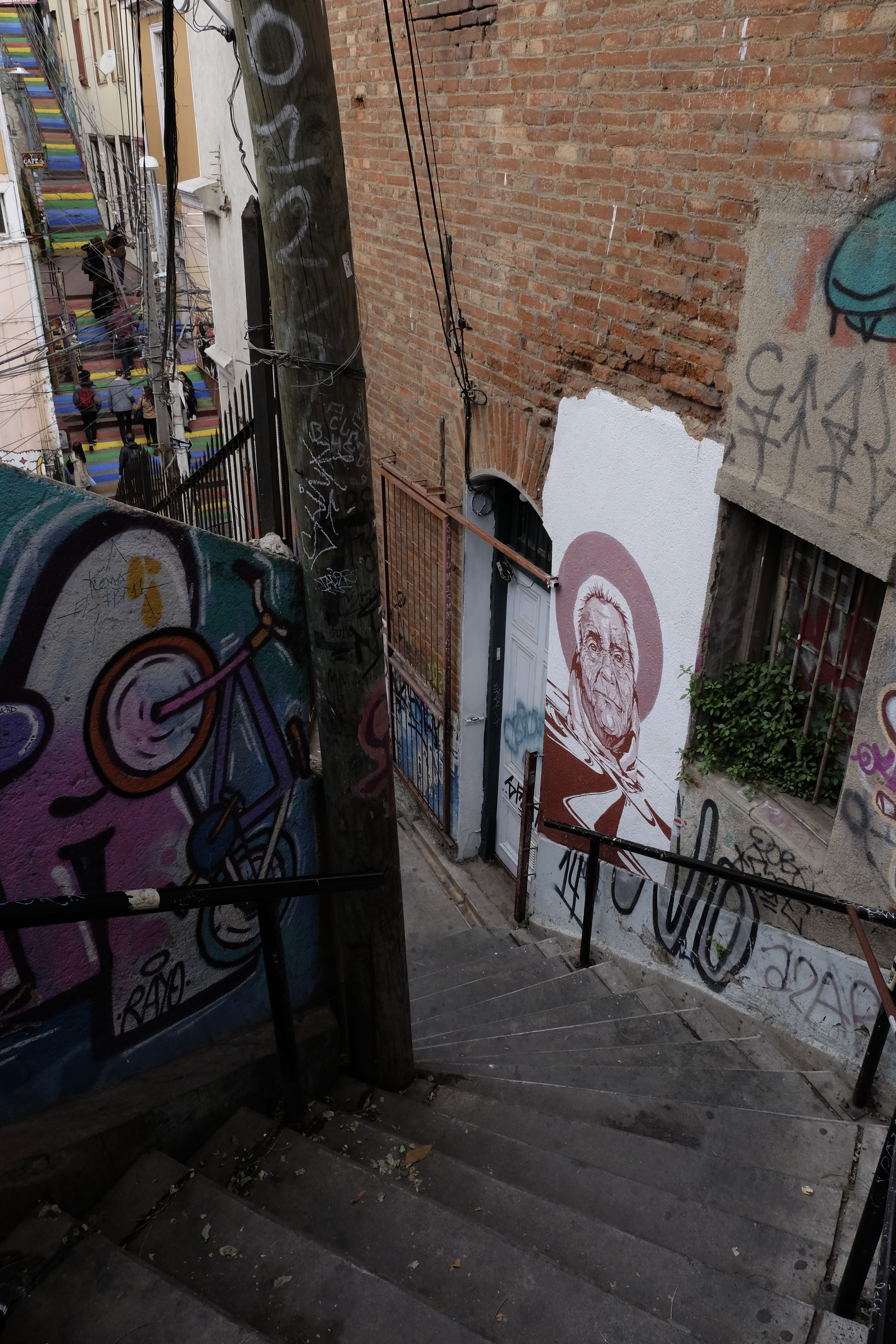 Von Santiago aus unternehmen wir einen Ausflug nach Valparaiso. Die wohl farbigste Stadt der Welt. Streetart so weit das Auge reicht. Die Häuser (eigentlich Bilderrahmen) verteilt auf unzähligen Hügeln. Dazu alte Seilbähnchen, die einem schweisstreibendes Treppensteigen abnehmen (man könnte annehmen, wir seien in Form). Viele KünstlerInnen haben sich hier niedergelassen und präg(t)en den Charakter dieser Stadt. Während 5 Tagen geniessen wir die Werke der aktiven KünstlerInnenszene, die meditationshaft langsamen Fahrten in den Liften und natürlich das Werk von Don Luis, Sams Coiffeur (Chilenischer Schnitt par excellence). Disfrutenlo!