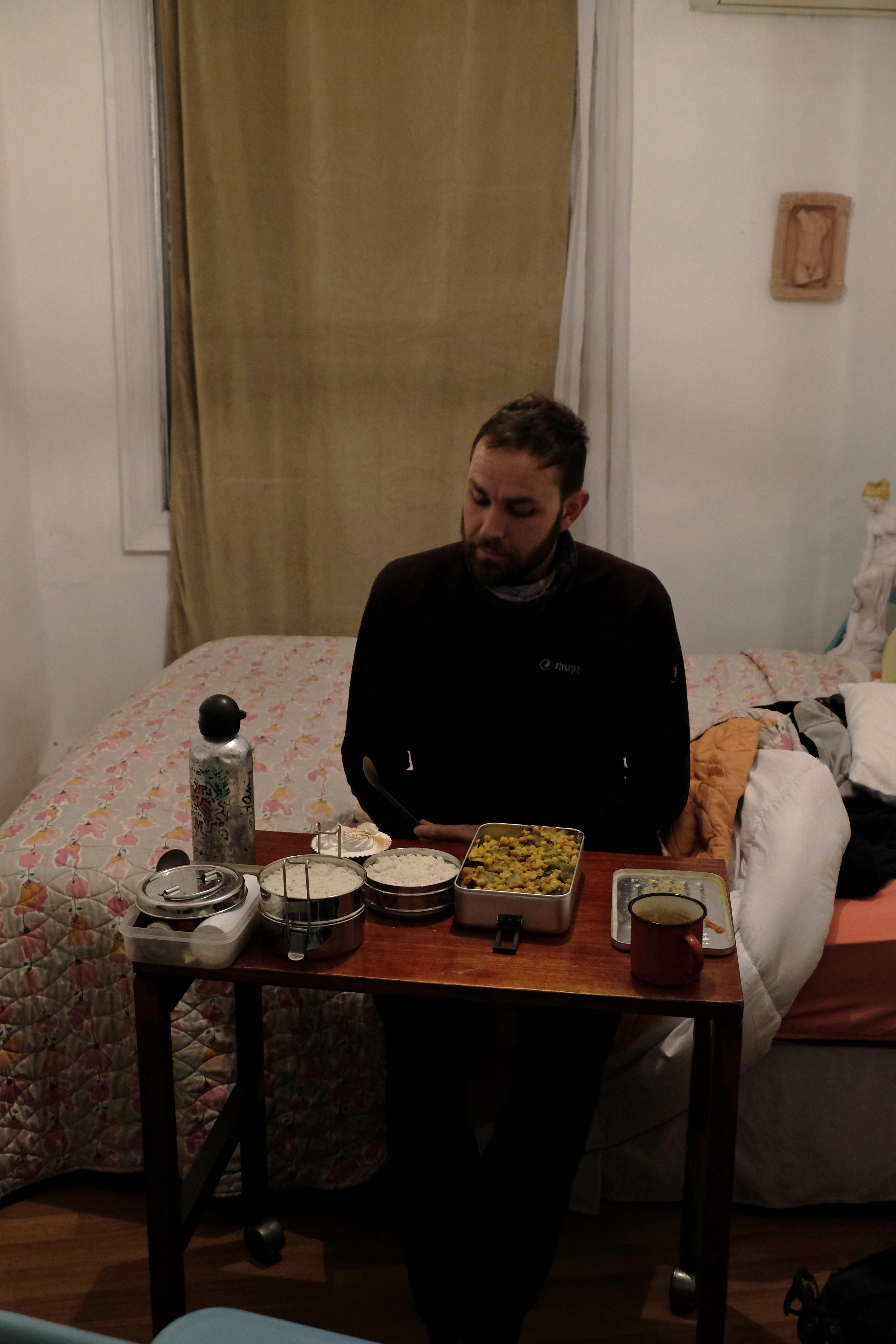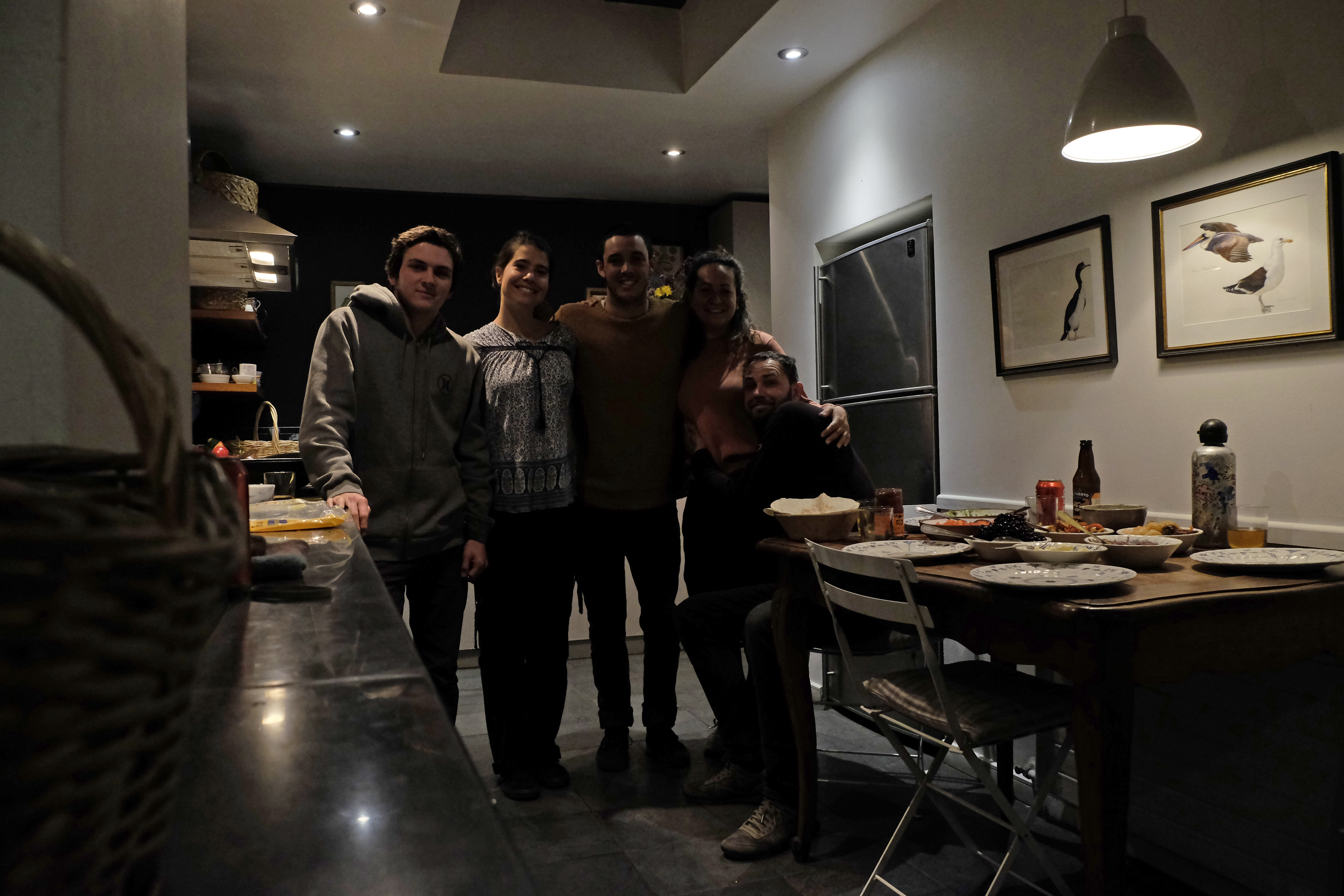 Am Busbahnhof von Santiago stellt sich erstmals die Frage, wie wir zu unserem „Zuhause“ gelangen können. Irgendwo am anderen Ende der Stadt. Velo ins Taxi? No!, sagt der Taxista. Uber? Kein Internet weit und breit! Also Velofahren? Aber der Verkehr und die Gegend … gefährlich? Wir wissen es doch auch nicht! Zum Glück helfen uns zwei Security-Angestellte. Tipp: unauffällig aus dem Terminal-Viertel schleichen, anschliessend gemütlich auf einem Veloweg quer durch die Stadt. Wir verhalten uns also unauffällig und wie echte Santiagoaner… einfach mit etwas viel Gepäck, die einzigen Velofahrer weit und breit und immerzu den Stadtplan überprüfend. Logisch: es enttarnt uns niemand. Wir sind halt alte Profis! (Oder unwahrscheinlicher: es interessiert einfach niemanden. In Santiago gibt es übrigens vor allem Trickdiebe. Im schlimmsten Fall findet man halt mal etwas nicht mehr). Jedenfalls erreichen wir nach ca. 1h problemlos das schöne Haus der Familie Claro im edlen Wohnviertel Vitacura. In ihrem Garten dürfen unsere Velos 14 Tage die Speichen hängen lassen. Und wir dürfen unser Luxusleben (nach Pullay mit Claros und Loreys, nach Pichilemu und Santa Cruz mit Hostal) in einem gemütlichen Zimmer weiterführen (an dieser Stelle ein riesen Dankeschön an Martin, Emilia, Miguel, Ines, Mundo und Maria für die erneute Gastfreundschaft und das Verwöhnen. Wir haben die spannenden Gespräche, das gute Essen, überhaupt alles sehr genossen).