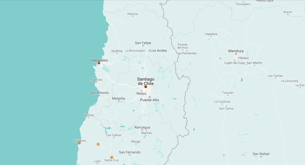 Pichilemu nach Santa Cruz alles asphaltiert, am Anfang steiler Anstieg. Busfahrt von Santa Cruz auf Santiago und dann mehrtägiger Ausflug von Santiago aus nach Valparaiso.