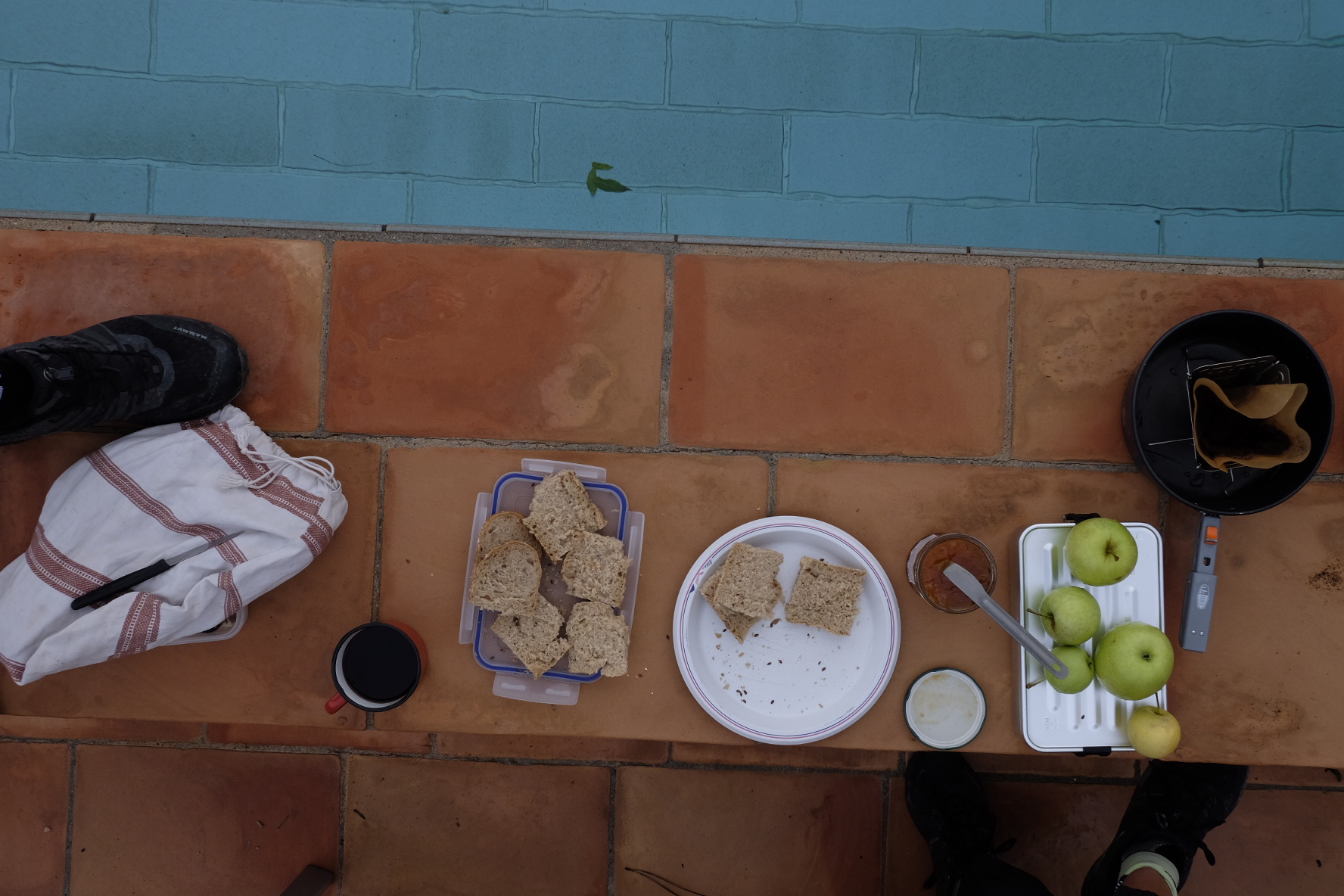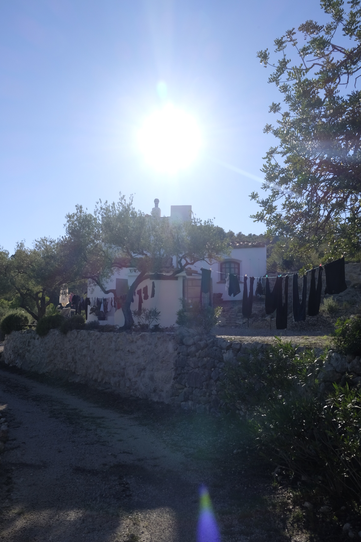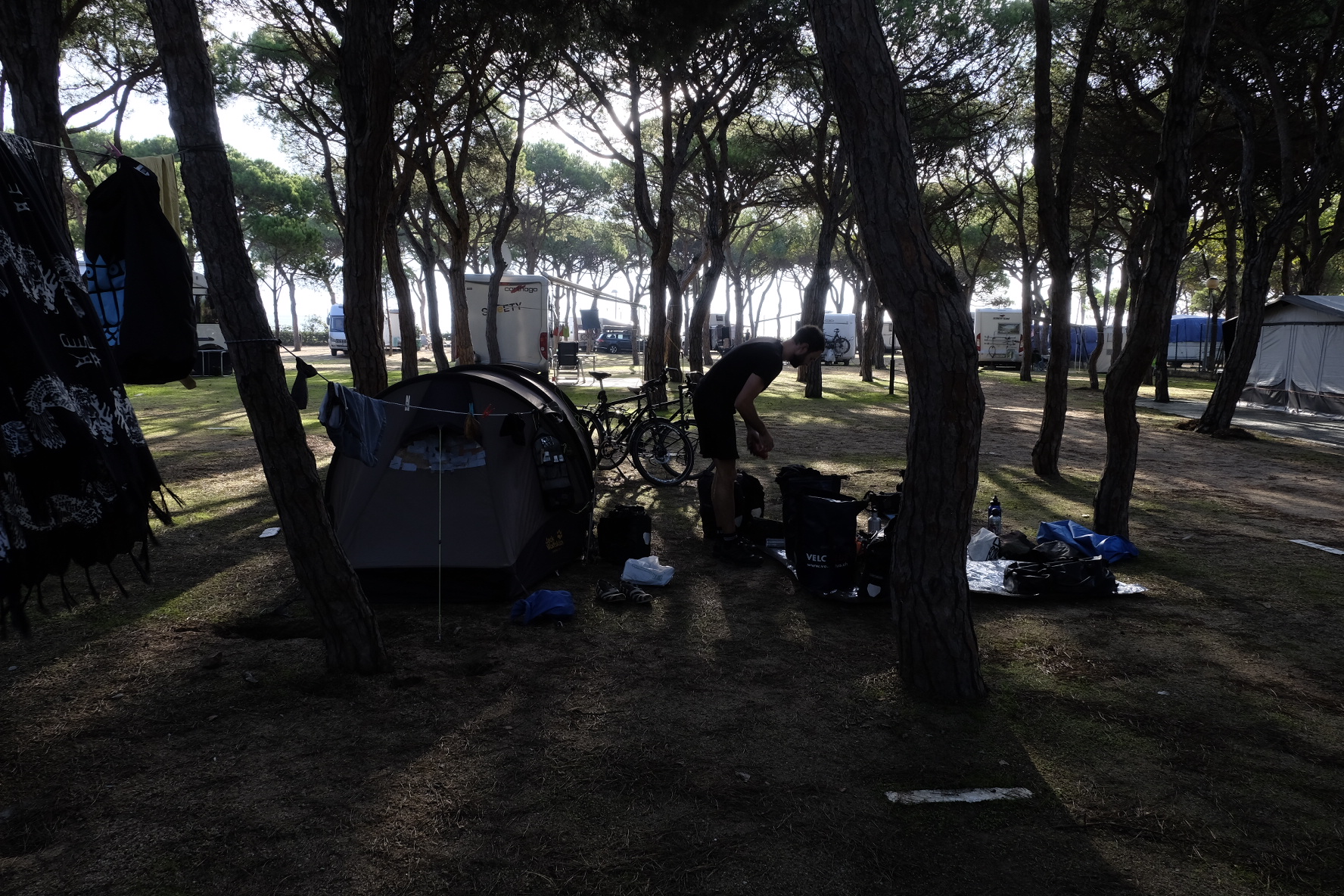 Geschlafen wird weiterhin im Zelt zwischen Wohnwagen, selten in kleinsten AirBnB- oder Hotelzimmer oder in einer traumhaften Finca oberhalb des Ebrodeltas (heroische Posen in heroischen Landschaften). Sogar ein Zimmer mit Blick durch Pool in den Himmel gabs (dank Gianni, dem Retter in Not, als wir kraftlos und vergebens einen Zeltplatz suchten).