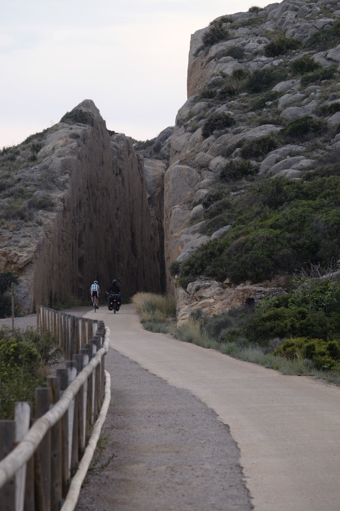 Versuch weiterhin auf der Europe Route 8 zu fahren. Sehr schlecht signalisiert. Fahren oft auf Fernstrassen mit Seitenstreifen (sprich wir finden keinen velofreundlichen Weg). Durchgehend asphaltiert. Navigationscomputer «Garmin» kennt oft die besseren Routen (Zieleingabe lohnt sich). Küstenstrasse nach Sant Feliu de Guixols sehr schön. Alte, zu Veloweg umgestaltete Eisenbahngeleise sind sehr lohnenswert (Suche nach Vía Verde im Internet). Generell sind wir so nahe wie möglich am Meer entlang gefahren. Durchgehend Campingplätze (im Herbst jedoch teils schon geschlossen).