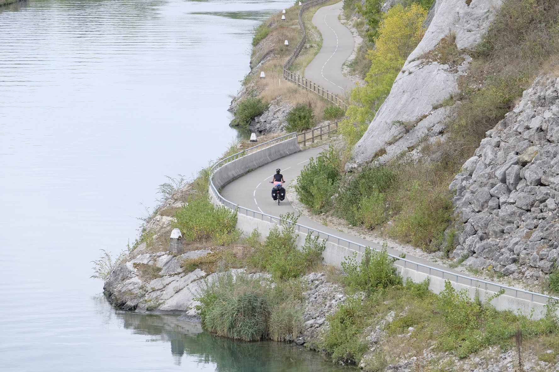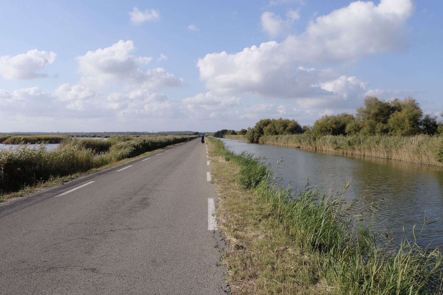 Von Schweizer Grenze bis ca. Beaucaire auf Via Rhôna. Fast durchgehend separater, asphaltierter und gut signlisierter Veloweg mit vielen Campingplätzen. Kaum Steigungen. Nach Beaucaire auf Euro Route 8. Abwechslungsweise asphaltiert und Naturstrasse. Oft separater Veloweg. Kaum Steigungen. Viele Campingplätze.