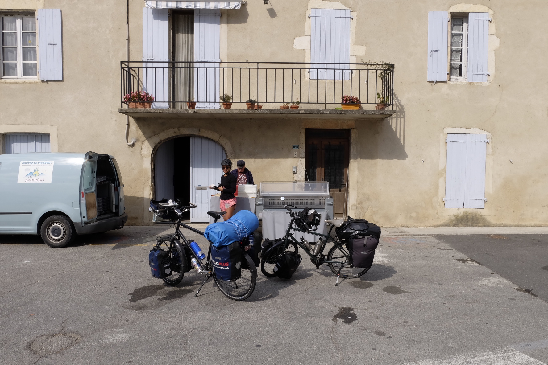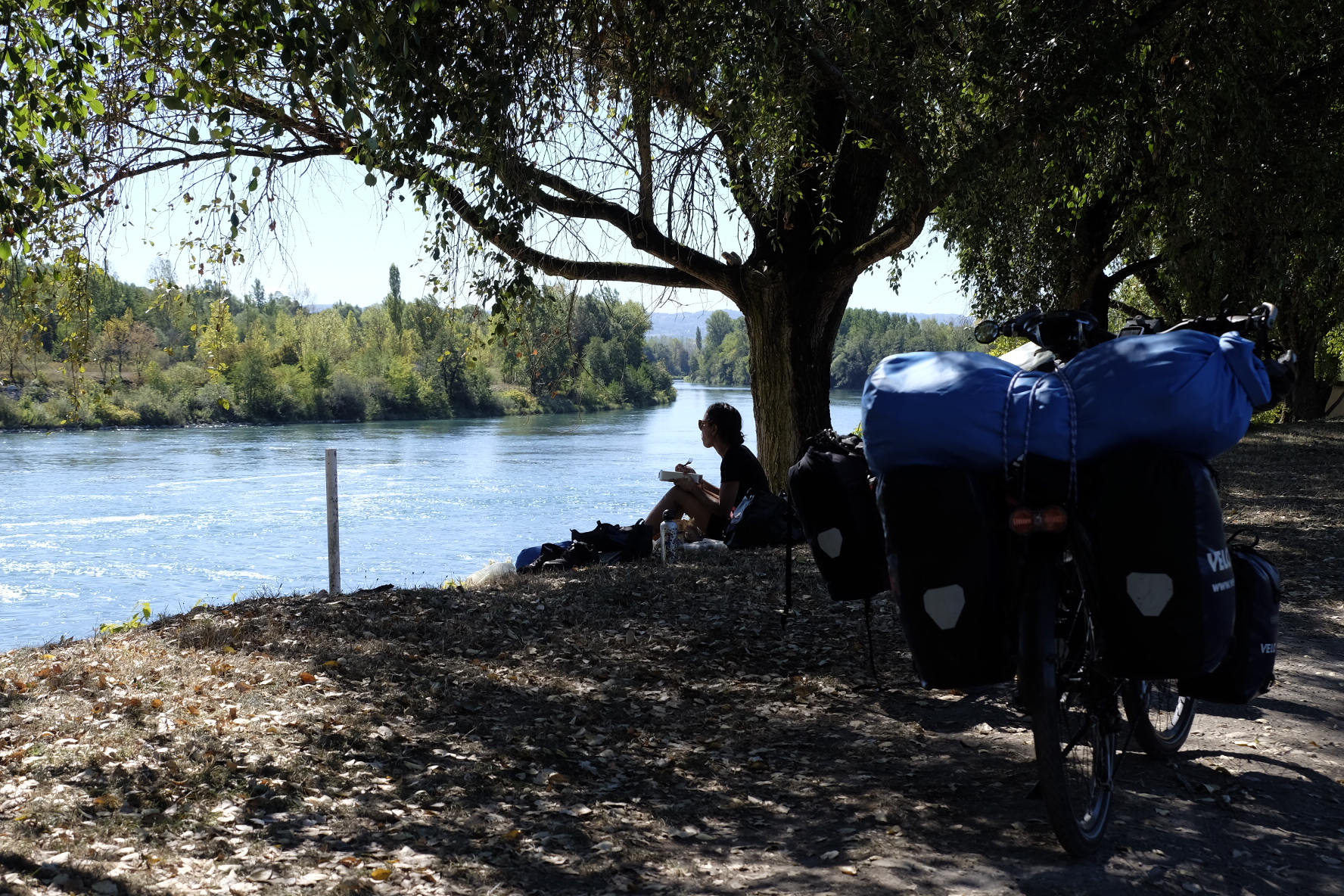 La France. La rôhne. LaissezFaire am Fluss entlang. Das Baguette immer griffbereit. Olalaaaa. Mit Rückenwind Richtung Meer, stetig etwas bergab, so hat mans gern. Auf perfekten Velorouten durch kleine, oft ausgestorbene Dörfer, durch viel Natur oder Landwirtschaft. Am Abend auf Campingplätzen voller Wohnmobilen und mobilen Wohnhäusern. Zelt aufstellen, zNacht kochen, Lesen, Schlafen. Am Morgen als erstes ein Kaffee, dann zMorge. Alles einpacken und weiter gehts. Zumindest bis zum ersten Kafi. Dort Espresso und Pain au chocolat… nach wenigen Tagen bereits leichte Suchtanzeichen. So wiederholten sich die Tage. Unterbrochen von Pausen in grösseren Städten. Teilweise um Schmerzen auszukurieren, teilweise um Stürme passieren zu lassen. Manchmal sogar, weil wir gerade Lust hatten. Aber schön wars immer!
