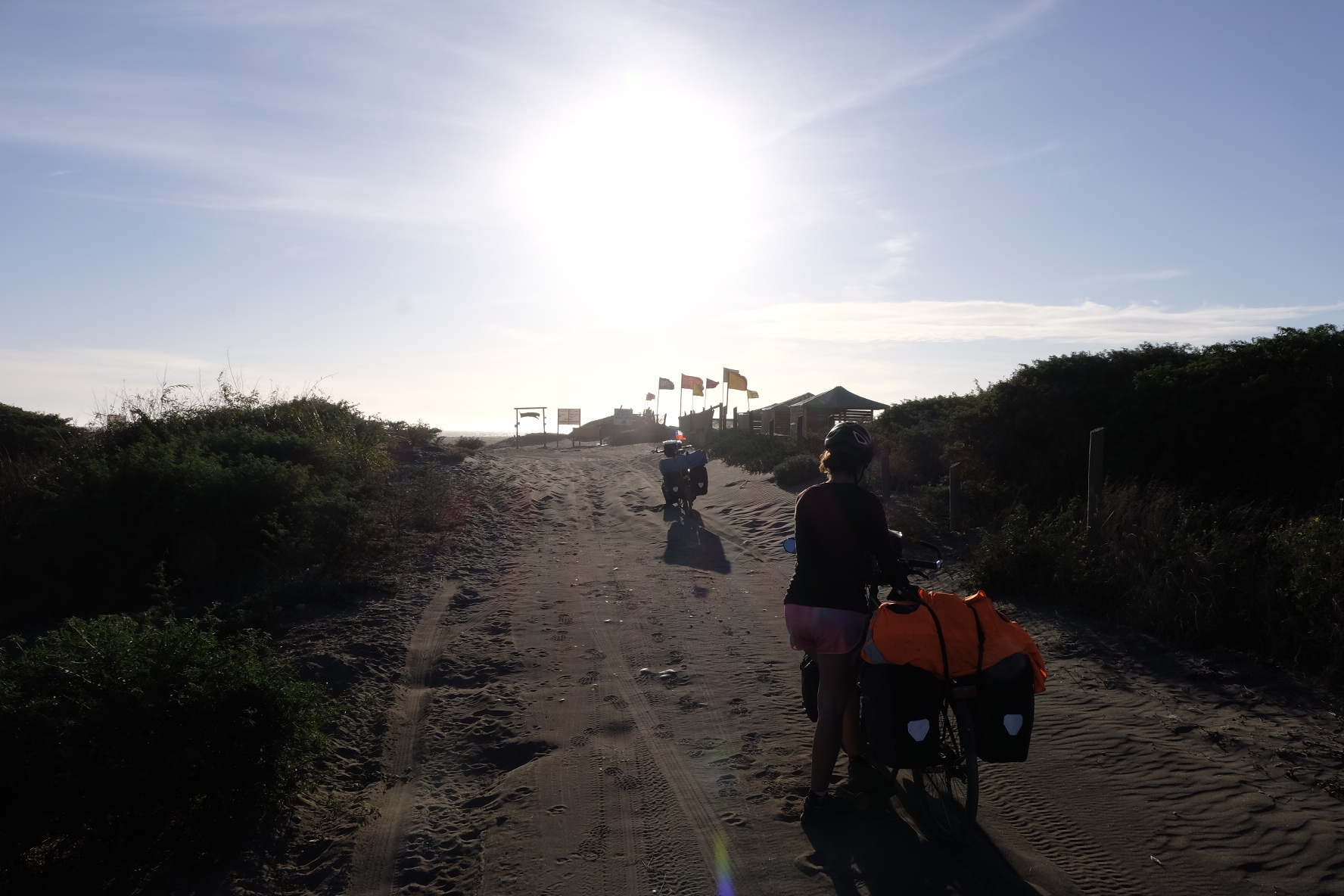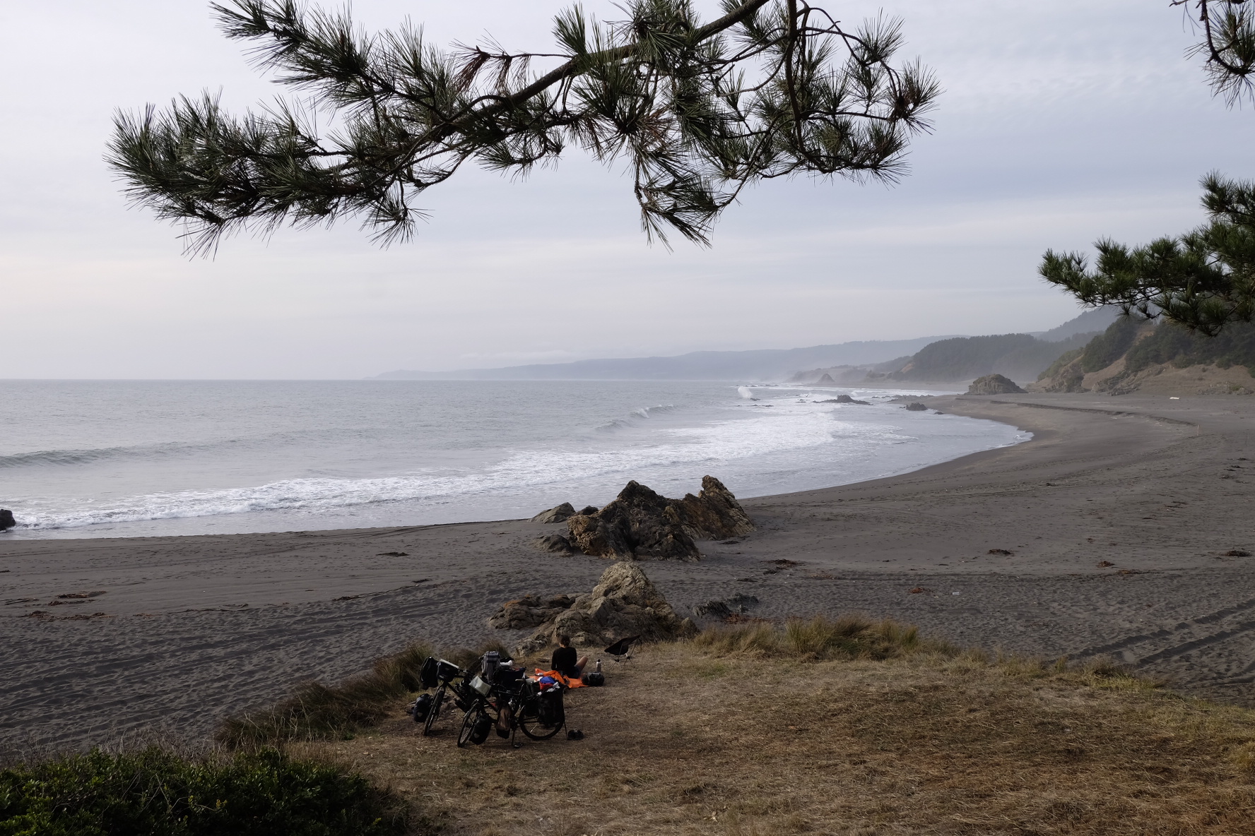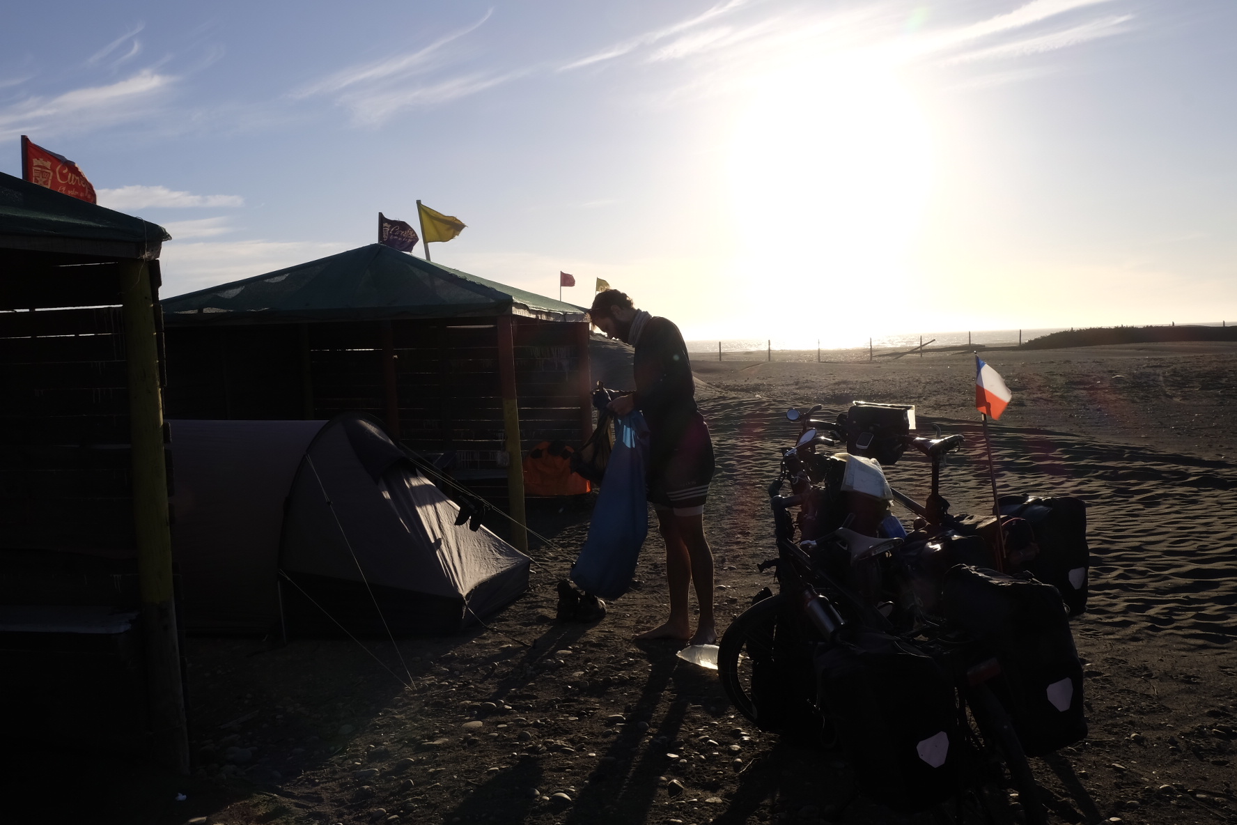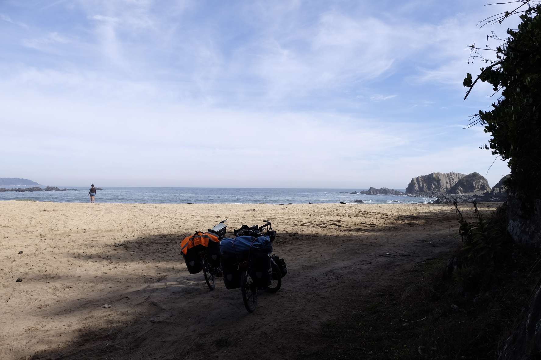 Den Sommer vorläufig eingeholt, wollen wir wieder aufs Velo. Entlang der Küste. Viel Strand, viel Meer und ein bisschen Surfen, so die Idee. Erst mal gibts aber happige Stütze und schlechter Ripio. Rauf, runter, rauf, runter. Irgendwie bekannt. Doch wie immer in diesem beeindruckenden Land: es lohnt sich. Einsame Buchten laden zum zMittag, Erholen und Zelten ein. Mission „Meer und Strand“ somit erfüllt. Bleibt Surfen.
