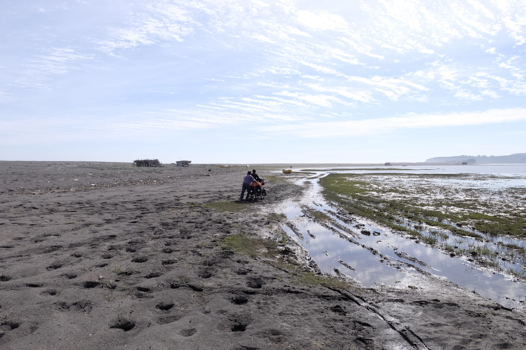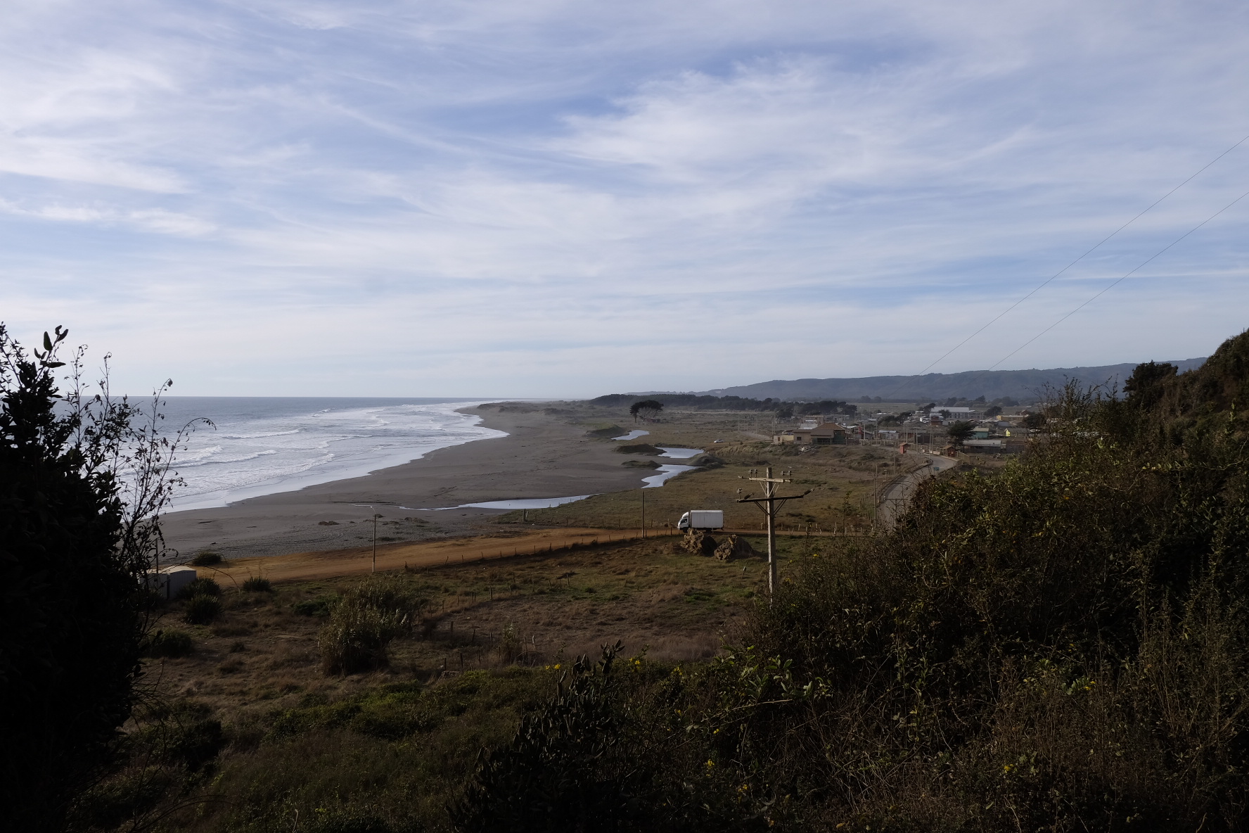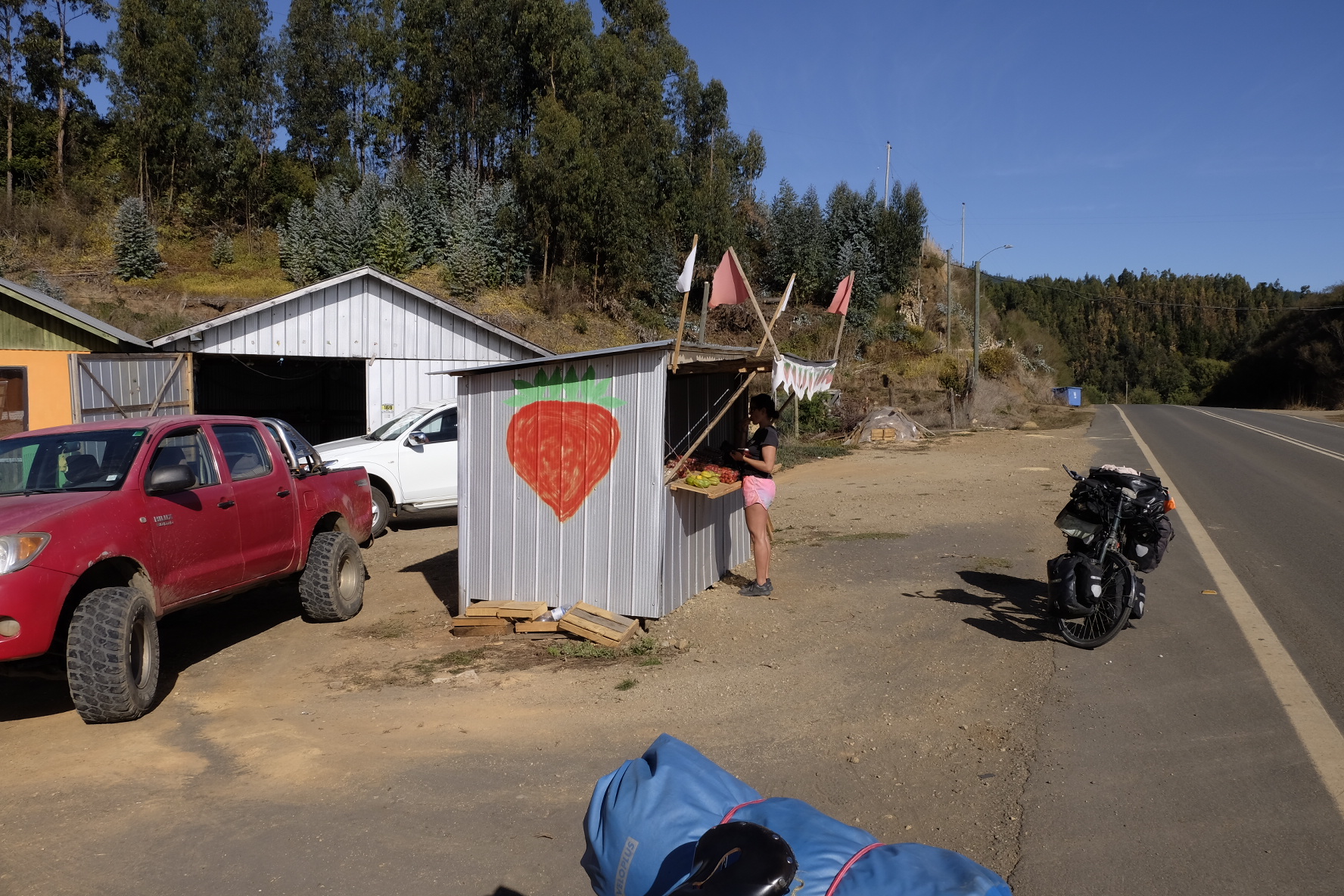 Los Lagos Region generell asphaltiert mit vielen leichten Steigungen. In Nebensaison verkehrsarm. Viele Übernachtungs- und Einkaufmöglichkeiten. Nach Conceptión Küstenstrasse mit vielen, teils sehr steilen Anstiegen. Teils schlechte Naturstrasse (die Mühe lohnt sich jedoch). Schlechtester Abschnitt vor Boyecura mit viel Sand. Sehr verkehrsarm. Den Itata Fluss haben wir mit Fischerboot bei Vegas de Itata überquert (Abkürzung, um nicht nach Coelemu gegen zu müssen). Viele Campingstellen und Einkaufsmöglichkeiten.