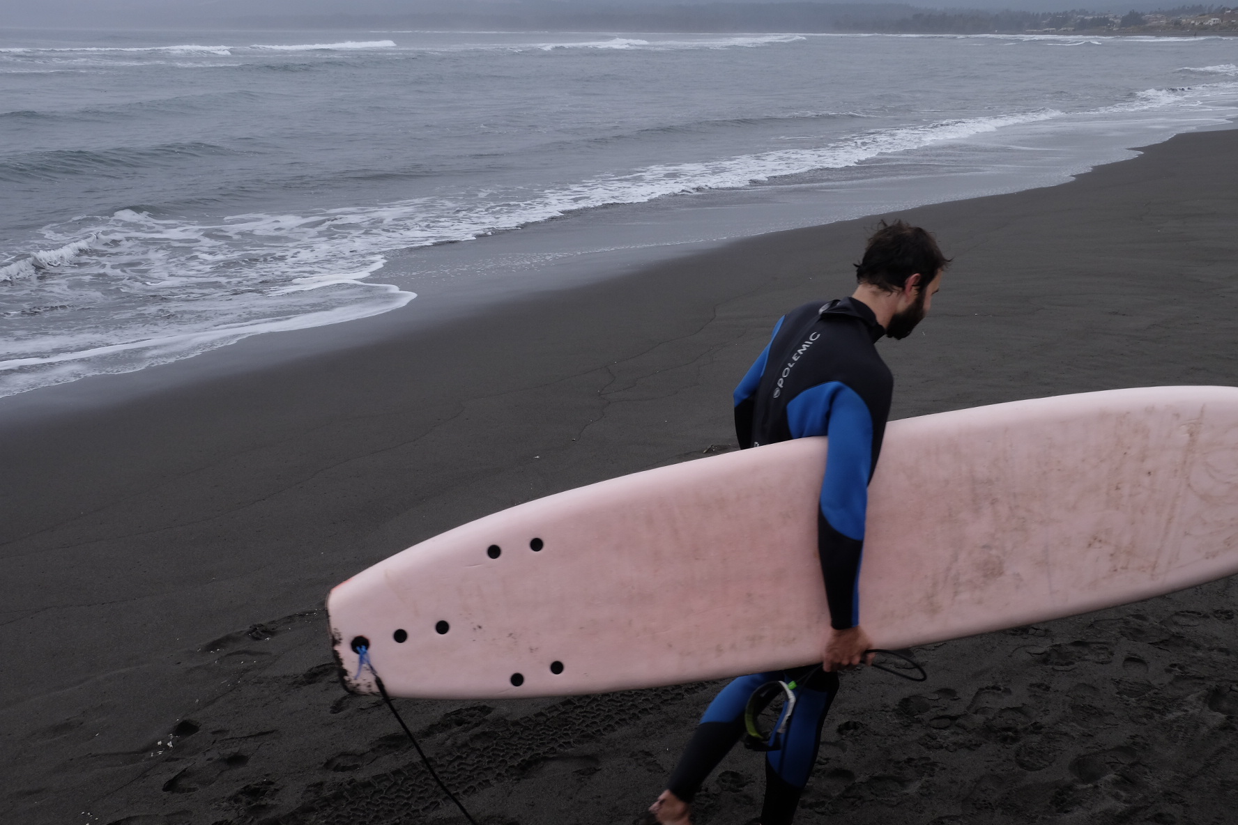 Die Bretter finden wir in Pullay, einem kleinen Küstendorf. Hier treffen wir auf Chilenische Freunde. Unglaublicher Zufall, dass die Familie Claro (kennengelert zu Beginn der Carretera Austral) und Lorey (kennengelernt in Nordspanien vor Jahren) am gleichen Ort Häuser besitzen (exrem schöne noch dazu). Eine Woche dürfen wir das Zelt in den Gärten aufstellen, verbringen viele Stunden zusammen am Strand, beim Kochen und Essen oder am Lagerfeuer. Und natürlich beim Surfen. Dabei sehen wir gar nicht mal so schlecht aus. Mit Neopren (Wasser ist saukalt), mit Brett… am Strand. Im Wasser überlassen wir die Eleganz dann unseren Freunden. Wir plantschen zwischen ängstlich und freudig im weissen Schaum der bis zu 3m hohen Wellen.